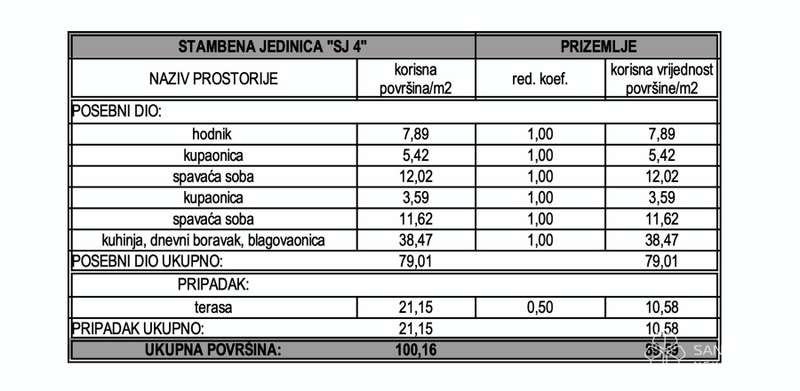Apartment S-4 - ground floor - living area 79.01 m2 (2 bedrooms + 2 bathrooms) + terrace (21 m2 - SE) + garden (40 m2) + garage parking space + storage in the basement, net calculation area 105.06 m2 = 472,770 EUR