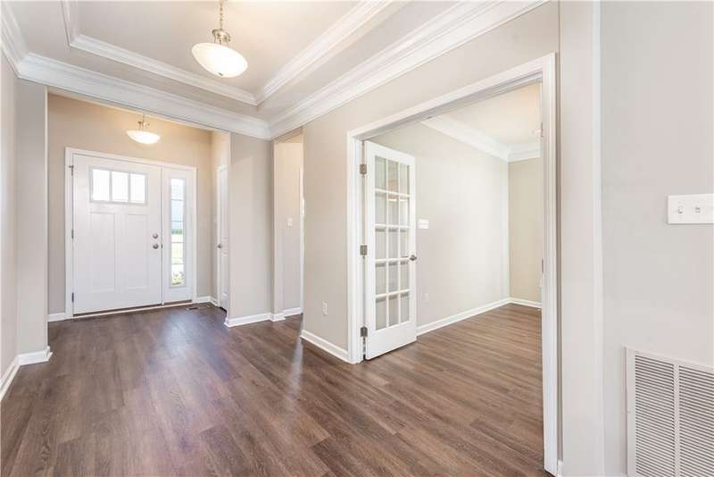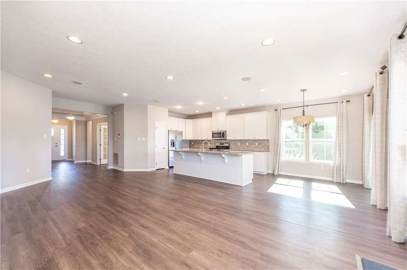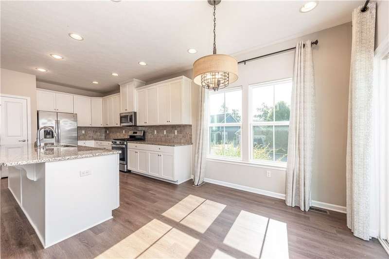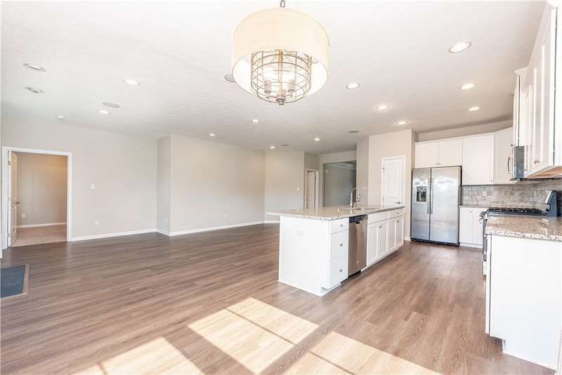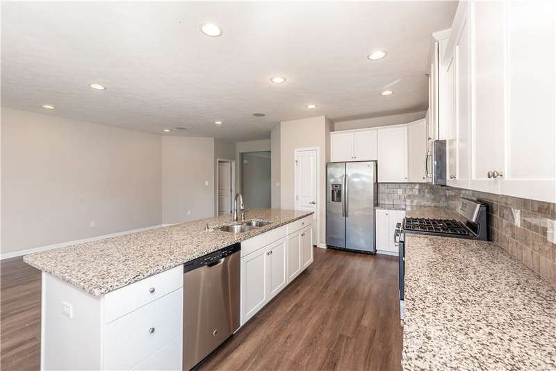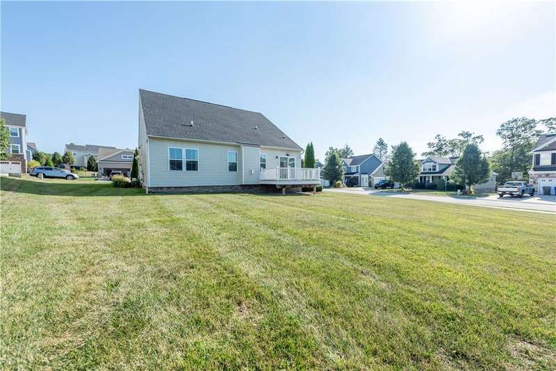 Impeccable two bedroom (potential to make three) - three bathroom - two car attached garage with a garbage/side door home in Sarver's Mill. Beautiful, almost completely flat, corner lot. Embrace the walkable neighborhood and trail, the community fishing pond and the community pool and clubhouse. Steps away from Buffalo Elementary. OPEN concept main level with a gorgeous white kitchen, stainless steel appliances and granite counter tops. The lower level has an enormous finished family room area PLUS TWO huge unfinished rooms. Could create a home theatre or an office! This home is move in ready with the neutral decor and beautiful floors.