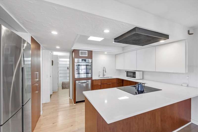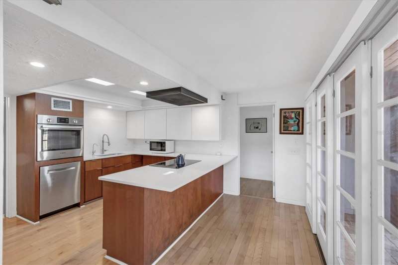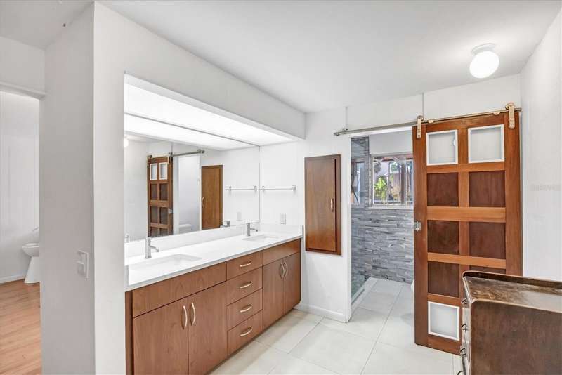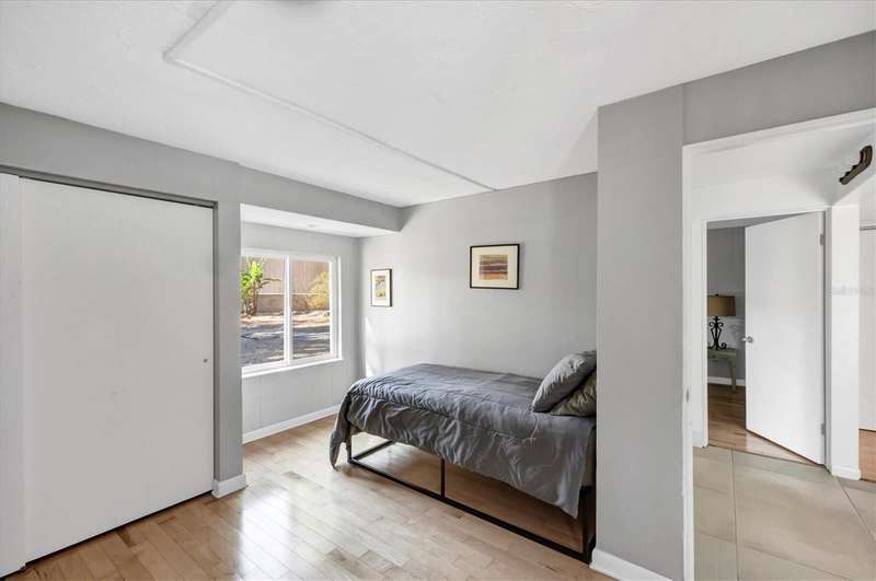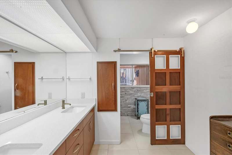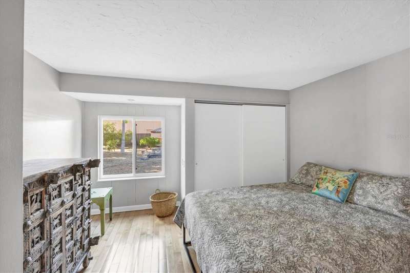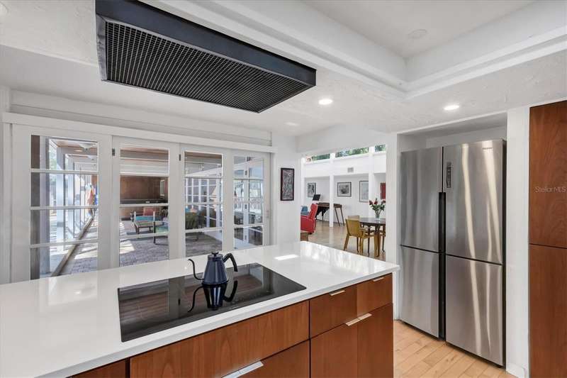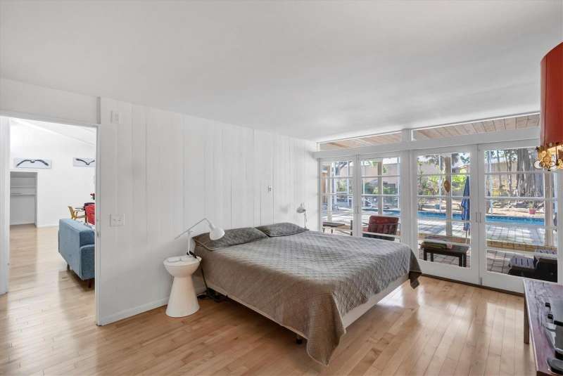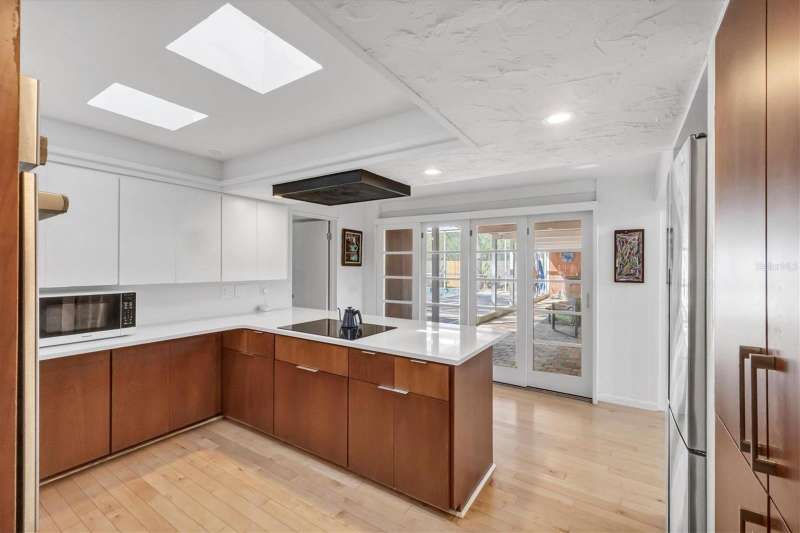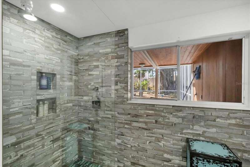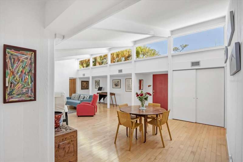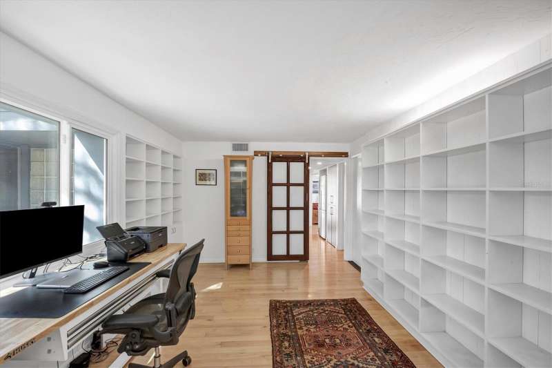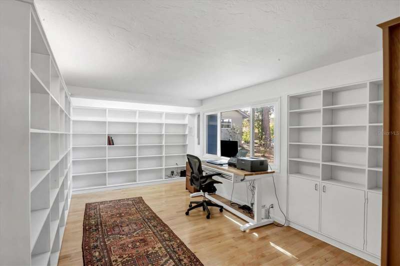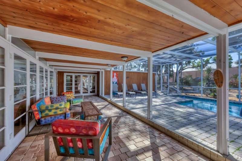 "WEST OF TRAIL" THE SELLER IS MOTIVATED. BRING OFFERS. PRICED BELOW FEB APPRAISAL. Discover this stunning home, showcasing the best of mid-century architecture. Situated on an expansive 100 x 170 lot, the grounds are adorned with fruit trees and lush landscaping. The large open living room features clerestory windows, with backyard and pool views through all glass doors. There is a small office nook as well. The 40x10 lanai, heated screened pool, and hot tub offer a relaxed and enjoyable outdoor space, as do the large front and back yards. There is gorgeous wood flooring throughout. The primary bedroom boasts a wall of closets, a beautiful pool view, and a distinctive large bathroom with unique shower featuring tile and glass block. The second and third bedrooms are designed as a separate suite featuring privacy and and extra storage. The open kitchen, enhanced by a skylight and pantry, is both spacious and inviting. The studio/library, illuminated by cove lighting, includes built-in shelving and a lovely backyard view and could easily be converted to a 4th bedroom. The home has a propane driven whole house generator, mostly hurricane impact windows and hurricane shutters as needed. The home abuts the 100 acre New College campus affording huge greenspace views and trails. It is just down the street to the Sarasota Bayfront for breathtaking sunsets, and abundant bird and marine life viewing . The Ringling Museum and Asolo theater are minutes away. Don't miss this opportunity to make this extraordinary home your own.