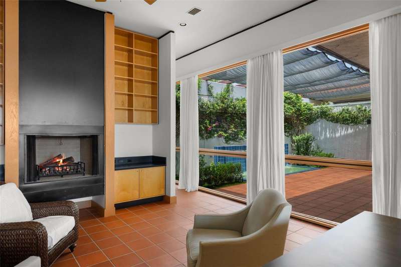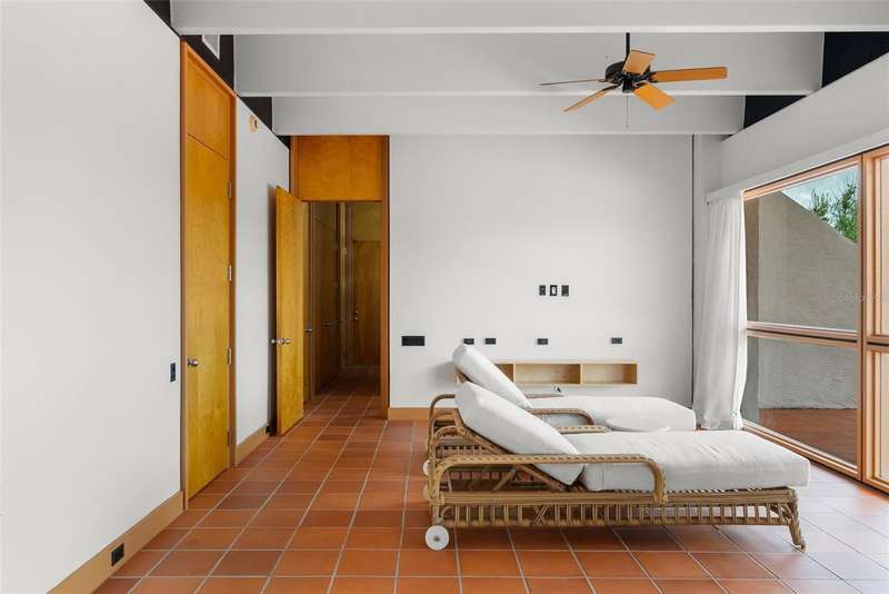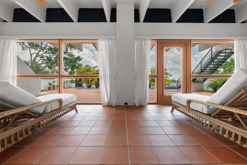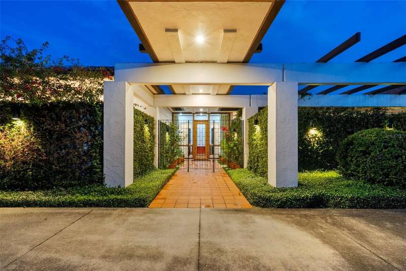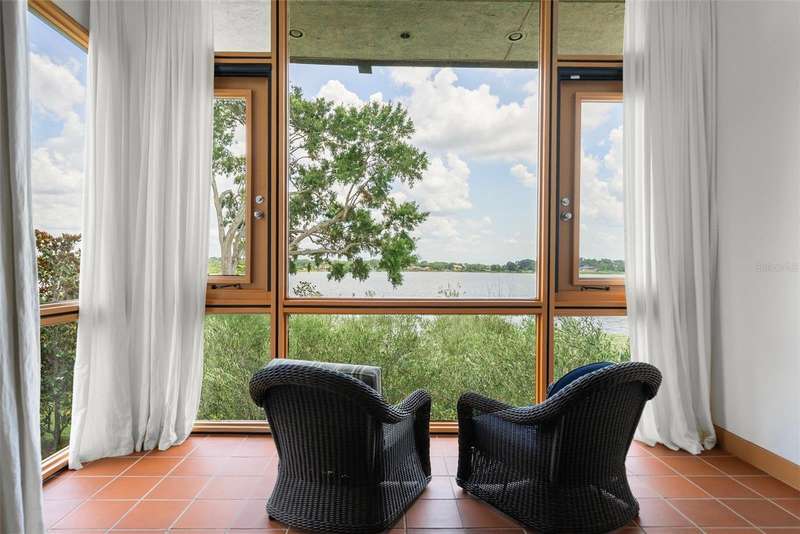 There was a time when homes were designed to last, and this is one of them. Designed by award-winning architect Gene Leedy, this south-facing lakefront residence embodies a legacy of modernism uniquely attuned to Florida's landscape and climate. As a founding voice of the Sarasota School of Architecture, Leedy's vision was ahead of its time, helping to shape a movement that left its mark on architecture around the world. Designed in 2006 for his daughter, this residence reflects decades of innovation; every detail considered, nothing spared. Step inside and you enter the mind of a true visionary, where nothing was done without purpose, and every detail was designed for modern living. From the soaring 15-foot ceilings to the graceful grain of custom woodwork, from ample storage to quietly integrated modern comforts, every detail speaks to Leedy's belief that beauty and function must coexist. Leedy's design masterfully merges indoors and out drawing Florida's natural beauty into the flow of daily life with floor-to-ceiling windows and abundant outdoor living, more than 5,700 square feet, allow light, sky, and greenery to infuse each space. Courtyards and balconies offer a sense of retreat from every main room and bedroom. Built with Gene Leedy's signature cantilevered style, the home is elevated by pre-stressed concrete beams, allowing it to float gracefully above Lake Otis.