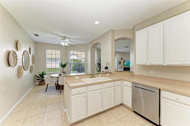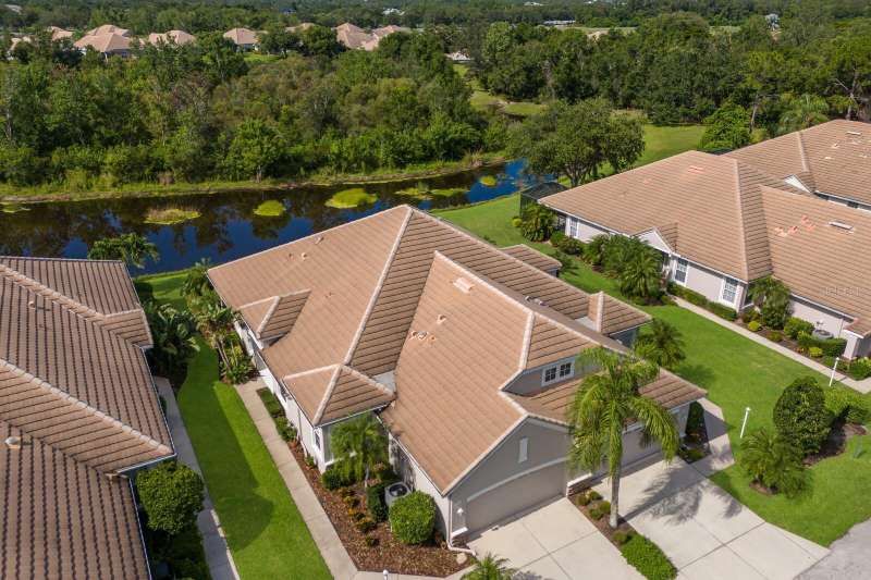 First time ever on the market, this one-owner residence offers exceptional care and is a beautifully maintained villa in the sought-after Weston neighborhood nestled behind the gates of the Lakewood Ranch Golf & Country Club. A NEW TILE ROOF recently installed in February 2025, is an incredible upgrade offering lasting value and peace of mind. This perfectly positioned 2-bedroom, 2-bathroom residence offers a den/office with a closet that can be used as a third bedroom and is ideally positioned with a tranquil water lot and preserve views. Here you will find an open and airy floor plan with high ceilings, freshly painted interiors, tile flooring throughout the main living spaces, and newer laminate flooring in both bedrooms. The spacious kitchen offers a granite breakfast bar and timeless laminate countertops, generous cabinet space, and a light-filled dining area separate from the expansive living room—perfect for everyday living and entertaining. The primary suite features tranquil lake views, a large closet, dual vanities, and an oversized shower. The “L” shaped extended screened-in lanai offers a peaceful outdoor retreat to enjoy the natural beauty of the lake and preserve. Additional features include the attached two-car garage, a laundry room with washer and dryer, ceiling fans throughout, and a terrific advantage of being an end unit is all the natural light flowing in from all windows and sliders. Residents of Weston enjoy a dedicated heated community pool and spa, along with cable/internet, exterior lawn and irrigation maintenance, all within the lush and manicured setting of Lakewood Ranch Country Club. Optional and convenient membership of the Country Club provides access to 4-championship golf courses, elegant clubhouses, a fully equipped athletic center with lap pools and fitness facilities, and numerous tennis and pickleball courts—with no wait list! Located just minutes from all the activities at Waterside Place and Lakewood Ranch Main Street, the Sarasota Polo Club, UTC shopping and dining, SRQ Airport, and the award-winning Gulf Coast beaches. Hurry, this maintenance free home offering the ultimate in Florida lifestyle living, won’t last long!