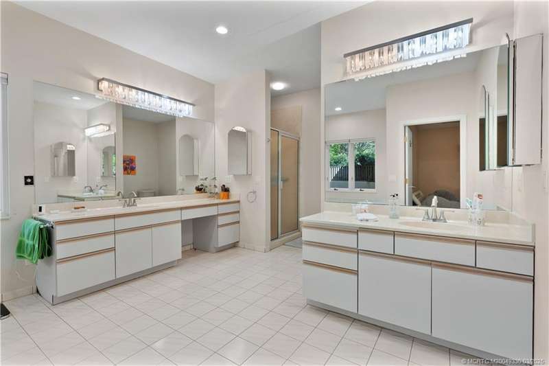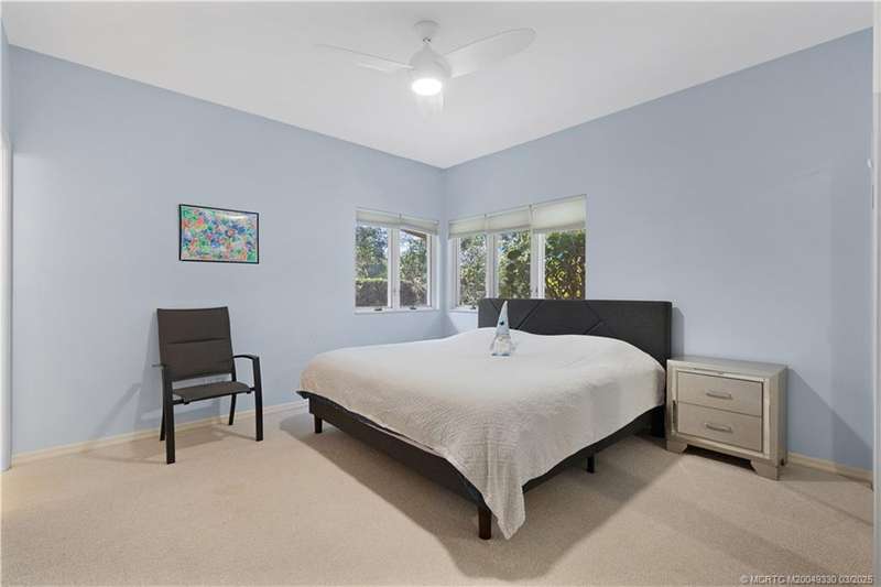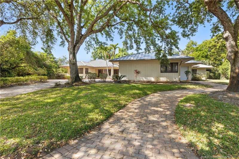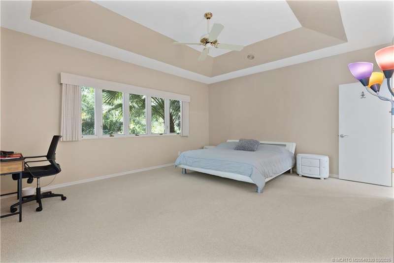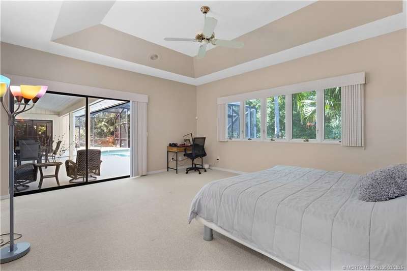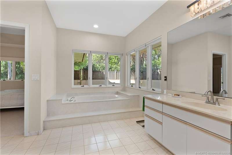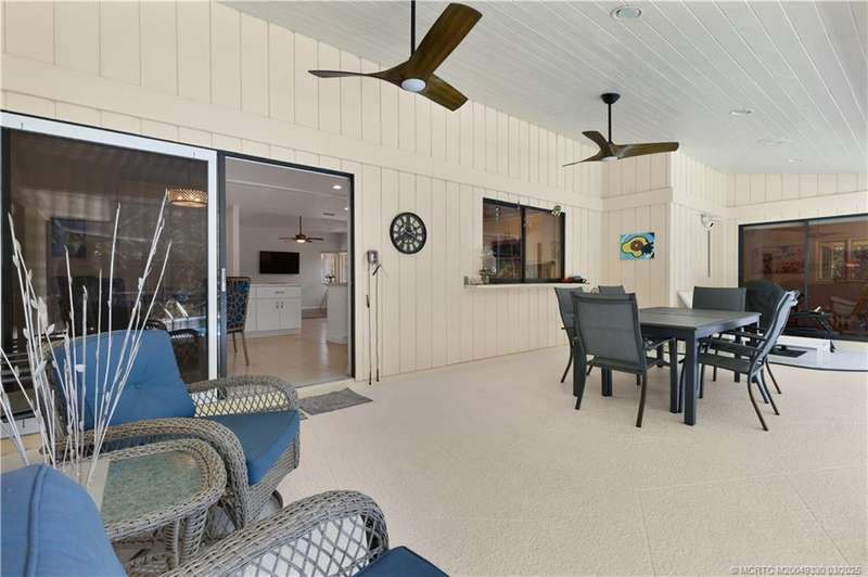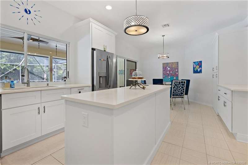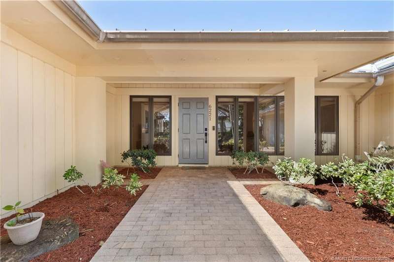 Welcome to 6221 SW Thistle Terr, a stunning custom home on a quiet cul-de-sac in the prestigious Pipers Landing Yacht & Country Club. Just steps from the golf course & clubhouse, this home offers a perfect blend of luxury & comfort. The impressive living room features soaring cathedral ceilings & a cozy fireplace, while the fully renovated kitchen boasts quartz countertops, stainless steel appliances, a wet bar, & a wine cooler. The split floor plan includes a spacious master suite, two guest bedrooms with en-suite baths, & a versatile fourth bedroom ideal for an office. The dining room can also serve as a den or media room. Step outside to a large screened lanai with a heated pool and cabana bath, all on a private 0.8-acre lot with green views. Additional highlights include elegant window treatments, an oversized laundry room with a work sink, a two-car garage, and a dedicated golf cart garage. Experience luxury living in a serene setting—this home is the ultimate Florida retreat!