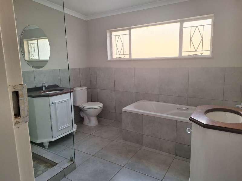 This family-friendly property offers a spacious 4-bedroom home with a separate flatlet and a large garden. The main house features four ensuite bedrooms, including a main bedroom with both a shower and a bathtub. The flatlet comes with its own bathtub and toilet. Additionally, the main house includes a bathroom with a shower, toilet, and closet. The interior layout comprises a dining room, lounge, kitchen, and laundry room, providing ample space for comfortable living. For added convenience, there's an outside toilet with a shower. The property also boasts a spacious garden and a storage room, making it ideal for families seeking both space and functionality.