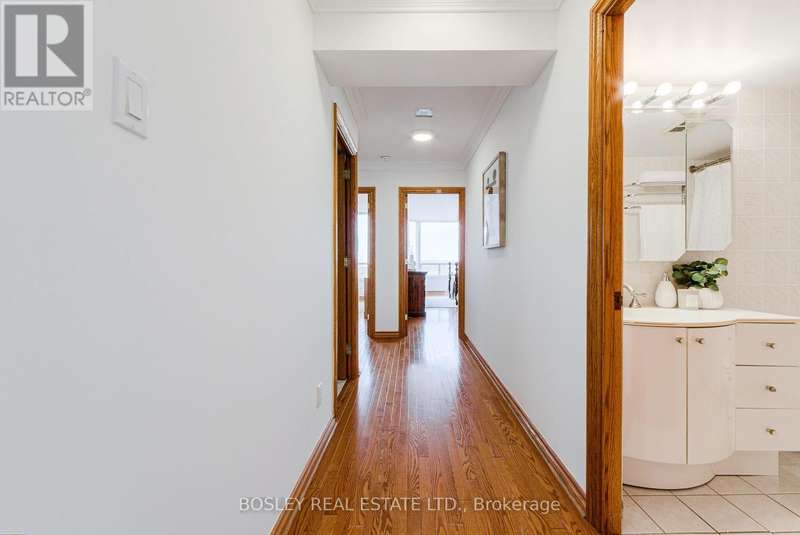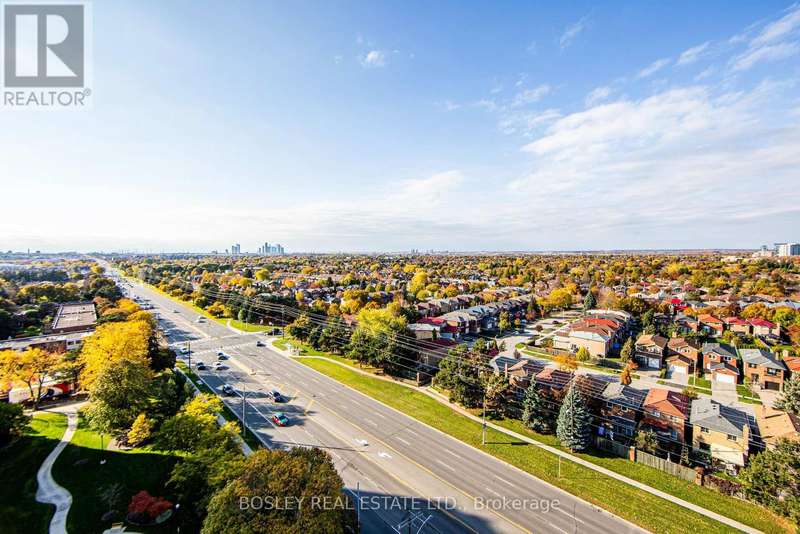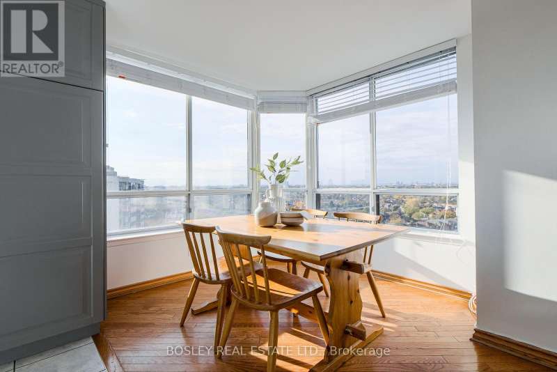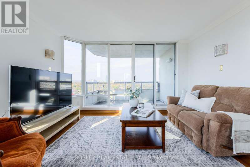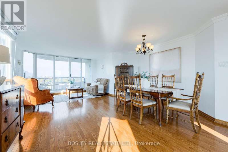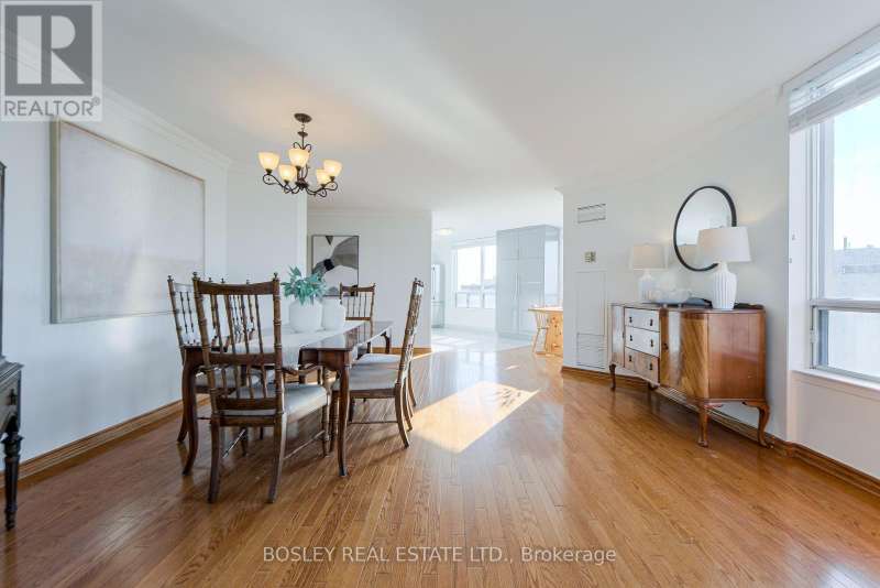 Welcome to your new home in the sky at the exceptional Primrose Condominiums! This bright and spacious 2 bedroom, 2 full bathroom suite offers panoramic 180 views that capture both sunrise and sunset along with the stunning northern skyline. Expansive windows fill the space with natural light, creating an uplifting, airy atmosphere and breathtaking views from every room. Refined details like gleaming hardwood floors, crown moulding, smooth ceilings, and elegant wall sconces bring warmth and character. The updated kitchen is large and inviting, featuring space for a full eat-in table plus a separate dining area - a rare luxury in condo living. The layout is well-appointed with 1432 square feet plus a private balcony, making the suite a truly livable space. Both bedrooms are generously sized with ample closet space. All utilities are included (even cable TV), meaning no separate hydro, water, or gas bills - just effortless, worry-free living. A tandem parking spot fits 2 cars for added convenience. Primrose Condominiums reflects genuine pride of ownership, with tastefully renovated hallways, elevators, and an elegant lobby. Resort-style amenities include an outdoor pool, tennis court, sauna, gym, and gated security entrance - offering comfort, safety, and a truly elevated lifestyle. Located steps from public transit (TTC and YRT), diverse food options, schools (Rockford PS and Fisherville Sr PS), shopping, parks, green space and everyday conveniences, this location can't be beat. Whether you are a downsizer or growing family, this suite combines space, light and comfort. Make #1511 your home, sweet home!