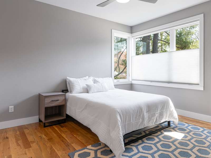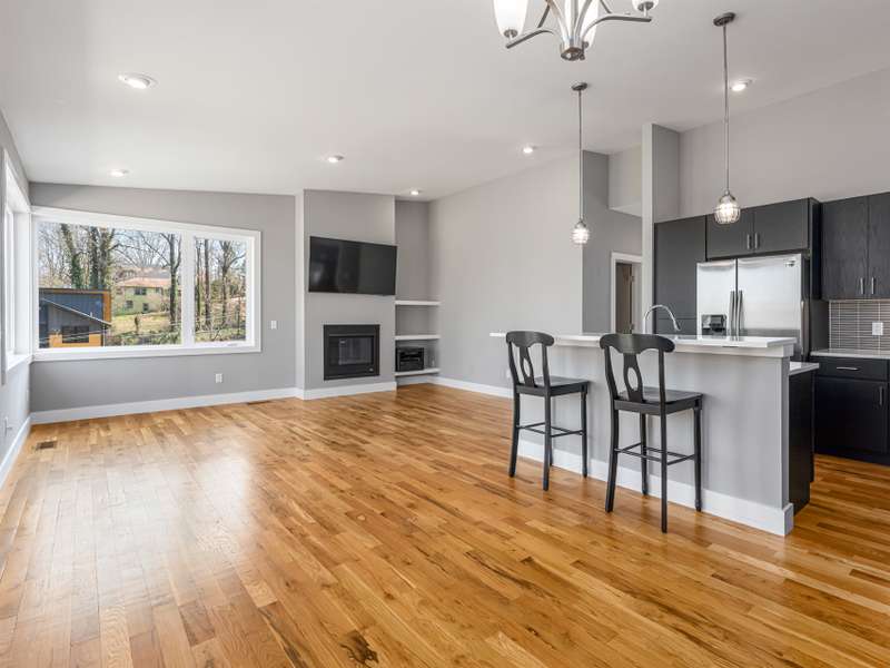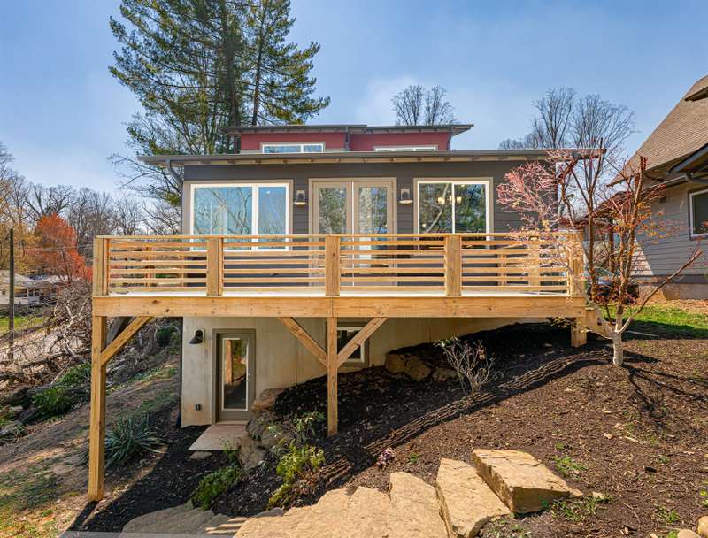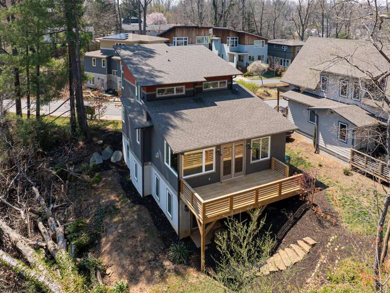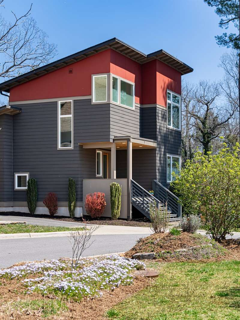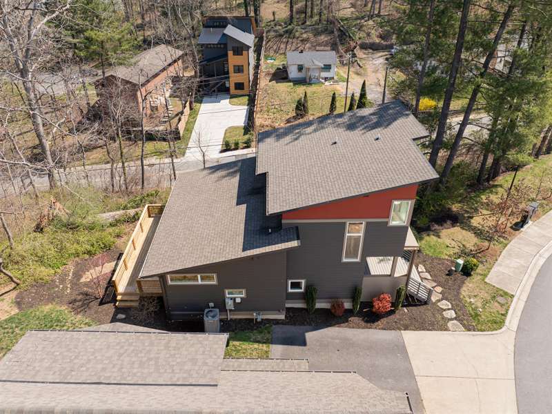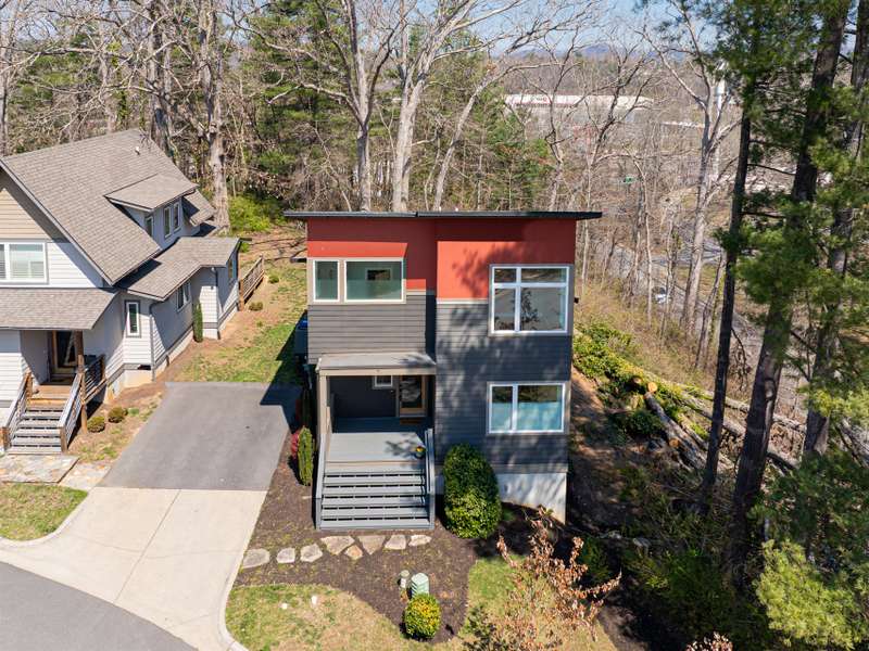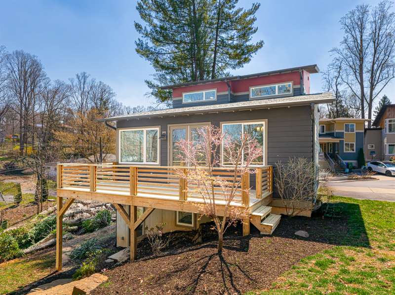 2019 Modern Green Built home in Craggy Park, walkable West Asheville's newest green community with streamside trails, organic gardens and a private park. Built by JAG Construction, features include an open floor plan, gourmet kitchen with quartz countertops, sunny back deck off of living room, hardwood floors, and large windows for great light. Primary suite on main level with ensuite full bath. Second floor has two bedrooms and one full bathroom. Finished basement with separate entrance has bedroom, full bath with wet room and large media/bonus room. Low-maintenance yard is professionally landscaped. Low energy bills and many green features. Walkable/Bikeable to WAVL Shops, dining, farmers market and music venues. Light and bright and room for ALL with 4 bedrooms, 3.5 baths.