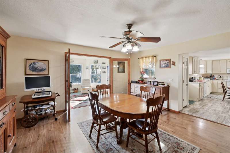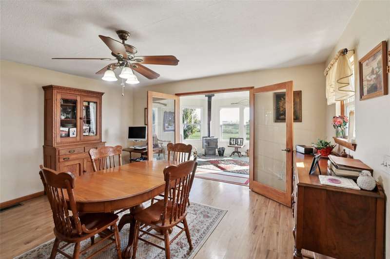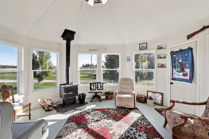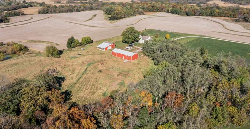 Comfortable Country Charmer with Room to Roam! Rural Southern Iowa 1880s home (plus additions and updates), several outbuildings, pond and 28 M/L Acres of open and timbered land. Everything you need on main level including nice eat-in kitchen & option for area/formal dining, primary bedroom with adjoining bath, large laundry/storage space with door to patio, 3-Seasons room features abundant natural light and wood burning stove, half bath and mud room. The upper level offers two additional bedrooms, full bath and several closets. Enjoy countryside views from the welcoming front porch, large patio or open yard. Imagine creating your own private retreat down a country lane with plenty of spots to create wonderful gardens for vegetables and flowers. Quaint red tile building just outside back door offers great potential for unique space. Outbuildings include one with part concrete/part dirt floor, camper parking and stalls for animals; Detached garage has 3 stalls 1 w/slider doors and ability to drive through / 1 w/overhead door, in-floor heat / 1 with concrete/wood floor and stalls; plus a couple smaller sheds. Appointment only to see all this property offers. All information obtained from Owner and Public Records.