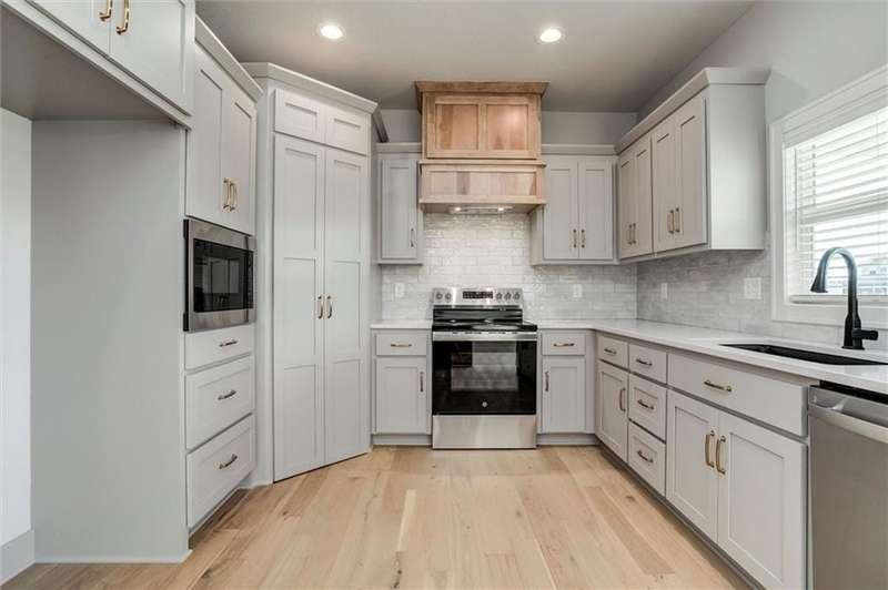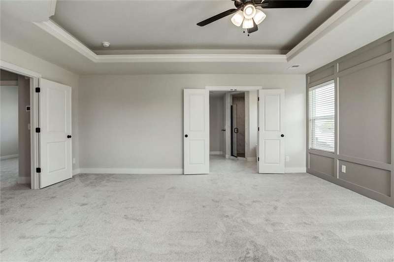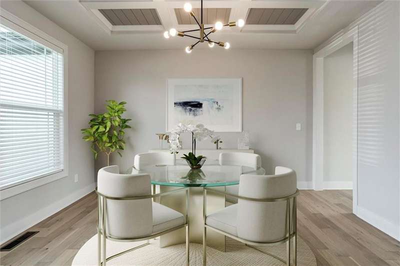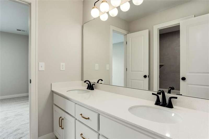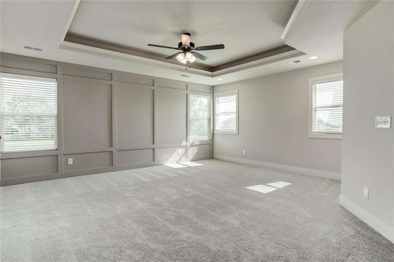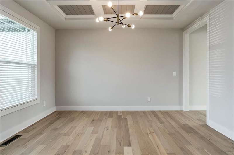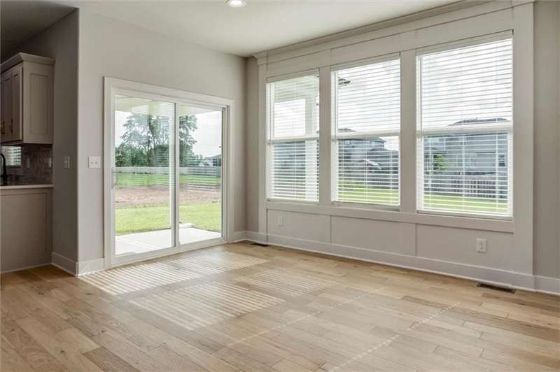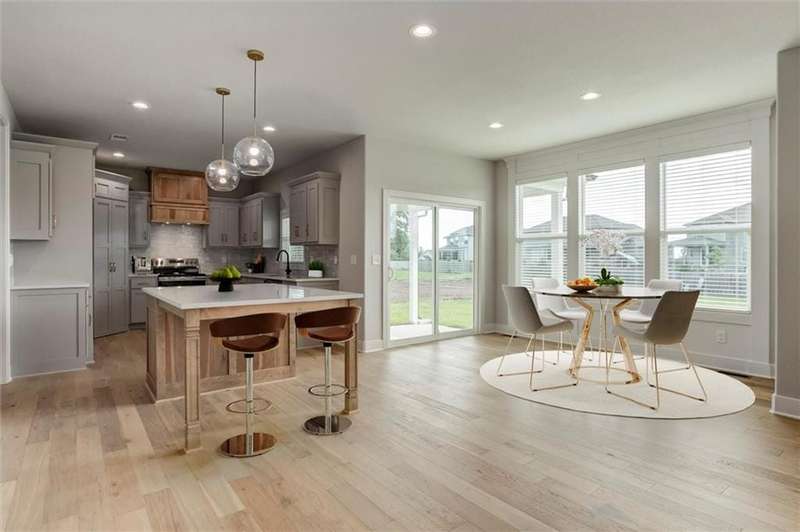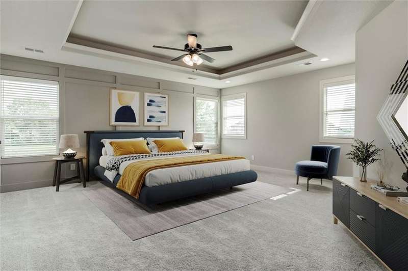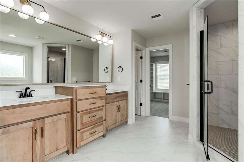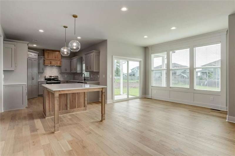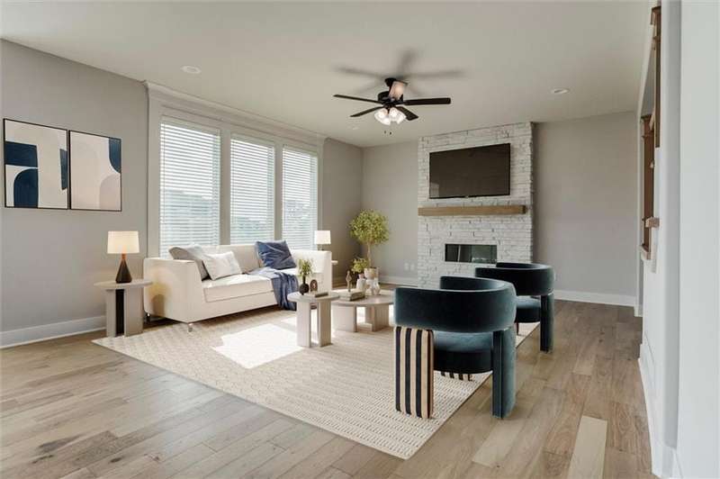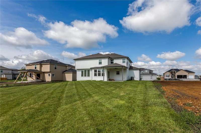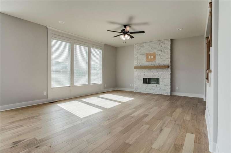 MOVE IN READY! BLINDS & GARAGE DOOR OPENERS ARE INCLUDED! Come tour this beautifully crafted home, where elegance meets functionality. Designed with luxurious finishes and modern amenities, this home offers an exceptional living experience. Upon entering through the double front doors with privacy glass, you're greeted by rich hardwood floors that flow seamlessly throughout the first floor. At the heart of the home is the spacious kitchen, which features enamel cabinets (built with stain-grade wood), a black composite sink, and matte black fixtures. An upgraded kitchen backsplash, built-in microwave, trash drawer, & a pass-through pantry with ample shelving and workspace. The great room is impressive, highlighted by extensive trim work & an electric linear fireplace with a full-height stone facade and stained mantle. The dining room features a box beam ceiling with intricate shiplap inlay, adding dimension and elegance. Every bedroom is pre-wired for ceiling fans. The secondary bathrooms offer tile flooring and shower walls, while quartz vanity tops & wood-framed mirrors in the master and half baths. The master bedroom features a lighted tray vault ceiling and accent wall with a nook for an office or makeup table. Energy-efficient features include Low-E windows, upgraded R-49 attic insulation, insulated garage walls, and a 30-year composition roof. LED bulbs, can lighting, and a Wi-Fi smart thermostat help reduce energy use. A whole-home humidifier is also included to enhance comfort. The exterior consists of stone accents, paint, and porch beam upgrades. A covered patio and sprinkler system are included. This home blends luxury, style, and practicality. Area Amenities include a stocked fishing lake with a picnic shelter and fire pit. Trails, a playground, a heated pool with slide and splash zone, and a tanning ledge. Taxes and Square footages are estimated.