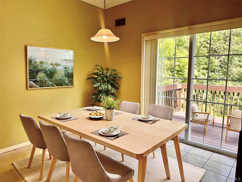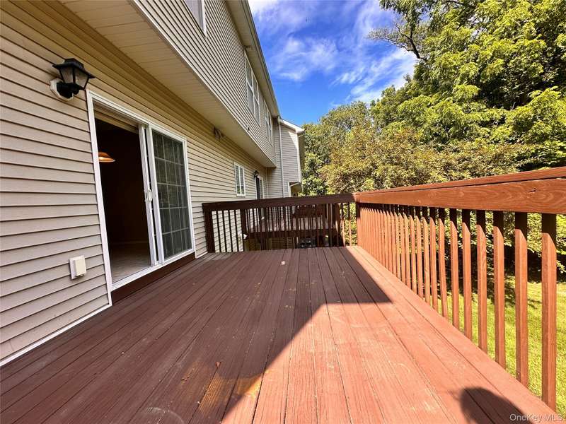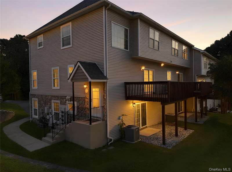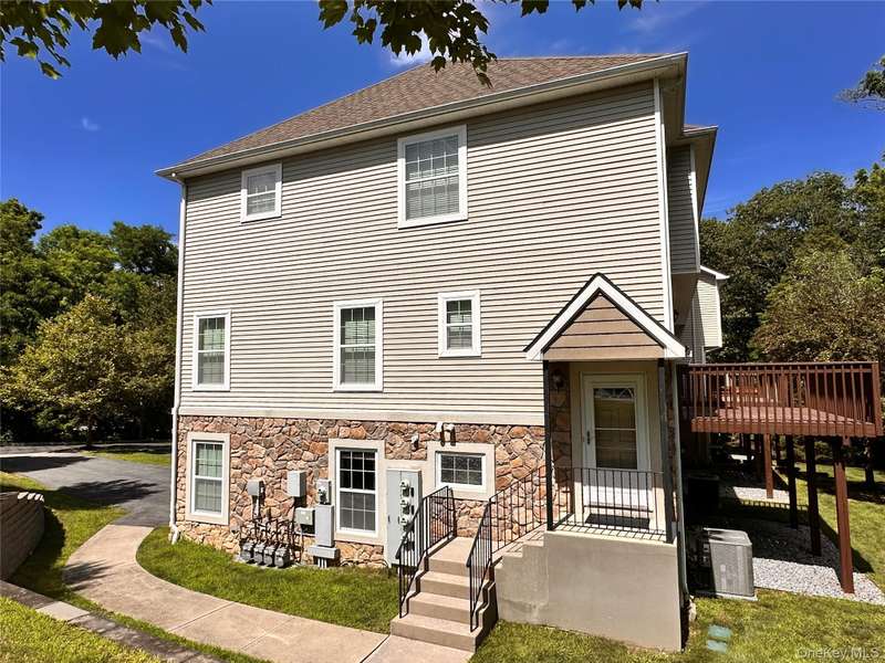 Are you ready to move? Come see this luxury townhouse before it's too late! 2-bedrooms, plus a loft/office area, 2 full bathrooms, 2 half bathrooms, and a two-car garage with a long private driveway. The entryway, dining room, and living room have hardwood floors, 9 ceilings, and plenty of sunshine with extra windows in this spacious end unit. A nature lovers deck connects from the eat-in kitchen and overlooks a private grassy and wooded area. Upstairs is an oversized primary bedroom featuring a walk-in closet, trey ceiling, and a private bathroom complete with a deep soaking tub, double vanity, and a separate shower. The second bedroom is generously sized with a deep closet, and overlooks the private backyard. The 3rd floor landing leads to a bonus loft area that can serve as a home office, playroom, sitting area, or study space. Entering from the garage, you'll walk into a finished ground-floor family room with a half bathroom, laundry room, and storage closet. The sliding glass door opens to a private patio. Hidden Creek HOA maintains the amenities: an in-ground pool with a lifeguard, a clubhouse open to residents for entertaining or meetings, a billiards table, a kitchen, a fitness center with treadmills, weights, a stationary bike, an elliptical, a basketball court, and a playground. The top-rated Monroe-Woodbury School District is a short bus ride away, with full-day kindergarten, before and after-school programs, competitive sports teams, music, art, and clubs that have won numerous awards.