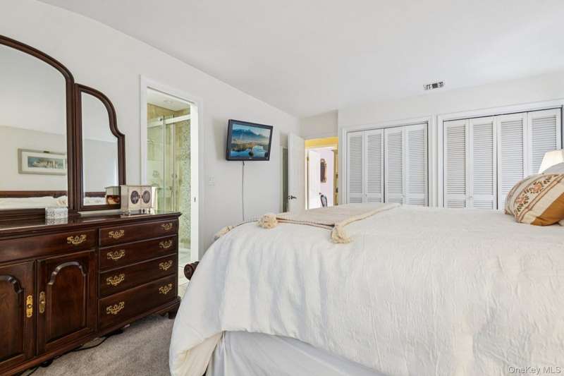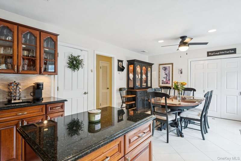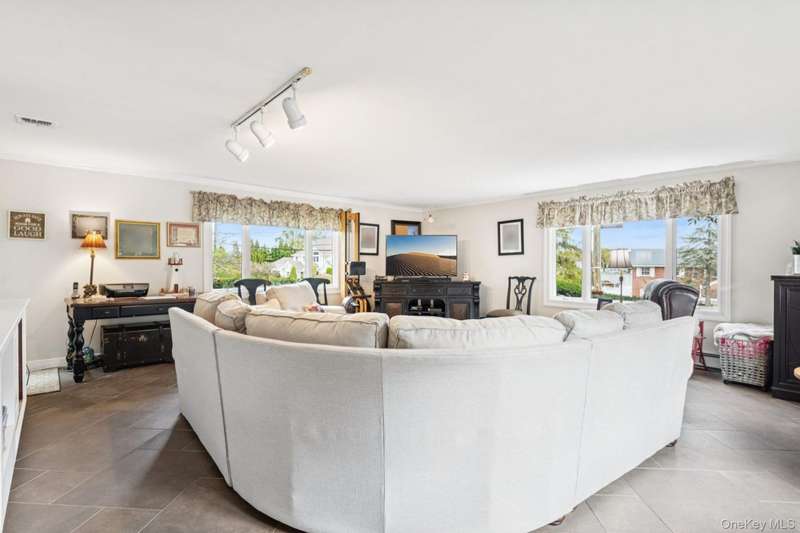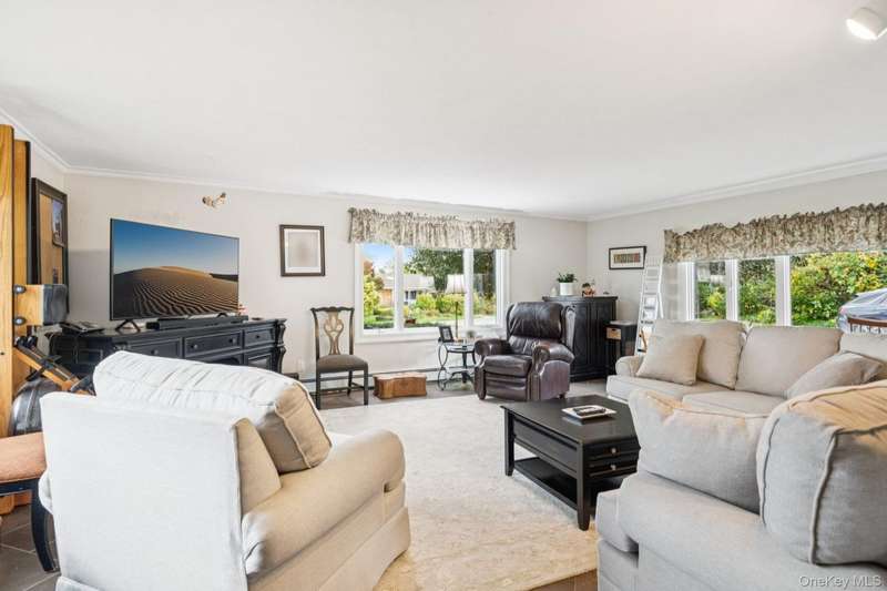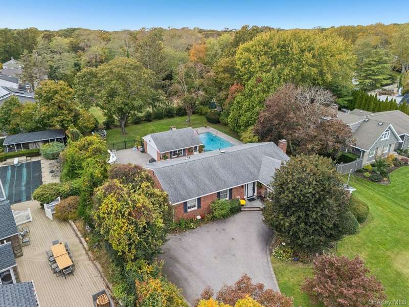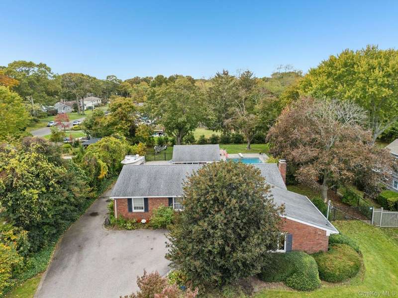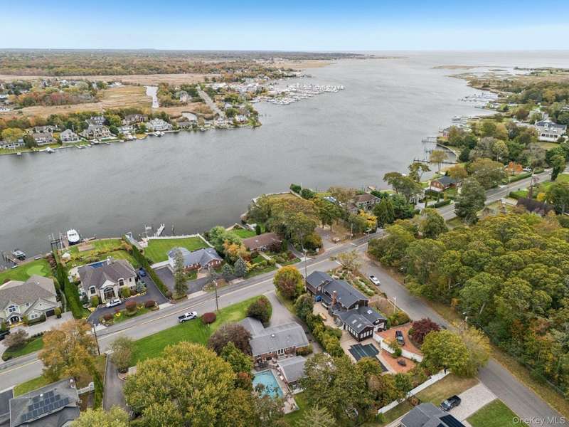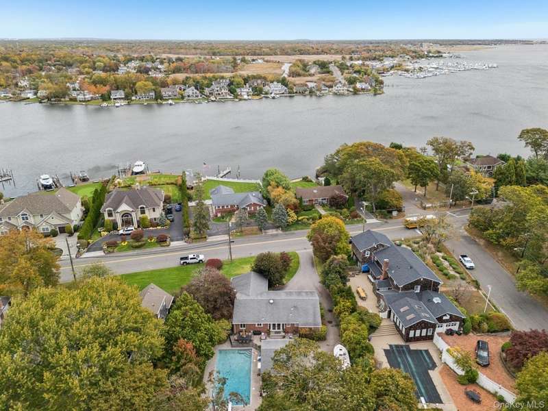 Gleaming wood floors and elegant porcelain tile throughoutPrimary bedroom with two double closets, and a private ensuite featuring radiant heated floorsBedroom #2 also features two double closets for ample storageBedroom #1 includes a spacious double closetMain bathroom with bubble jet soaking tub and radiant heat floorInviting living room with a classic wood-burning fireplaceFormal dining room perfect for hosting gatherings and holiday mealsSpacious kitchen featuring rich cherry cabinets, granite countertops, a coffee bar sink, and a generously sized pantryExpansive 22' x 22' great room with beautiful waterview visible from this spaceFull unfinished basement Central air conditioning Detached two-car garage 20' x 40' gunite saltwater pool Half-acre property Flood Zone X