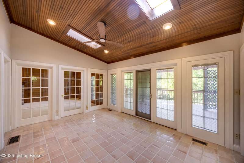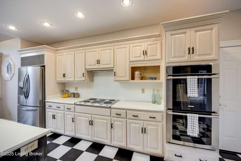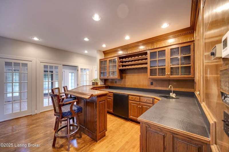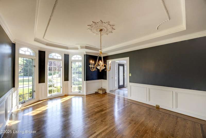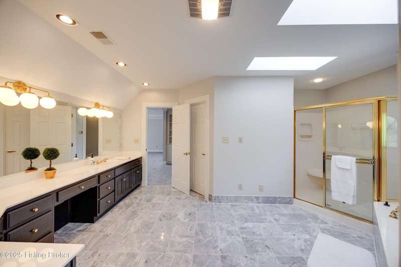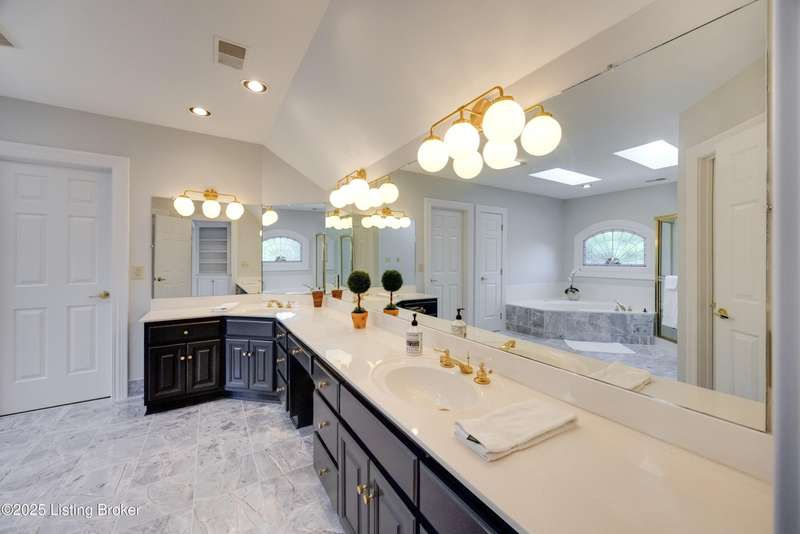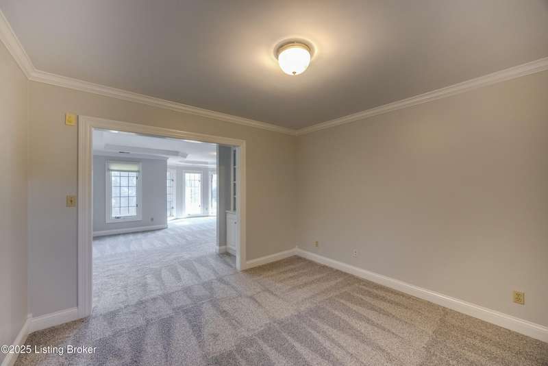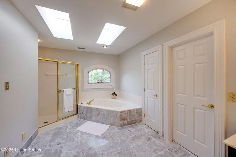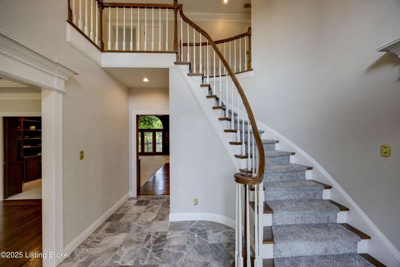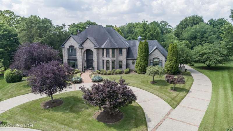 Stunning Estate on One of Hunting Creek's Finest Lots - Backing to Nature Preserve Offered for the first time in 30 years, this stately custom-built Bert Kuhlman estate home is located in the City of Prospect's prestigious neighborhood, Estates of Hunting Creek. It is ideally nestled at the end of quiet Doe Crest Court, on nearly 1.5 acres adjoining the serene Hunting Creek Nature Preserve. Pride of ownership is evident throughout this beautifully maintained home, both inside and out. A circular drive flanked by lamp-lit brick columns, manicured landscaping, and a brick walkway sets a gracious tone, while the striking brownstone brick façade, arched two-story entry, decorative cupola, and recently refreshed exterior paint complete the commanding curb appeal. Inside, a dramatic two-story foyer welcomes you with a custom leaded glass door, marble flooring, a curved staircase, updated chandelier, and dual entry closets. Elegant formal living and dining rooms feature refinished white oak hardwood floors, tray ceilings, and detailed trim work. The richly appointed great room impresses with custom paneling, built-in cabinetry, a brick fireplace with gas logs and log bin, plus an oak wet bar with beverage fridge and generous storage. One set of atrium doors open to a spacious rear deck and another door connects to a charming tiled sunroom with skylights, wood-paneled ceiling, and surround windows. The chef's kitchen offers abundant cabinetry, Corian countertops, black and white tile flooring, a center island with breakfast bar and sink, cooktop with vent hood, double ovens, refrigerator, dishwasher, and an oversized walk-in pantry. A vaulted breakfast room with Palladian window and built-in glass-door china cabinet flows easily from the kitchen. Nearby, the laundry room includes a utility sink, storage, and a built-in ironing board. A powder room with pedestal sink completes the main level. Upstairs, the expansive primary suite includes a tray ceiling, bay window, built-in cabinetry, and private sitting room. The large bath features dual vanities, whirlpool tub, separate shower, skylights, stained glass window, private water closet, linen storage, and a huge dual-sided walk-in closet with custom built-in cabinetry. A second bedroom suite opposite the primary suite features a private bath and 2 large closets. Two additional bedrooms sharing a Jack and Jill bath complete the upper leveleach with their own private vanity area and generous closets, including a vaulted front bedroom with Palladian window. The finished walkout lower level includes a spacious family room with a second fireplace and bar, two additional bedrooms with shared Jack and Jill bath, and atrium doors to the rear patio. A richly paneled office with built-ins and a bonus room for hobbies, workouts, or play add even more functional space. Outdoor living shines herewith a deck stretching the entire length of the home, a pergola outside the sunroom, and sweeping rear lawns offering space, privacy, and views of the nature preserve. Additional highlights include: " Oversized, deep three-car garage with attic storage and automatic doors " Dual-zone HVAC with two new A/C units and coils (May 2025) " 2 200 amp electrical panels with panel and circuits wired to garage for external emergency generator. " New carpet and fresh paint " 9-foot ceilings on main and upper floors; 8.5-foot ceilings in lower level " Central vacuum, security system, iron wall safe, lightning protection system and console generator " In-ground irrigation (front and rear, separate meter), landscape lighting with timers, fenced garden plot " All rear facing windows and doors replaced with highest quality Pella windows and door systems. " Custom trim and millwork throughout This is a rare opportunity to own a timeless home in a spectacular, secluded setting. The Hunting Creek neighborhood is active with numerous events including a famous Fourth of July parade and fireworks show. The holidays are festive with extensive decorations throughout the area by Light-Up Prospect. Hunting Creek Country Club offers a variety of memberships: full golf, junior golf, tennis, and social memberships.