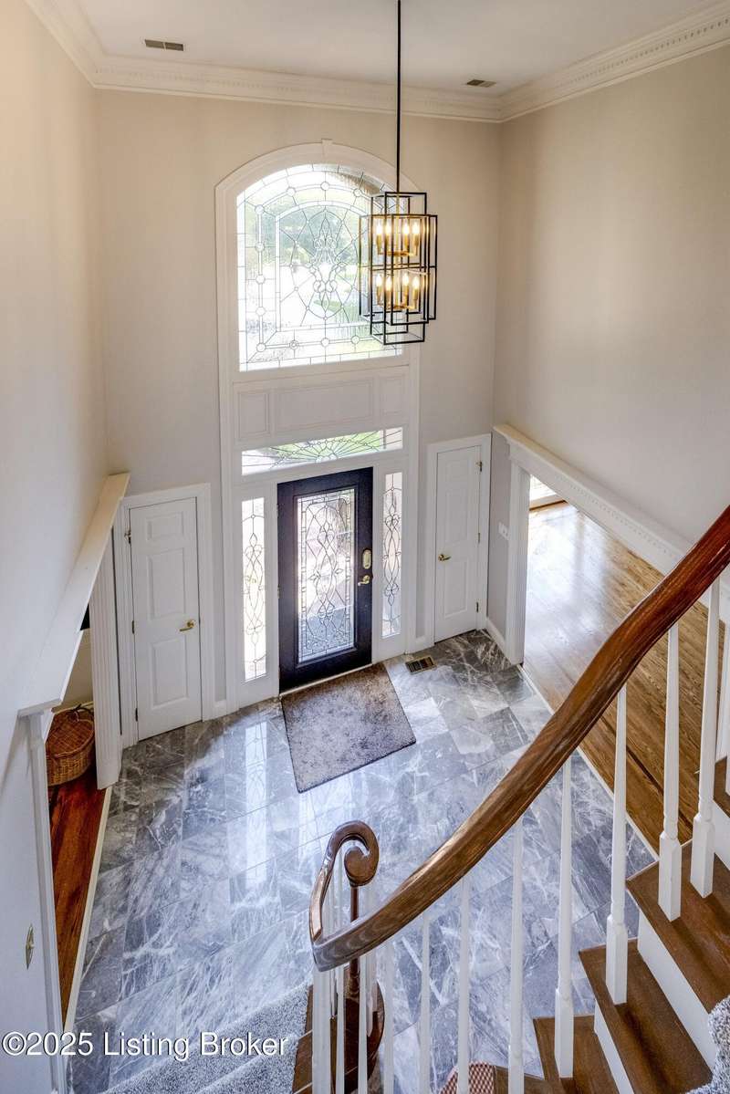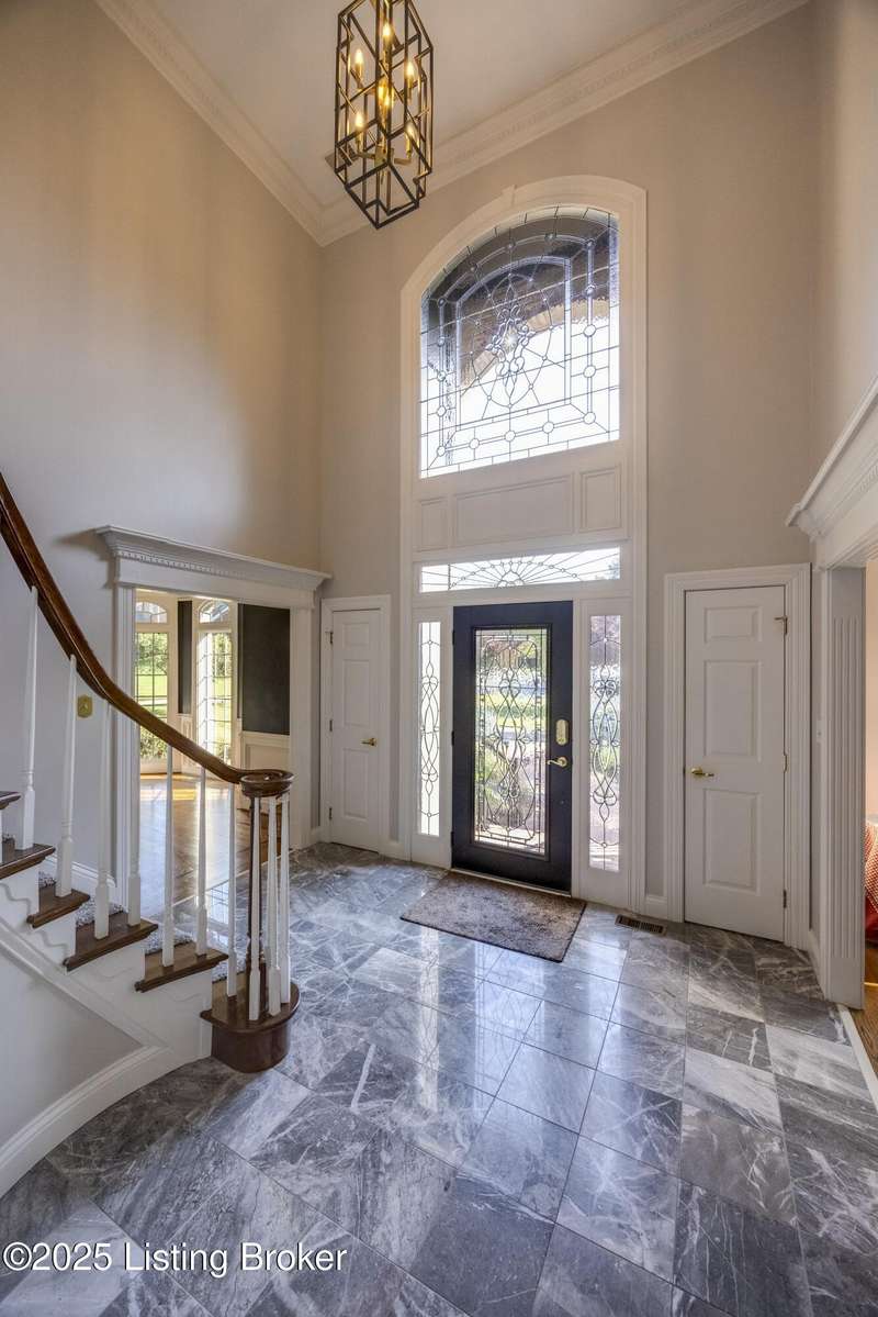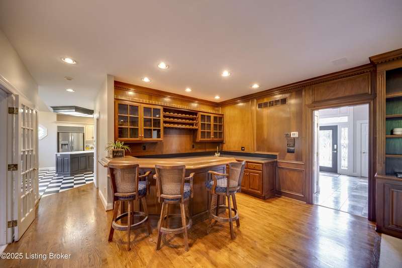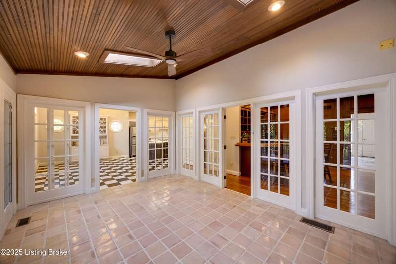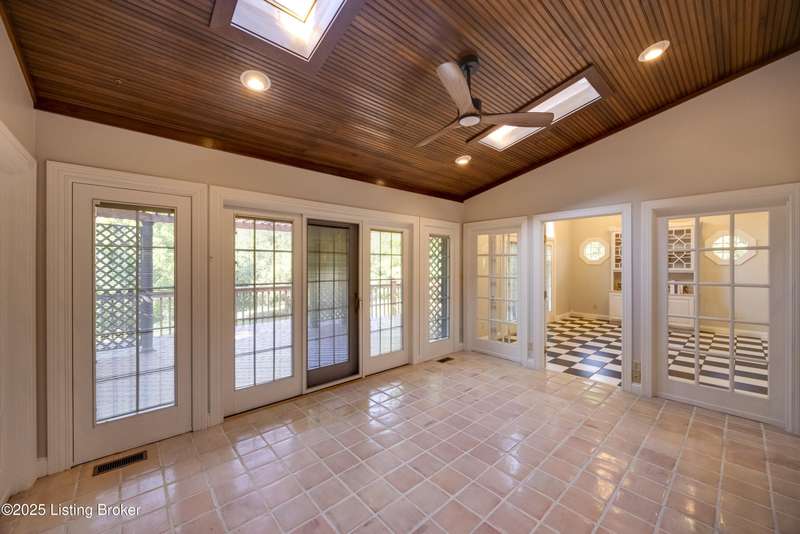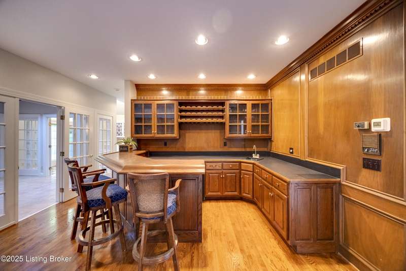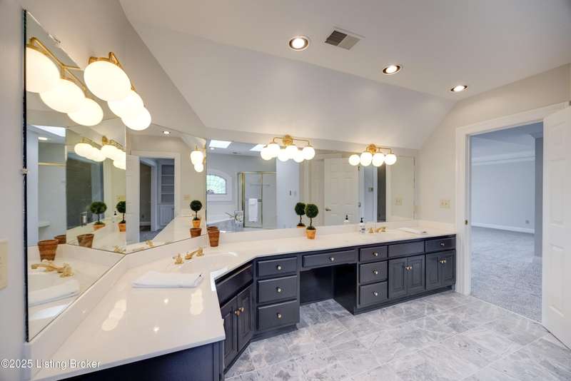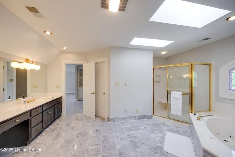 Stunning Estate on One of Hunting Creek's Finest Lots - Backing to Nature Preserve Offered for the first time in 30 years, this stately custom-built Bert Kuhlman estate home is located in the City of Prospect's prestigious neighborhood, Estates of Hunting Creek. It is ideally nestled at the end of quiet Doe Crest Court, on nearly 1.5 acres adjoining the serene Hunting Creek Nature Preserve. Pride of ownership is evident throughout this beautifully maintained home, both inside and out. A circular drive flanked by lamp-lit brick columns, manicured landscaping, and a brick walkway sets a gracious tone, while the striking brownstone brick façade, arched two-story entry, decorative cupola, and recently refreshed exterior paint complete the commanding curb appeal. Inside, a dramatic two-story foyer welcomes you with a custom leaded glass door, marble flooring, a curved staircase, updated chandelier, and dual entry closets. Elegant formal living and dining rooms feature refinished white oak hardwood floors, tray ceilings, and detailed trim work. The richly appointed great room impresses with custom paneling, built-in cabinetry, a brick fireplace with gas logs and log bin, plus an oak wet bar with beverage fridge and generous storage. One set of atrium doors open to a spacious rear deck and another door connects to a charming tiled sunroom with skylights, wood-paneled ceiling, and surround windows. The chef's kitchen offers abundant cabinetry, Corian countertops, black and white tile flooring, a center island with breakfast bar and sink, cooktop with vent hood, double ovens, refrigerator, dishwasher, and an oversized walk-in pantry. A vaulted breakfast room with Palladian window and built-in glass-door china cabinet flows easily from the kitchen. Nearby, the laundry room includes a utility sink, storage, and a built-in ironing board. A powder room with pedestal sink completes the main level. Upstairs, the expansive primary suite includes a tray ceiling, bay window, built-in cabinetry, and private sitting room. The large bath features dual vanities, whirlpool tub, separate shower, skylights, stained glass window, private water closet, linen storage, and a huge dual-sided walk-in closet with custom built-in cabinetry. A second bedroom suite opposite the primary suite features a private bath and 2 large closets. Two additional bedrooms sharing a Jack and Jill bath complete the upper leveleach with their own private vanity area and generous closets, including a vaulted front bedroom with Palladian window. The finished walkout lower level includes a spacious family room with a second fireplace and bar, two additional bedrooms with shared Jack and Jill bath, and atrium doors to the rear patio. A richly paneled office with built-ins and a bonus room for hobbies, workouts, or play add even more functional space. Outdoor living shines herewith a deck stretching the entire length of the home, a pergola outside the sunroom, and sweeping rear lawns offering space, privacy, and views of the nature preserve. Additional highlights include: " Oversized, deep three-car garage with attic storage and automatic doors " Dual-zone HVAC with two new A/C units and coils (May 2025) " 2 200 amp electrical panels with panel and circuits wired to garage for external emergency generator. " New carpet and fresh paint " 9-foot ceilings on main and upper floors; 8.5-foot ceilings in lower level " Central vacuum, security system, iron wall safe, lightning protection system and console generator " In-ground irrigation (front and rear, separate meter), landscape lighting with timers, fenced garden plot " All rear facing windows and doors replaced with highest quality Pella windows and door systems. " Custom trim and millwork throughout This is a rare opportunity to own a timeless home in a spectacular, secluded setting. The Hunting Creek neighborhood is active with numerous events including a famous Fourth of July parade and fireworks show. The holidays are festive with extensive decorations throughout the area by Light-Up Prospect. Hunting Creek Country Club offers a variety of memberships: full golf, junior golf, tennis, and social memberships.