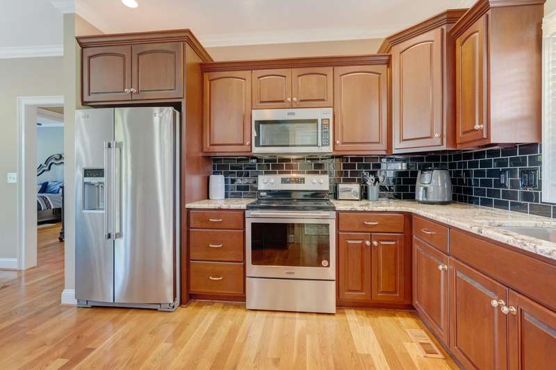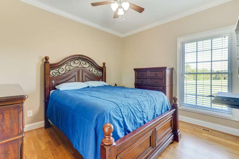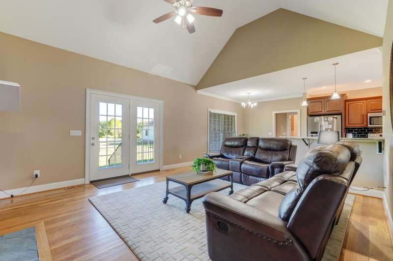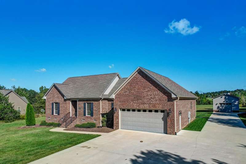 Experience the perfect blend of elegance, craftsmanship, & modern comfort in this like-new, all-brick custom home on 3.4 acres in Western Alamance County. This stunning 3-bed, 2-bath residence boasts vaulted ceilings, hardwood floors, & stunning stone fireplace that anchors the open, inviting living space.The beautifully designed kitchen flows seamlessly into a formal dining area & bright breakfast room. Step outside to the expansive stamped concrete covered porch, overlooking a breathtaking backyard with a fenced area ideal for four-legged friends or for simply soaking in the peace and privacy.Added bonus: an attached 2-car garage plus a detached, custom-built garage provide plenty of space for vehicles, projects, or storage. Nestled in Sartin Shores near Lake Cammack, this home offers a tranquil retreat with room to breathe, play, and live beautifully. Every detail has been thoughtfully designed this is a home ready to welcome your next chapter..