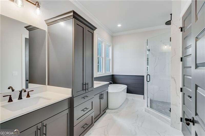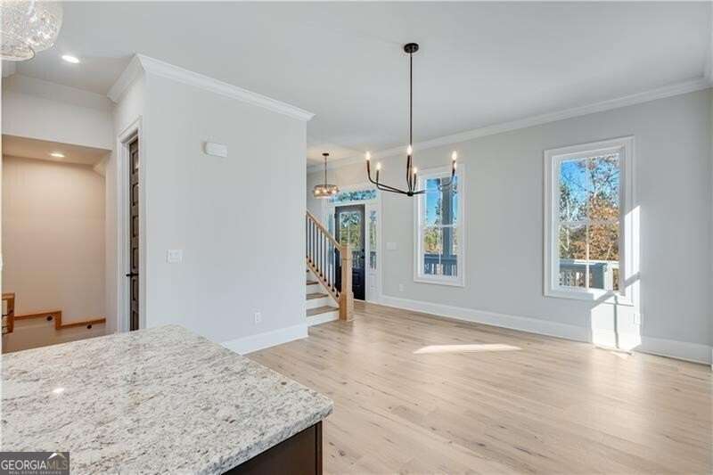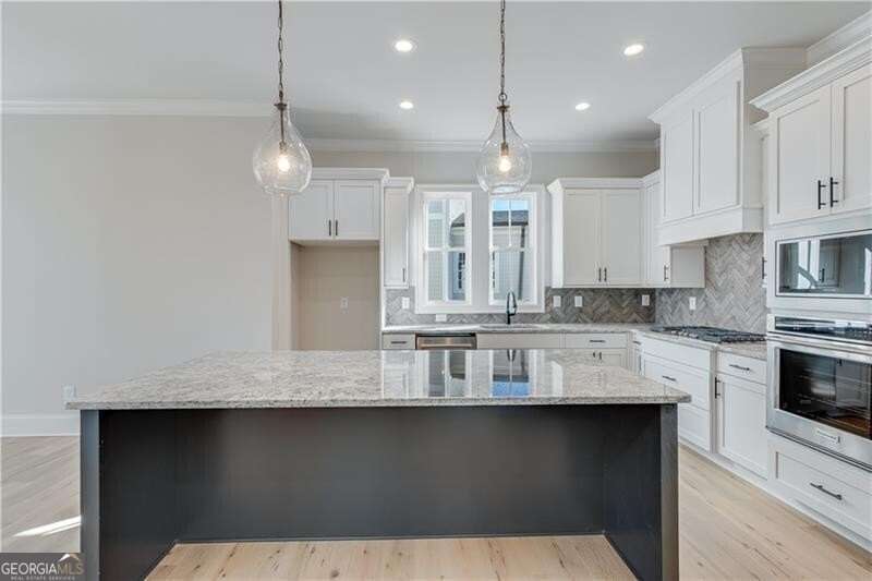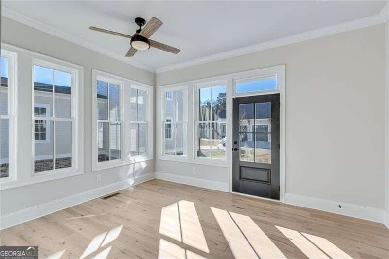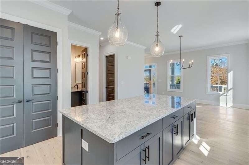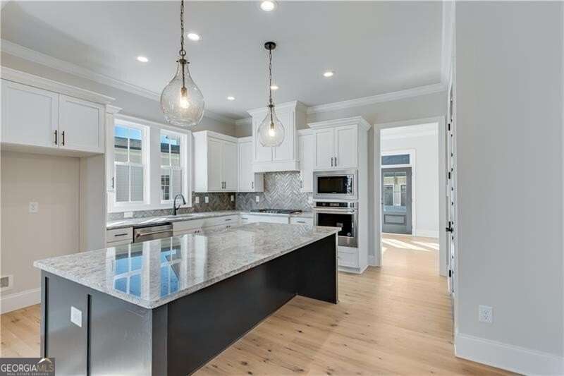 **One of the distinctive "Six Sisters" at Homestead at Hog Mountain, this charming property was crafted by one of our preferred architects, Alison Ramsey, drawing inspiration from San Francisco's iconic "Painted Ladies". This adaptable plan, artfully designed for versatility, boasts 5 bedrooms and 5.5 bathrooms, and is gracefully spread across three levels of living space. Highlights include an open kitchen with a central island and dining area, a cozy study or office complete with a fireplace, a bright and airy sunroom, and a spacious family/media room equipped with a built-in kitchenette. Additionally, with its own entrance, the lower level offers private access and encompasses 2 bedrooms, 2 bathrooms and the family/media room with kitchenette. Along with the unfinished ADU space above the garage, this thoughtfully crafted layout allows the home to adapt to your needs and provides an ideal haven for multigenerational living options.