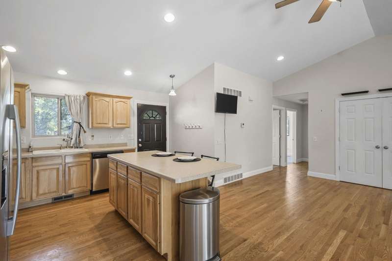 This cottage style home boasts an open floor plan, vaulted ceiling, Amish cabinetry, oak flooring, an over sized garage, and newer appliances. Enjoy small town living with an easy commute to Madison, Sun Prairie, Portage and beyond. Give this home some TLC or move right in, this property offers the perfect opportunity for buyers looking to put their own touch on a home.