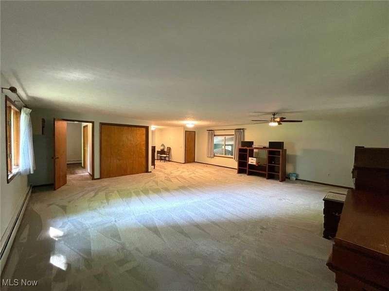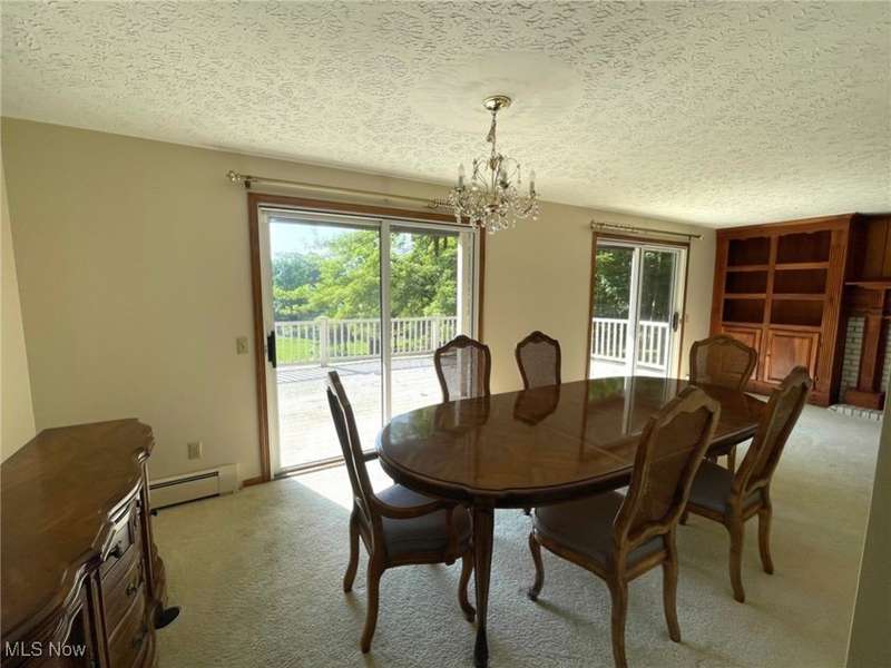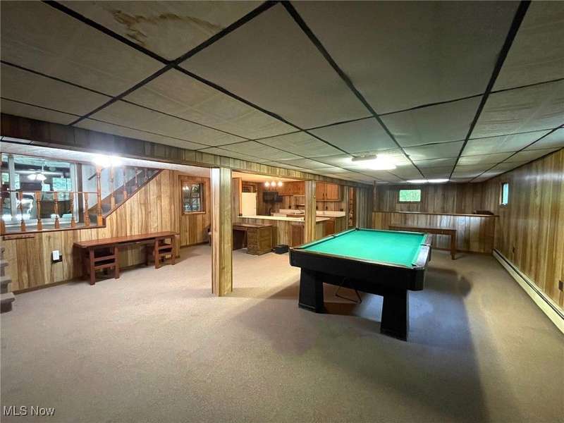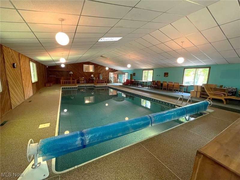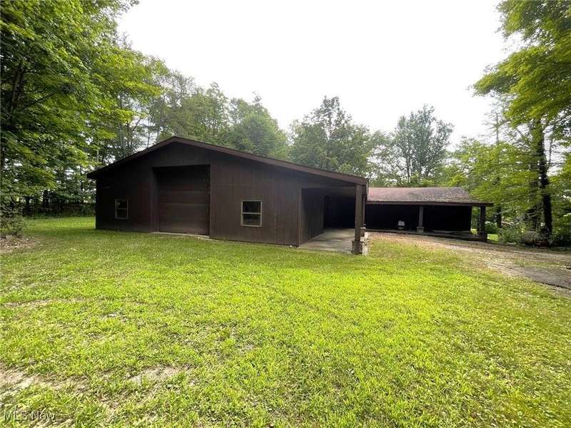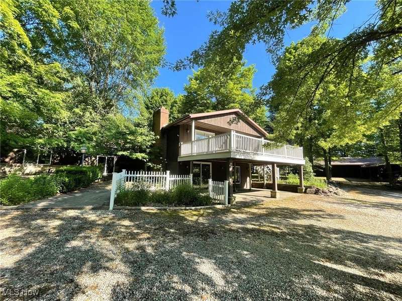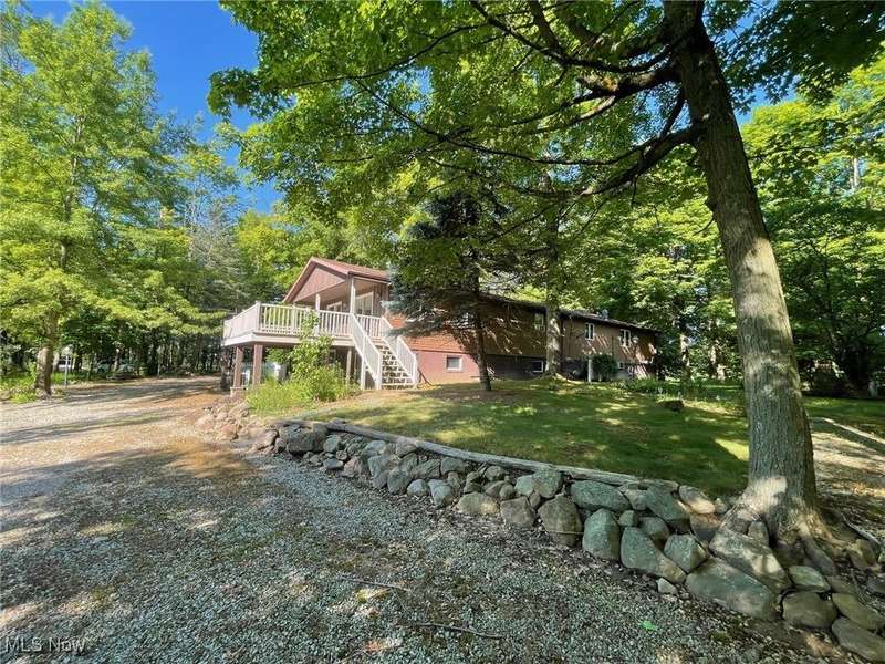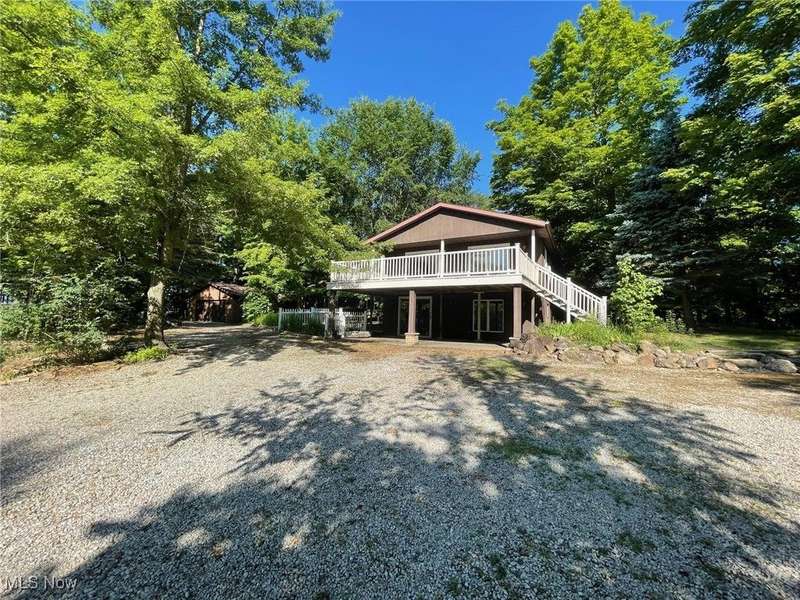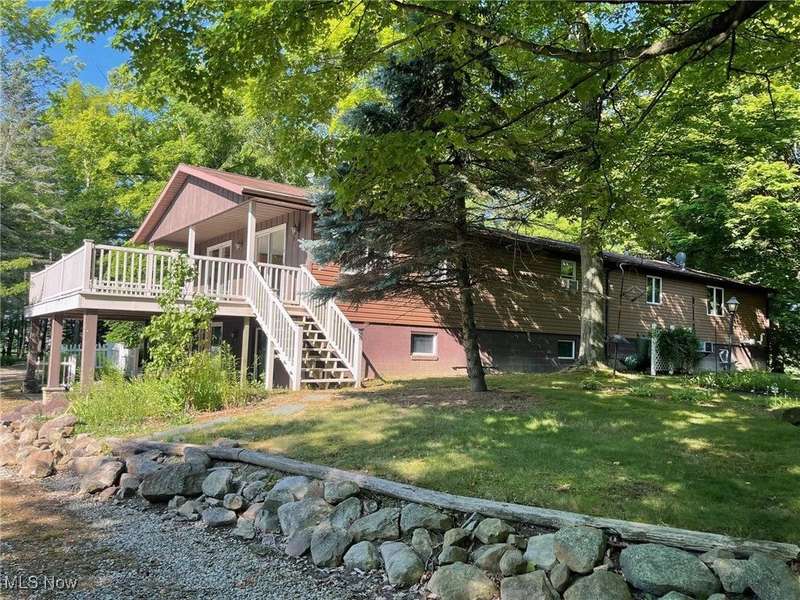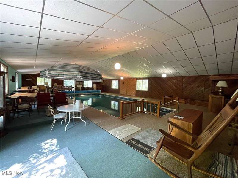 Great home for multigenerational living or entertaining family and friends. This home is located on approximately 3.44 acres. Home features a first floor living room, kitchen, dining room, bedroom, recreation room and full bathroom. The living room has a fireplace and the recreation room also has a full kitchen. Pool table stays. The second floor features a living room, kitchen, dining room, two bedrooms and a pool room. The living room has a fireplace and built-in cabinetry. There is access to the second floor deck from the dining room. Spacious master suite has a large large bathroom, two closets and a reading room. The pool room is gigantic and has a spacious pool, lounge areas and wet bar. Nature stone flooring around the pool area. Pool liner and water replaced 2024. All kitchen appliances and washer and dryer stay. Roof replaced July 2025. Several window a/c units stay. Pond on this parcel is half on this property. Relax and and enjoy the beautiful views on the outdoor patios or deck. Additional acreage and a huge barn is also available. The barn has 8' and 12' doors, steel beams, concrete floors and a workshop. Call Realtor for more details.