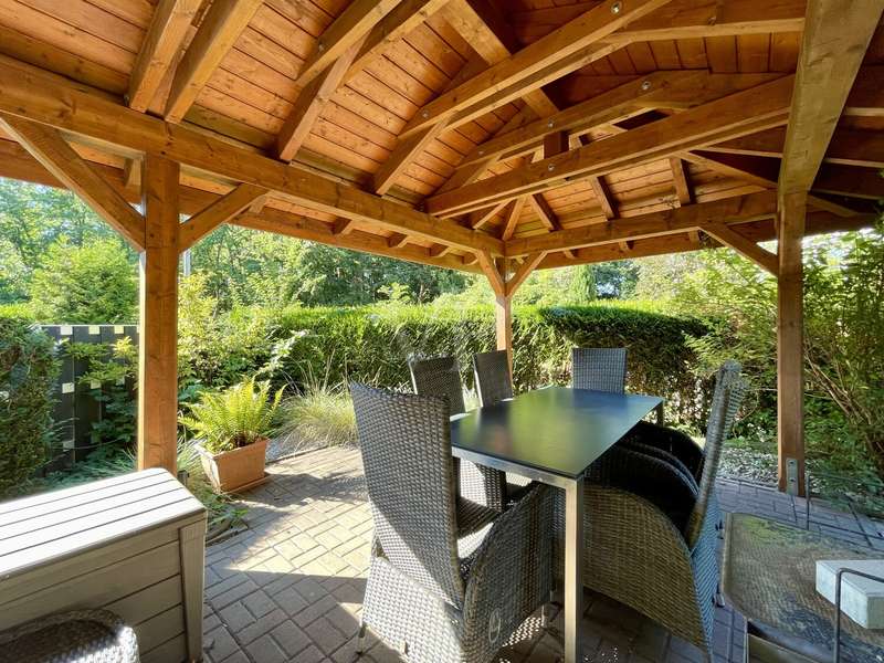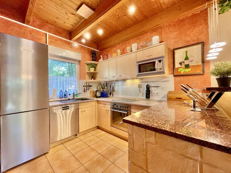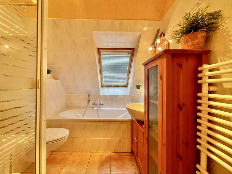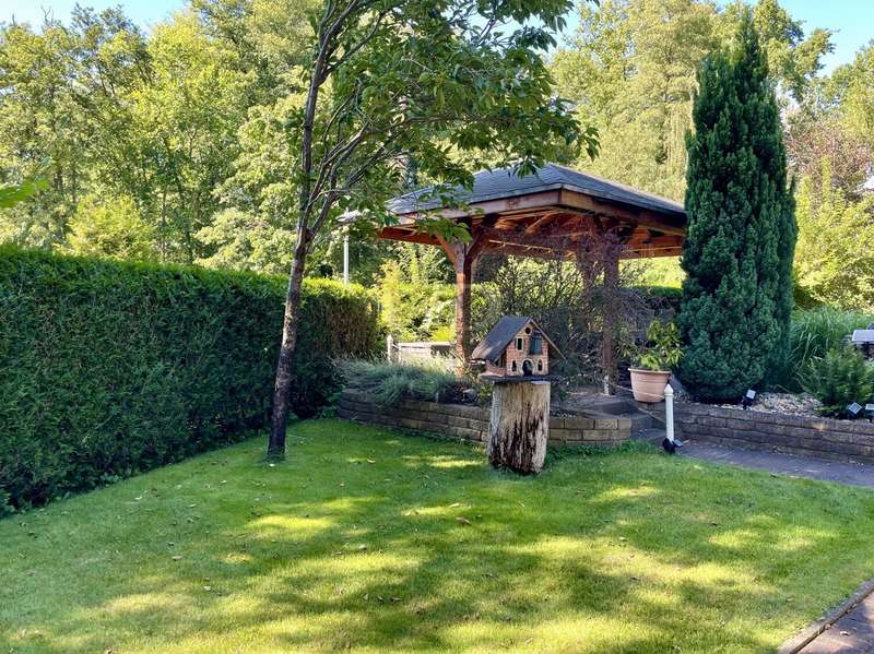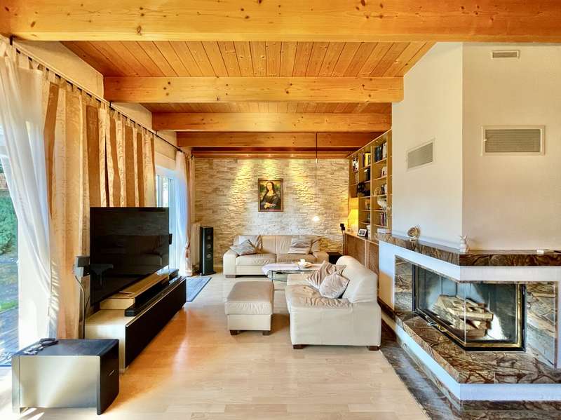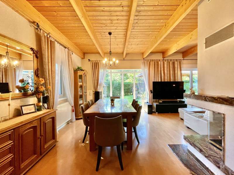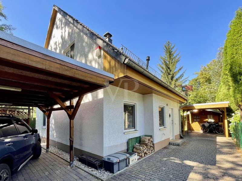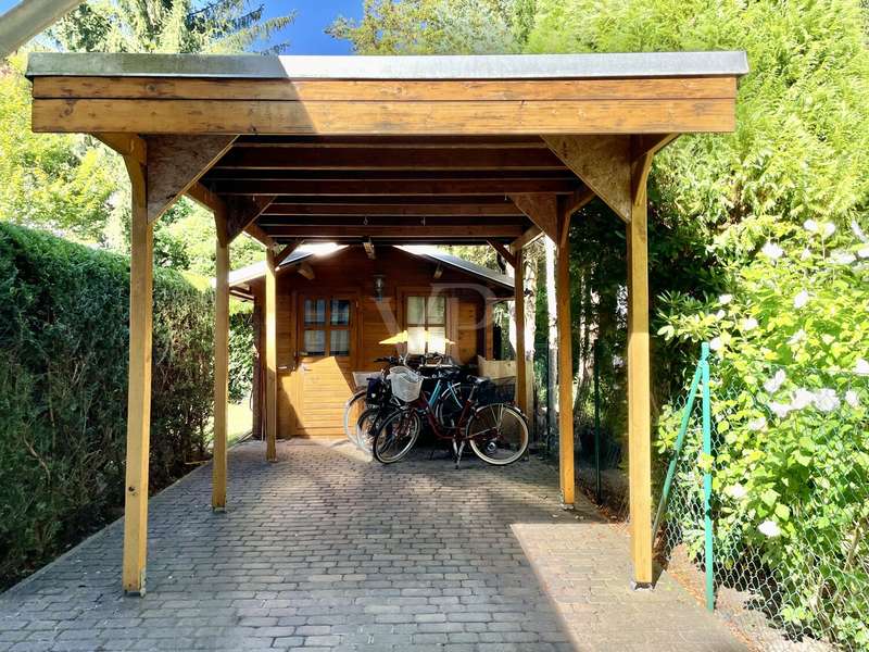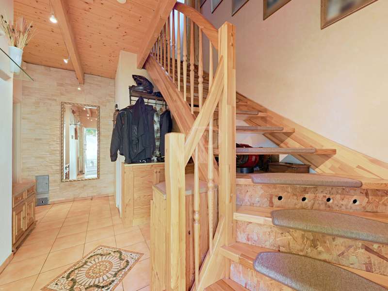 Your new home - feel good from the very first moment Welcome to a place where warmth, security and quality are tangible. This solidly built detached house from 2002 combines timeless architecture with cozy living comfort and offers everything your heart desires. You can realize your dream home on around 108 m² of living space and a lovingly landscaped plot of approx. 545 m². You will feel welcome as soon as you enter the house. The bright hallway, tastefully tiled, welcomes you with a practical checkroom and a guest WC. The spacious living and dining area - the heart of the house - opens up from here. Exposed beams give the room a warm, cozy atmosphere, while the fireplace with fireclay bricks provides cozy warmth on cold days and stores it for a long time. Enjoy cozy hours with family and friends in a room that connects and offers a beautiful view of the garden thanks to the floor-to-ceiling windows. The open-plan kitchen invites you to cook together and has direct access to the utility room, where the heating is also located - practical and well thought-out at the same time. The elegant wooden staircase takes you to the top floor, where peace and privacy await you. Three spacious rooms offer you numerous design options - whether as a bedroom, children's room or home office. The stylish bathroom with shower, bathtub and modern wall-mounted radiator will be your personal oasis of well-being. The loft above provides additional valuable storage space. The outdoor area leaves nothing to be desired: A covered terrace of approx. 22 m² invites you to enjoy relaxing summer evenings, while the well-kept grounds with a garden shed, a greenhouse of approx. 17 m² and a well for cost-saving irrigation make it a paradise for amateur gardeners. Two carports, a prepared parking space for a trailer or a small mobile home and an electric driveway offer maximum convenience. Even firewood has been thought of - around 10 cubic meters of wood are already waiting for you. The house is also technically impressive: electrically programmable roller shutters, excellent thermal insulation inside and out, a modern alarm system and an efficient fireplace ensure security, energy efficiency and well-being. You're not buying a house here - you're buying a home where memories are made.