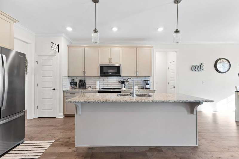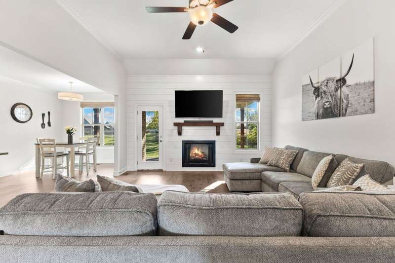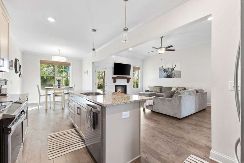 Welcome to 1021 C P Stewart Blvd - a nearly new all-brick home built in 2022 offering 4 bedrooms, 3 full baths, and over 2,700 square feet of thoughtfully designed living space. You'll love the open-concept main level featuring a bright kitchen with white cabinets, stainless appliances, and quartz countertops that flow seamlessly into the living area with soaring ceilings and a gas fireplace. The layout makes entertaining easy, with a spacious dining room, breakfast nook, and a covered patio overlooking the backyard.The primary suite is tucked away on the main floor and features double vanities, a walk-in shower, and large closet. Upstairs you'll find three additional bedrooms, a bonus room, and tons of storage space. Outside, enjoy a covered front porch, two-car side-entry garage, and a backyard ready for play, pets, or a future pool.Conveniently located near I-840, 109, and Mt. Juliet, this home sits in a quiet community with easy access to schools, shopping, and restaurants. West Elementary, West Wilson Middle, and Mt. Juliet High.