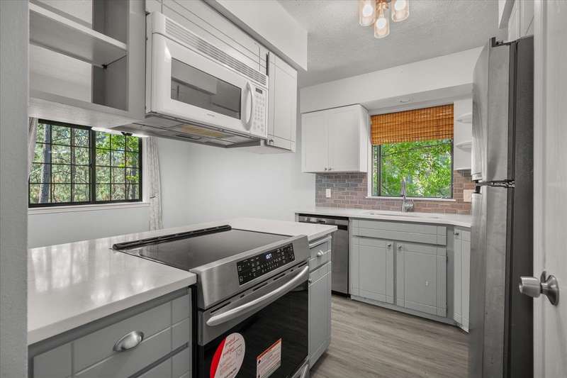 Woodlands at Liberty Lake!!! A newly updated 2-bed/2-bath condominium with an upper loft that could serve as a 3rd bedroom w/closet or office/rec space. This upper level unit boasts so many updates: new vinyl windows, new LVP flooring, new shower/tub surround, new Hot Water tank, new stacked washer/dryer, new countertops, new slide-in range, newer refrigerator, new A/C, new cadet wall heaters, new roof. Tandem garage w/opener. Rear deck to the view. Only 5 min from Lib Lk Golf Course or 5 min from Liberty Lake. Come enjoy the Liberty Lake lifestyle today!