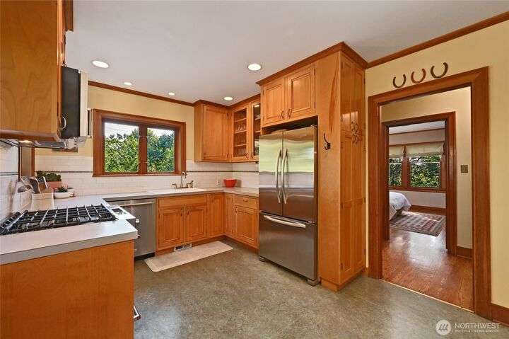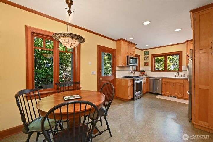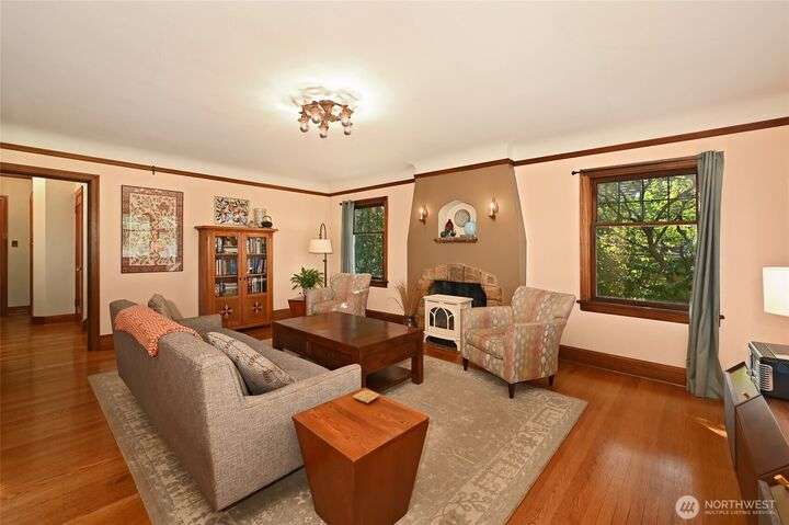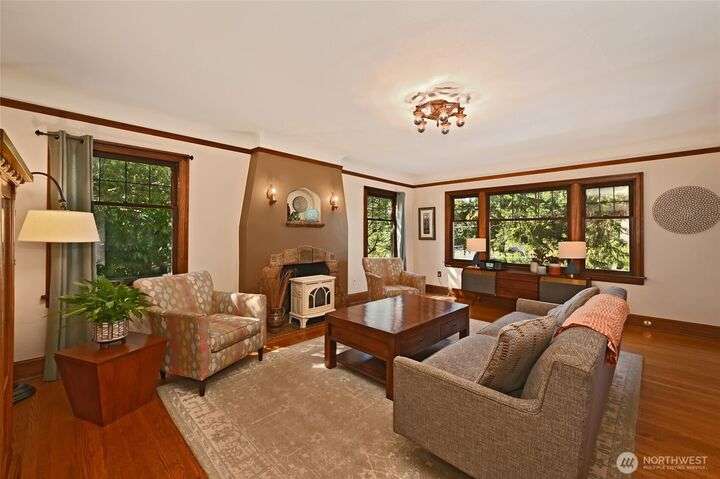 Picture-perfect 1928 home on a quiet Ballard/Phinney street, brimming with character. Oak floors and coved ceilings on the main, fir floors upstairs, and a bright eat-in kitchen with ceiling-high cabinets that opens to a private backyard retreat. Generous living and dining rooms set the stage for gatherings. Three finished levels offer 4 bedrooms, 2.5 baths, a versatile lower family room, and abundant storage spaces throughout. Perched above the street for privacy, this move-in-ready home is a short stroll from cafés, restaurants, breweries, shops and schools, and close to Green Lake and Woodland Park Zoo. Don’t miss this opportunity for classic charm with everyday comfort in a coveted location!