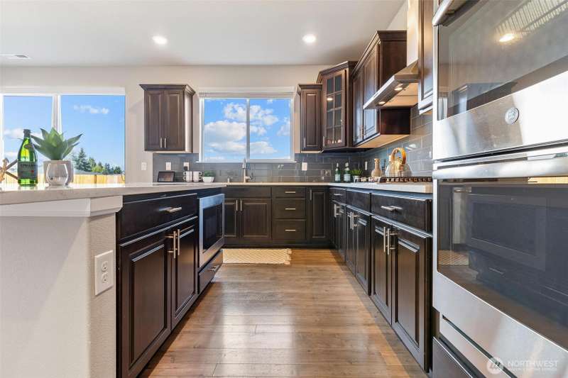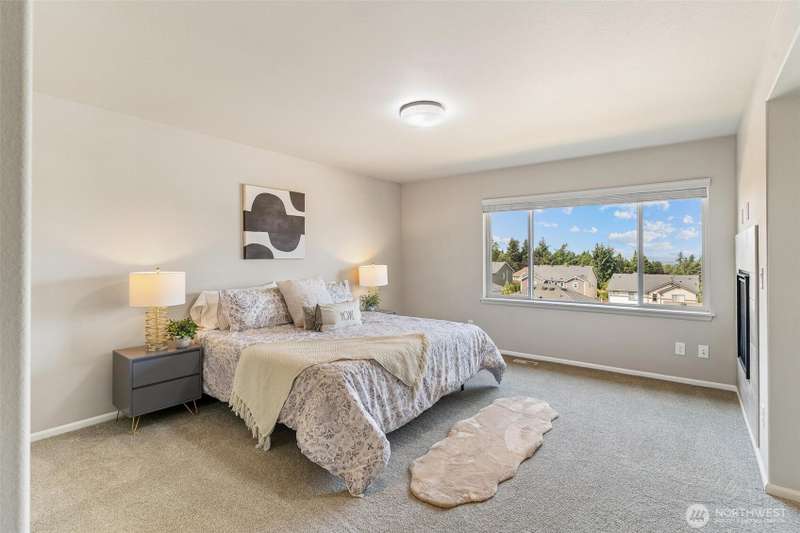 Immaculately maintained this stunning Wyncrest corner-lot home blends modern luxury w/comfort and convenience. Soaring ceilings w/a grand entry into an open-concept layout filled w/ natural light. The chef’s kitchen boasts quartz counters, large island, double oven, and butler’s pantry, flowing seamlessly to the living space w/ a striking tiled fireplace. Main level highlights include a private guest suite with convenient bath, a den/office, and formal dining. Upstairs, the expansive primary retreat features a spa-inspired bath, double-sided fireplace, and sitting area with Mt. Rainier views. A spacious bonus room, jack&jill bedrooms and laundry add versatility. Upgrades:Tesla charger, A/C, tankless water, fenced yard, and extended parking.
