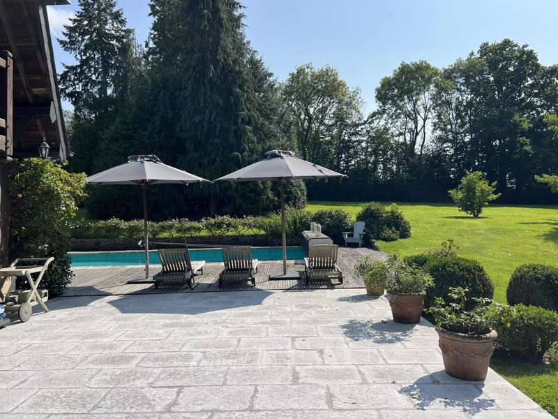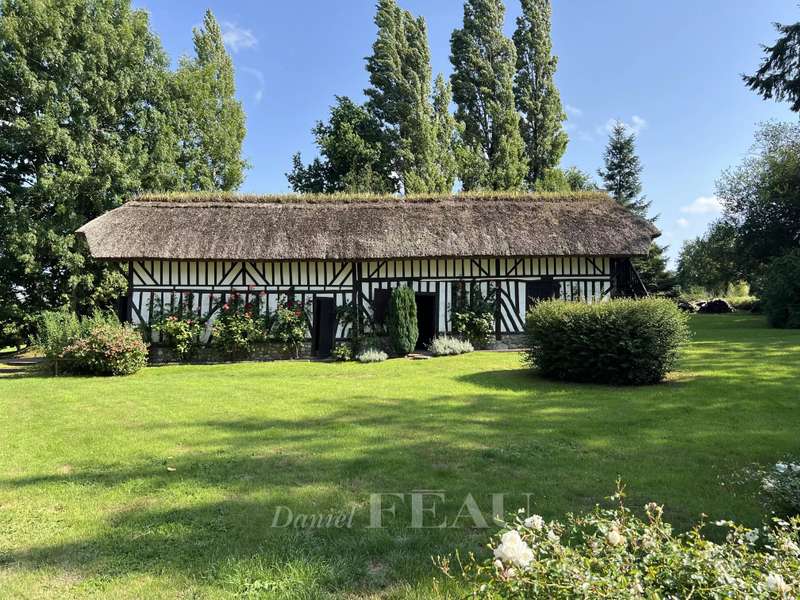 Charming Norman property with swimming pool, outbuilding & landscaped grounds – Bonneville-la-Louvet Between Pont-l'Évêque and Cormeilles, in peaceful, unspoilt countryside with no neighbors, discover this authentic Norman property full of character, nestled in the heart of over 2 hectares of wooded grounds with a pond. The property comprises a main house of approximately 222 m², a thatched outbuilding, a heated swimming pool, a 3-car garage, and a beautiful terrace area where you can enjoy the peace and quiet of nature. The main house comprises: Upstairs: Landing leading to: master bedroom with bathroom, bedroom, shower room, toilet, two adjoining bedrooms. Outside and outbuildings: A half-timbered outbuilding housing: the pool equipment, a storage area. A triple garage.