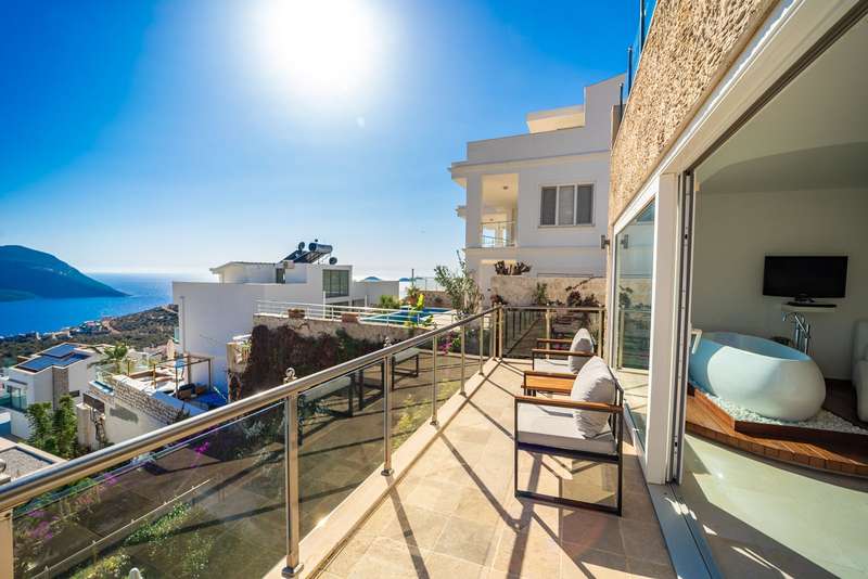 Villa with Sea and Kalkan Views, Jacuzzi and Modern Architecture in Kalkan