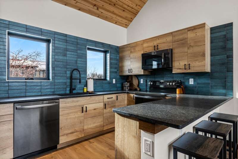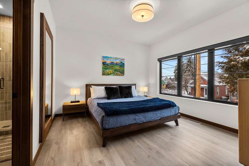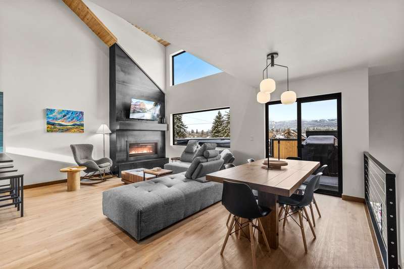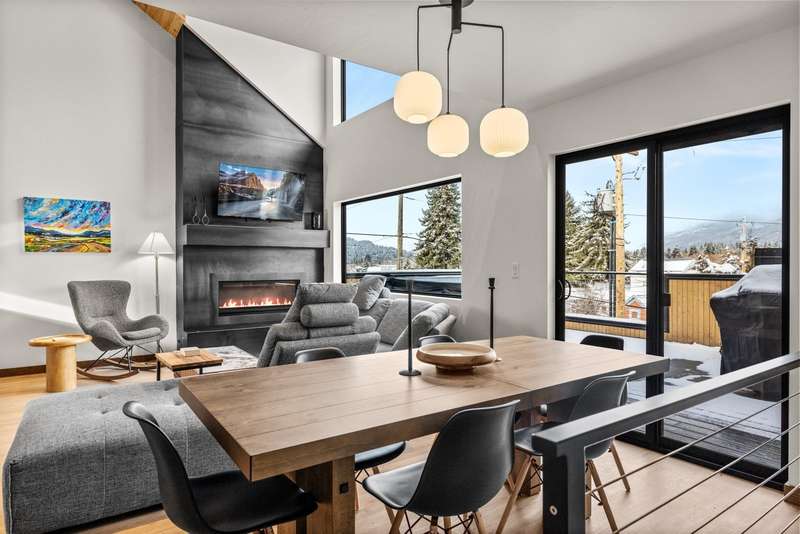 This NEW CONSTRUCTION, furnished, luxury condo is zoned NIGHTLY RENTAL. Featuring four bedrooms, four FULL BATHROOMS and BEAUTIFUL SKI MOUNTAIN VIEWS. The highly sought-after, convenient location is on a quiet street with mature trees and within a few blocks of downtown Whitefish, Snow Bus stop, Whitefish River walk/bike trails, and Whitefish Lake City Beach. This ideal location is walking distance to businesses, shops, restaurants, nightlife, and nature. Also featuring a private garage, including electric vehicle charger and extra storage. An open & bright main living space with spacious 16'10" ceilings has an additional full bathroom, ideal for sleeping large groups. The spacious patio features a hot tub and outdoor grill. The new SunSki Chalets is the ultimate Whitefish lodging experience.
