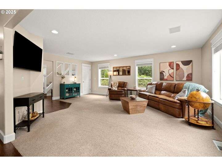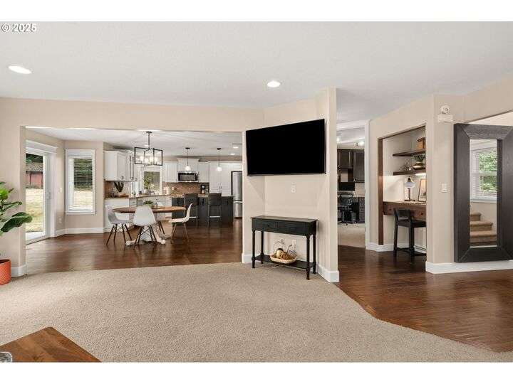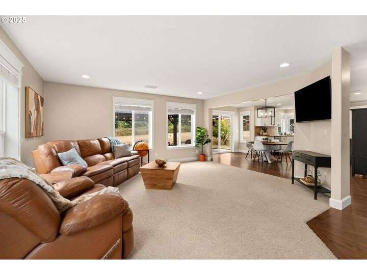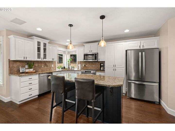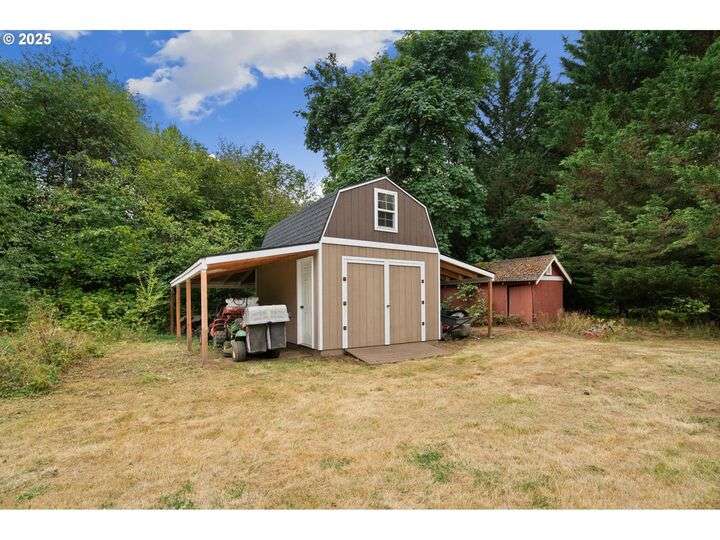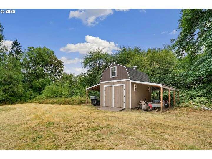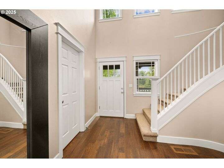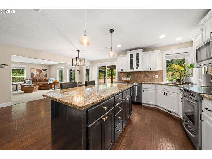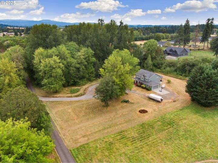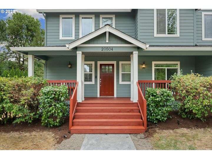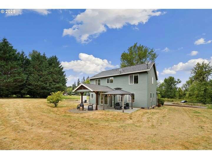 The best of both worlds—peaceful country living and a prime close-in location—await at this freshly painted Craftsman on 5 acres in one of the most convenient Ridgefield settings, just minutes to I-5, I-205, Salmon Creek amenities, and shopping. A wrap-around driveway winds through a grove of apple and pear trees and beneath century-old oaks to a home brimming with charm: hand-scraped walnut hardwoods, a light-filled foyer with railed staircase, a large executive office with custom built-ins, and a kitchen with two-toned shaker cabinetry, granite counters, stainless steel appliances, and a custom island. Upstairs, the soaring-ceiling primary suite is paired with an en-suite, while three additional bedrooms, a large guest bath, and a laundry room with built-in cabinetry provide comfort and function. Recent updates include fresh exterior and porch paint, remodeled baths, upgraded LED lighting, newly built exterior entryway stairs, and the efficiency of well and septic for super-low monthly utilities. Outdoors, enjoy the private covered cedar lined back patio or the iconic front porch, and take advantage of the unique opportunity—per county (buyer to do due diligence)—to build a second residence on the front side of the property, framed by a natural border of the protected wetland. A storage shed with two lean-tos adds practicality, while the property’s location—surrounded by stunning high-end new construction—offers both privacy and prestige. With no HOA to limit your vision, this is a rare Ridgefield gem where beauty, utility, and opportunity meet.