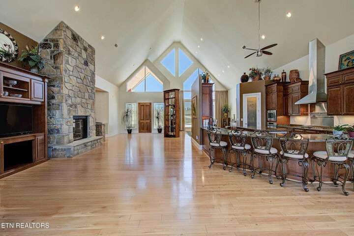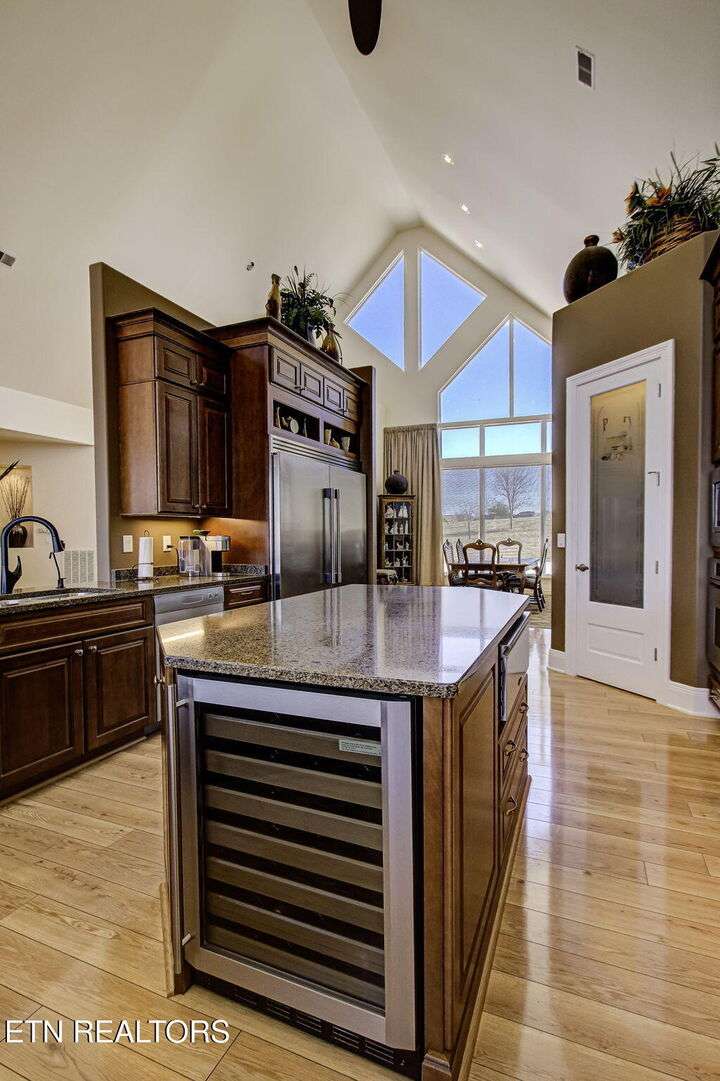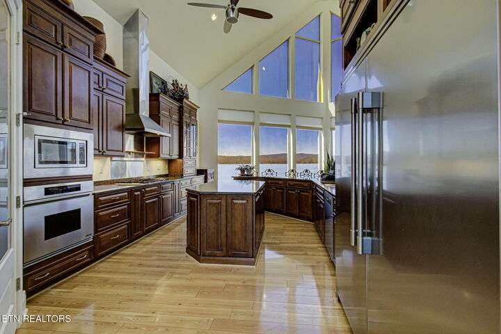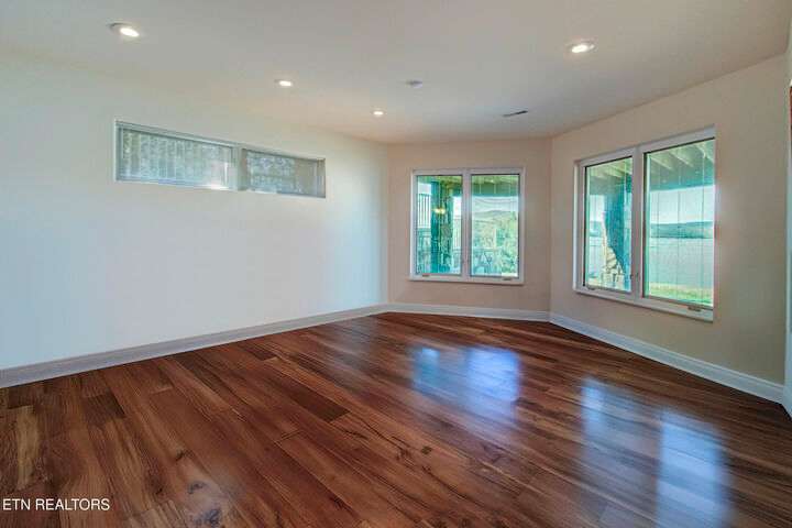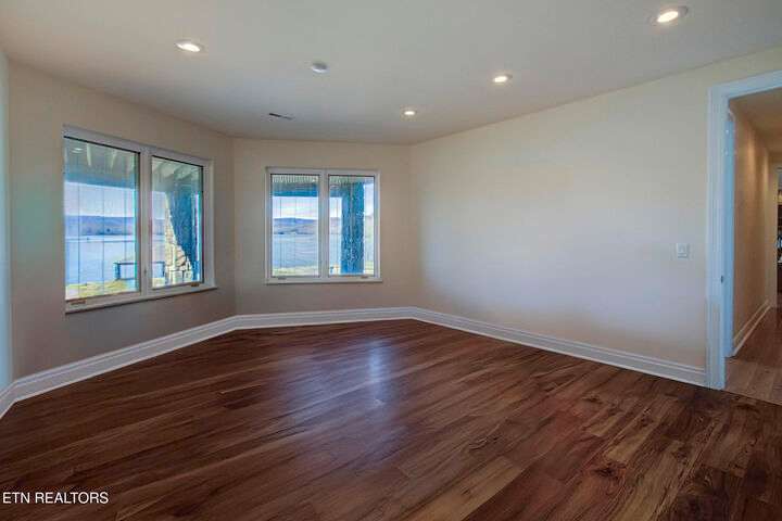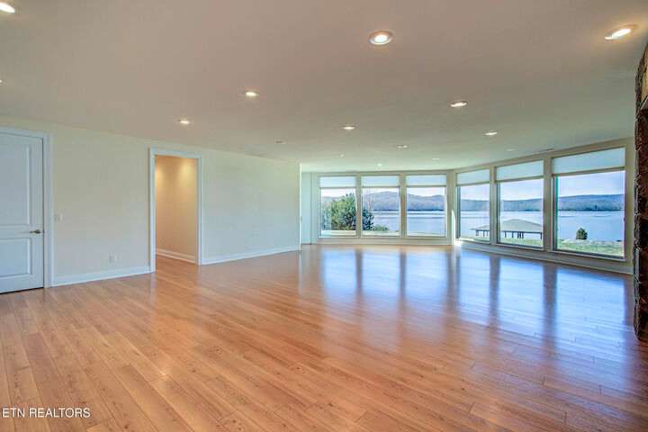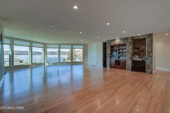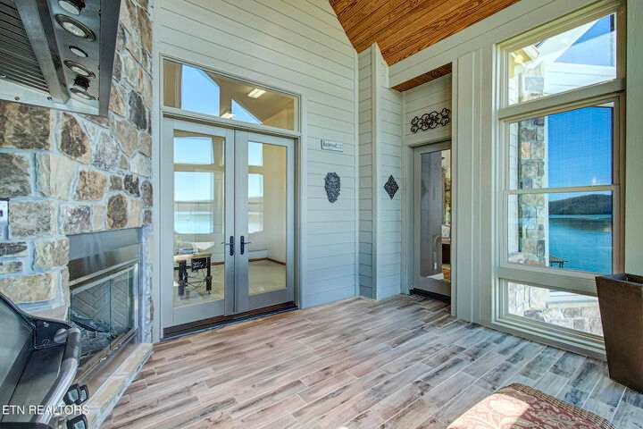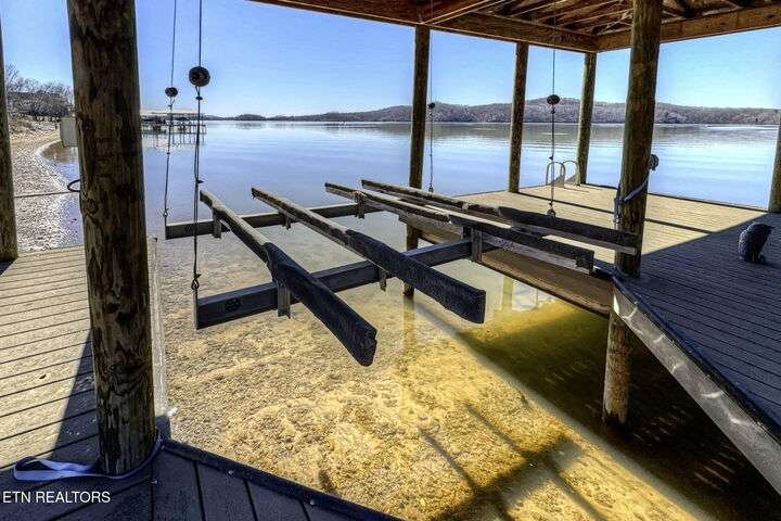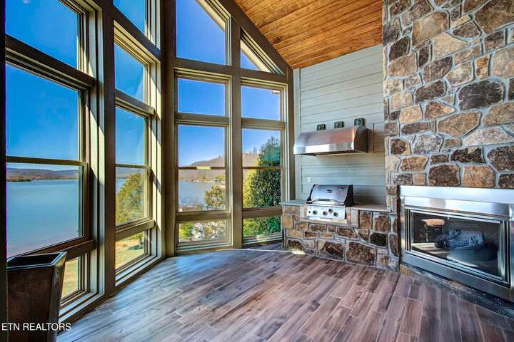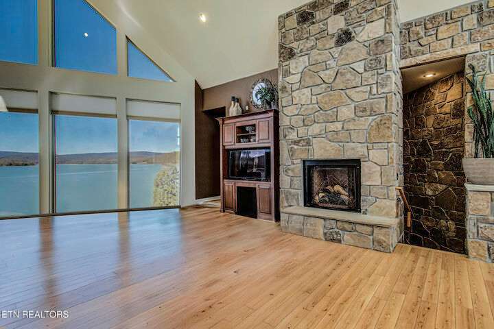 HUGE Price Reduction. Nestled in the prestigious Grande Vista Bay community, this exceptional 142 ft of deep waterfront home offers panoramic views of Watts Bar Lake on the Tennessee river and views of the untouched and protected Thief Neck Island, perfectly positioned to capture stunning sunsets. This estate is sitting on 1.29 acres and the lot next door can be purchased separately. Spanning 6,300 sq. ft., the open-concept layout with many custom design details. With floor to ceiling windows all along the back you have the great room, breakfast area and kitchen all looking out on the lake. The primary suite is an incredible space with private access to a wonderful morning porch, floor to ceiling windows have been designed for lake living, 2 walk-in custom closets offer so much space for all your clothing with double racks, The attached bath is one that dreams are made of with an oversized walk-in seated shower with glass block, or step in the heated jacuzzi tub, dual vanities with a makeup vanity along with heated floors. Soaring Ceilings in the great room area with stone fireplace and built in TV cabinet is a great place to watch your favorite show or your current read while enjoying the view. An attached enclosed sunroom is perfect for overflow with gas fireplace and a gas grill. The kitchen is seamlessly attached to the great room and is a true Chefs Kitchen made for easy entertaining with a Wolf 5 burner gas cook top, warming drawer, full refrigerator and full freezer, wall oven along with a microwave. You have plenty of storage. A large island allows space for food preparation also has a walk-in pantry. Open a bottle of champagne from your wine fridge while you wait for dinner. The large breakfast counter seats 6 and there is room to put a table if you would rather sit and look out at the lake. Formal dining area also has floor to ceiling windows what a great place to dine with family and friends. Home office is bright with the large window and 2 built in bookcases with French doors for privacy. Another bedroom is on this level with bath and access to the enclosed porch, it was converted into a pottery studio and is easily converted back. Hall half bath is great for company. Laundry room with quartz counter tops for your sewing or craft projects and a mud room complete this level. Upper level is a full bonus, or another office or use your imagination to convert it into a space just for you with a full walk-in attic for great storage. Make your way down the stone staircase to the huge Family/recreation room with built ins and full bank of windows to watch the activities on the lake and you can make your way outside to the stone patio a large firepit area or when the water is calling, mere steps away, this covered dock with lifts for boat and wave runners is where you can offer a sunset water cruise after a long day of play. Back inside are 3 large bedrooms, a Jack and Jill bath along with a hall bath makes this home so easy to bring everyone home for the holidays. Another laundry on this level and a very large unfinished storage area with outside access and all your equipment and more storage. With the main level attached 3 car garage with finished flooring and outside access to your fenced garden area to create and grow what you love. Your luxury escape awaits, close to everything within 7 miles but is away from it all in this active community where you can even boat to the Gulf There is a $160 GVBPOA Account Set Up Fee to Buyer at closing.