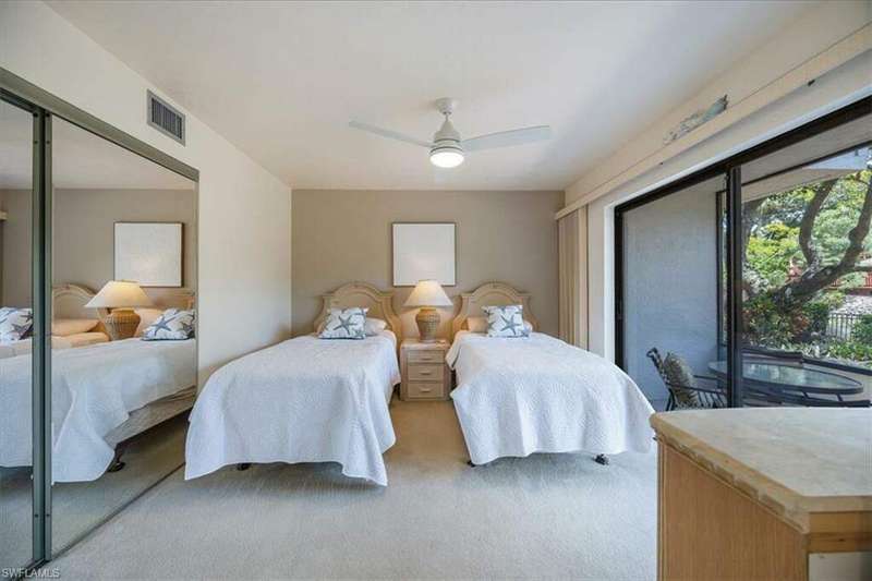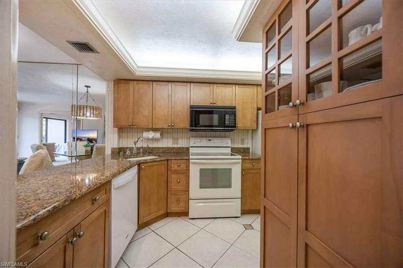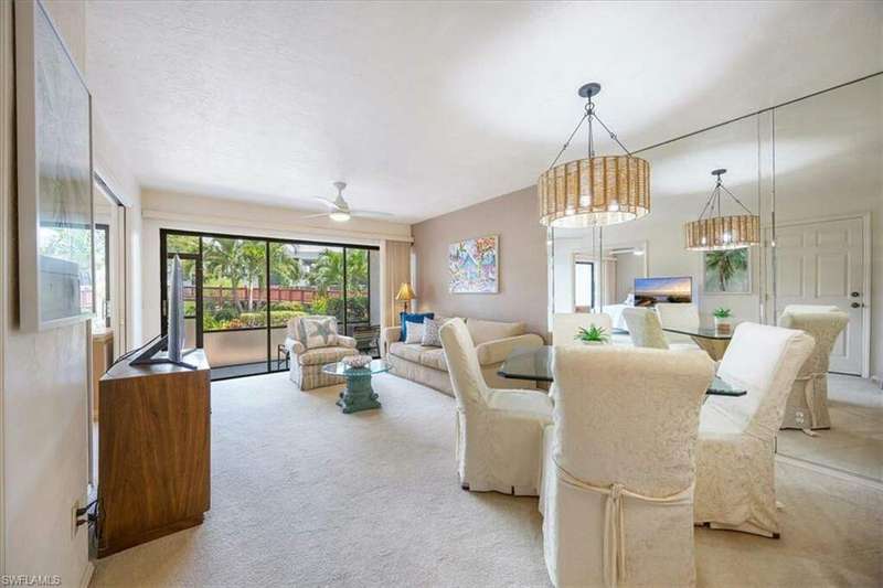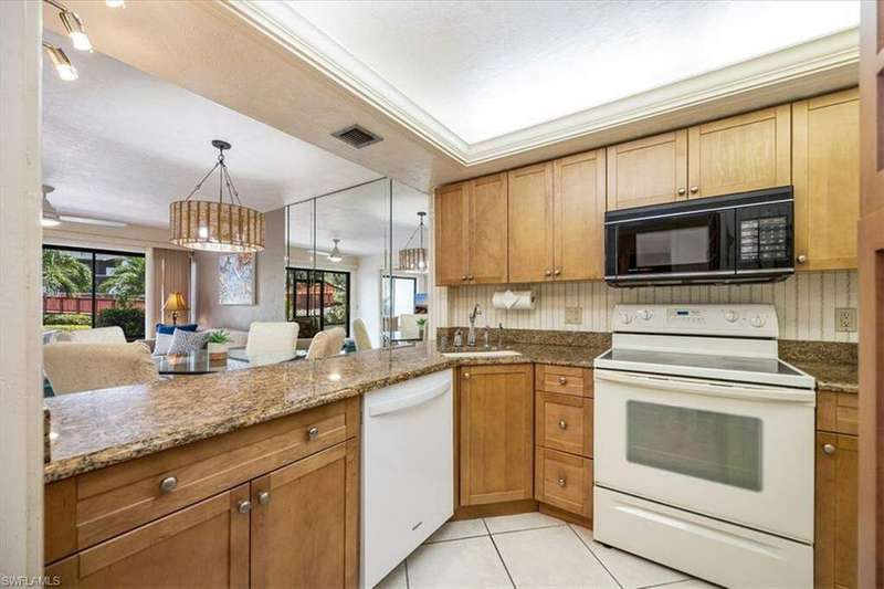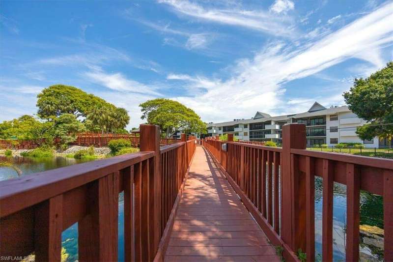 Welcome to 600 Neapolitan Way at Park Shore Resort Club! This amazing ground-floor condo unit has 2 beds, 2 full baths, and lives large with high ceilings and from your private lanai overlooks gardens & pond with lovely bridges that takes you to a heated pool & Hogfish Harry's restaurant. It is ready to move into or rent out at your convenience. This property and is perfect for year-round or seasonal use. You can rent out 365 days and minimum of one day. Enjoy the lifestyle of Park Shore Resort with 6 pickle ball courts, two tennis courts, fitness room, and restaurant on premises. Plus steps away from high-class dining and shopping at Waterside Shops and Venetian Village, plus close access to both Downtown and North Naples! Option to join the Park Shore Association for private access to Park Shore Beach. A perfect spot for the full time Neapolitan or investor!