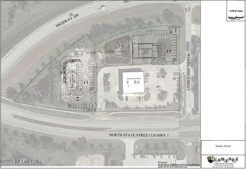 Five parcel assemblage at the junction of N State St (US-1), SR 100 W and E Woodland St. Includes parcels 10-12-30-0850-01430-0000, 10-12-30-0850-01430-0010, 10-12-30-0850-01420-0010, 10-12-30-0850-01420-0020 & 10-12-30-0850-01480-0010.Total of 3.37 acres pad-ready for development with utilities at the site. Conceptual plan for two buildings.300+ feet of frontage on US-1, 700+ feet of frontage on SR 100 W, 100+ feet of frontage on E Woodland St.Directly adjacent to Advanced Auto Parts and across from O'Reilly Auto Parts.Zoned City of Bunnell B-1 (Business) which allows retail, service, restaurant, automotive uses, etc.FLDOT AADT 19,600 on US-1 and 10,100 on SR 100W.
