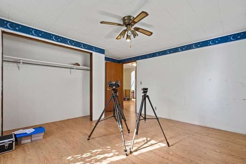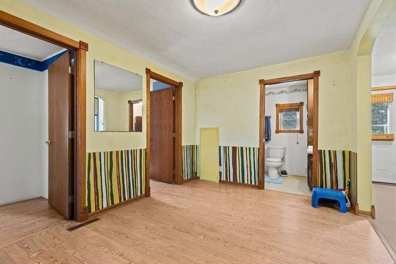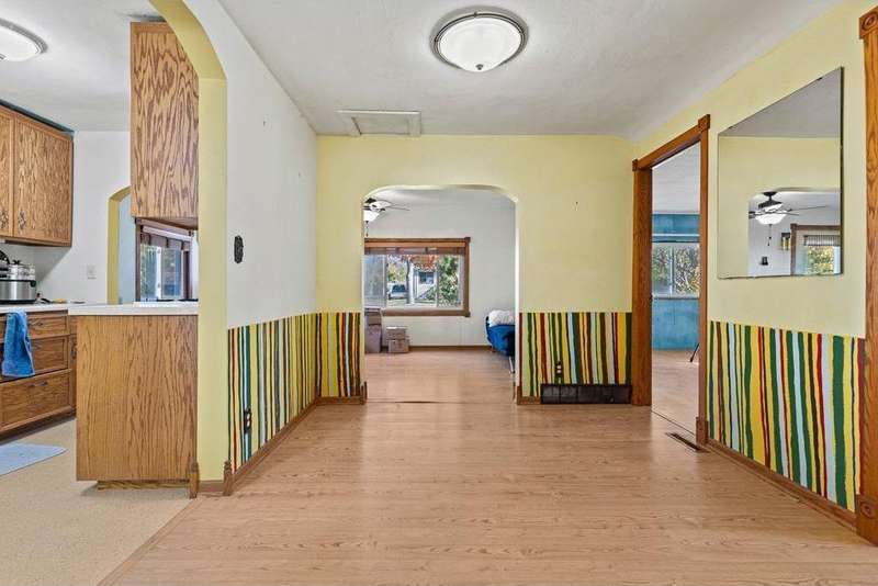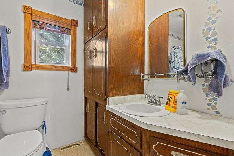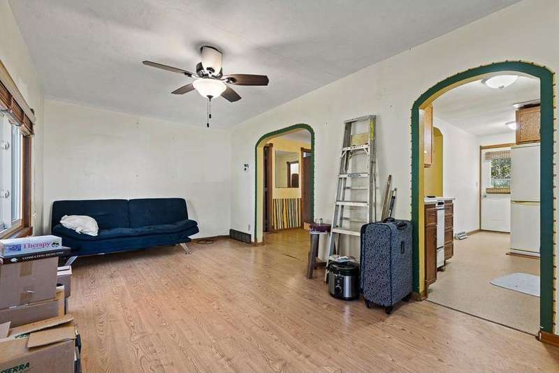 ? So much potential on the edge of town! This charming 2-bedroom, 1-bath single-level home offers the perfect opportunity for someone ready to add their personal touch. Inside, you’ll find a practical layout and a full basement with plenty of space to finish for additional living or recreation. Enjoy peaceful mornings or summer evenings on the back deck overlooking a spacious backyard. With a detached garage and great location near the edge of town, this property is ideal for a first-time buyer, investor, or anyone looking for a rewarding renovation project.