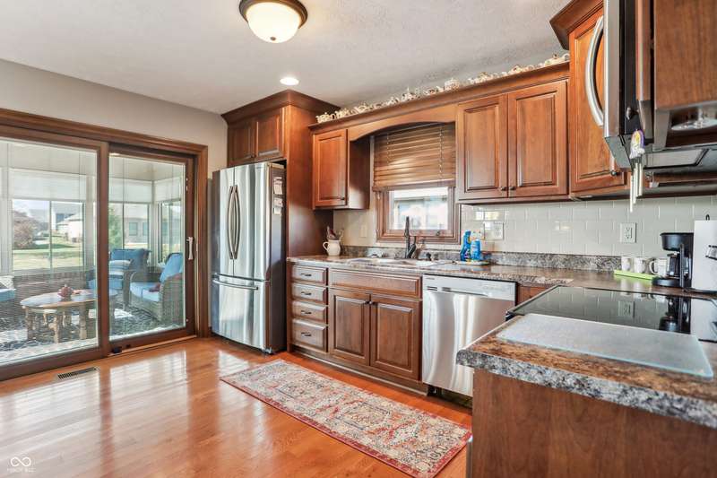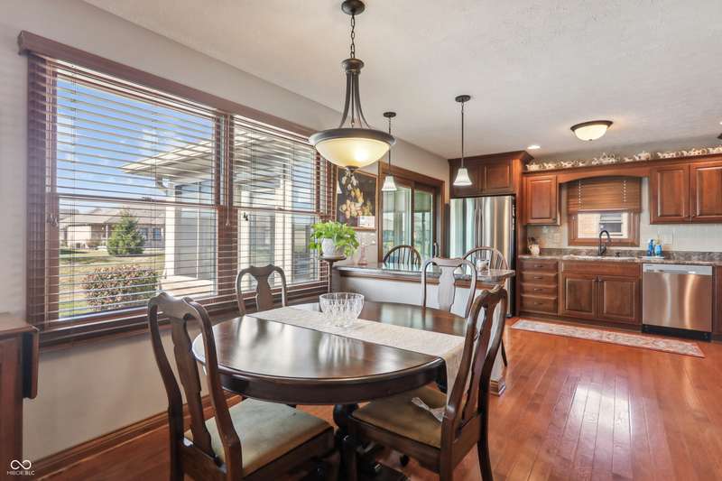 Immaculate well maintained move in ready free standing all brick ranch condo. Low maintenance wide doors and hallway. Covered porch and relaxing Sun Room. Beautiful Hardwood floors throughout. Huge great Room has cathedral ceilings and a Gas Fireplace. Large open Kitchen boost plenty of very nice cabinets, stainless steel appliances, solid surface counter top, pantry, and breakfast bar. Option a Formal Dining Room or Breakfast Room your choice. 3 bedrooms or 2 bedrooms and a nice size office. Wow check out the Main Bath with a New Kohler Jacuzzi Walk-in Tub/Shower. Personal Bedroom has large bath W/separate shower and walk-in closet. Impeccable 2-Car Garage. Laundry Room washer and dryer stay. Do Not pass this one up.
