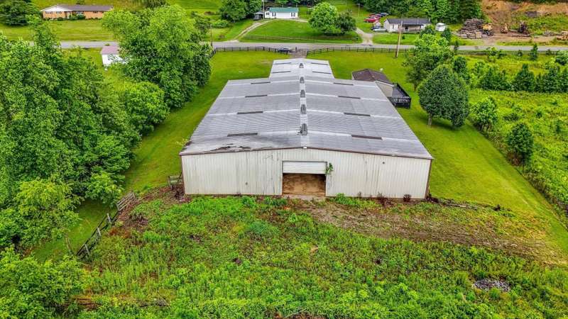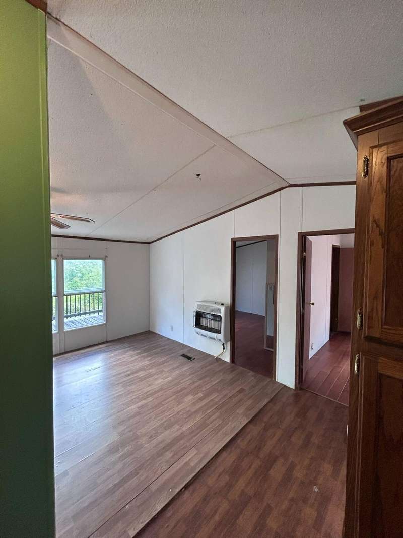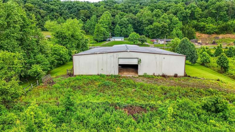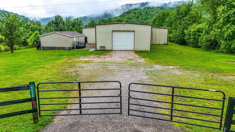 Investors take notice! Acreage, horse arena, garage, and a home, this place has it all! Beginning with the acreage, there is 60 acres more or less. There is a creek along the back side of the property, as well as, a pond. In addition, a 2001 double wide with 3 bed and two full bath. A beautiful deck that wraps around the home to view this beautiful property. Home has a new water heater along with free gas. This portion of the property is gated. Beginning in the front, there is a 40x60 Garage that has new concrete 2024. There is a catwalk, that will take you to a one bed one bath on the second story of the garage, this space could also be used as an office. Behind this garage is the arena, dirt floor measuring at 90x120. This property has free gas and gas royalties that sell with the property.