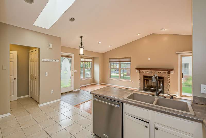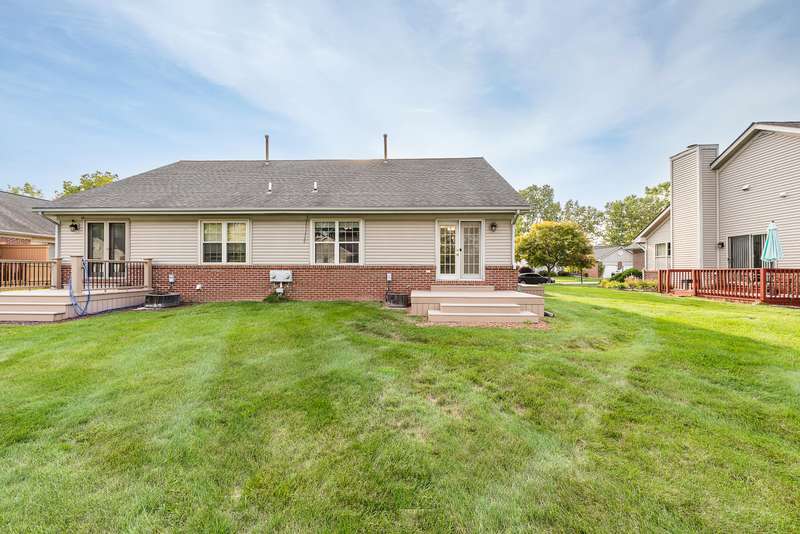 Welcome to Georgetown Condominiums in Ypsilanti Township. This charming community consists of 74 duplex-style ranch homes, thoughtfully designed to combine privacy, comfort, and convenience. Nestled near the intersection of Textile and Tuttle Hill Road, residents enjoy quiet wooded surroundings while still being just minutes from the University of Michigan, Eastern Michigan University, Depot Town, and downtown Ypsilanti. With easy access to Ann Arbor and top local schools, Georgetown appeals to both professionals and families seeking low-maintenance living close to urban amenities. This two-bedroom home offers a spacious and inviting floor plan. The family room features soaring vaulted ceilings, a wood-burning fireplace with tile surround and wood mantel, and sliding doors that open to an updated deck--perfect for entertaining or relaxing. The kitchen is equipped with white cabinetry, stainless steel appliances, and tile flooring, opening seamlessly into the living area. Both bedrooms share a full bathroom with a jetted tub, white cabinets, and a single-sink vanity. One bedroom is enhanced with French doors leading to a private deck space. The fully finished lower level provides exceptional additional living space, including a large entertainment or recreation room, a second full bathroom, and a convenient laundry area with washer and dryer.