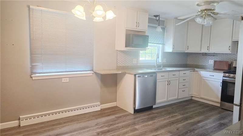 Beautifully and well-maintained ranch home in Amherst for rent. The charming exterior features lovely year-round landscaping. Inside, enjoy a bright and spacious family room with hardwood floors. The modern eat-in kitchen includes stylish cabinets, a chic backsplash, and stainless steel appliances. Originally a three-bedroom home, two bedrooms were combined to create a large primary suite with ample closet space. Outdoor living includes a paver patio with a retractable awning. The property also features a large two-car garage, extra parking for an RV or boat, a spacious yard, and a storage shed. rental insurance, credit and background check are required.