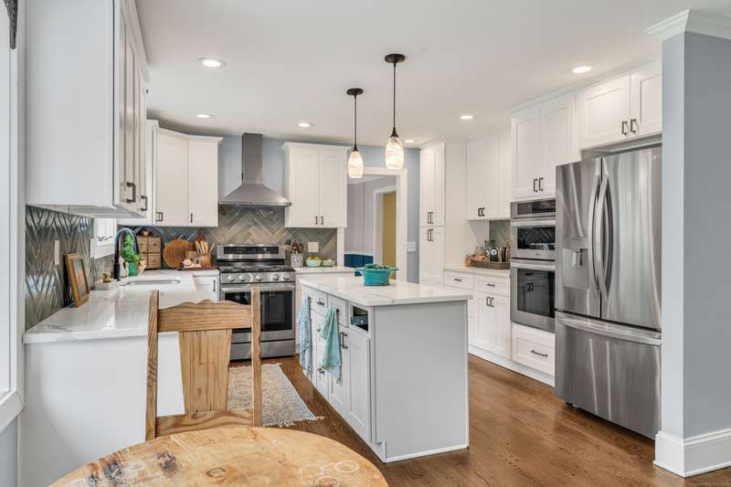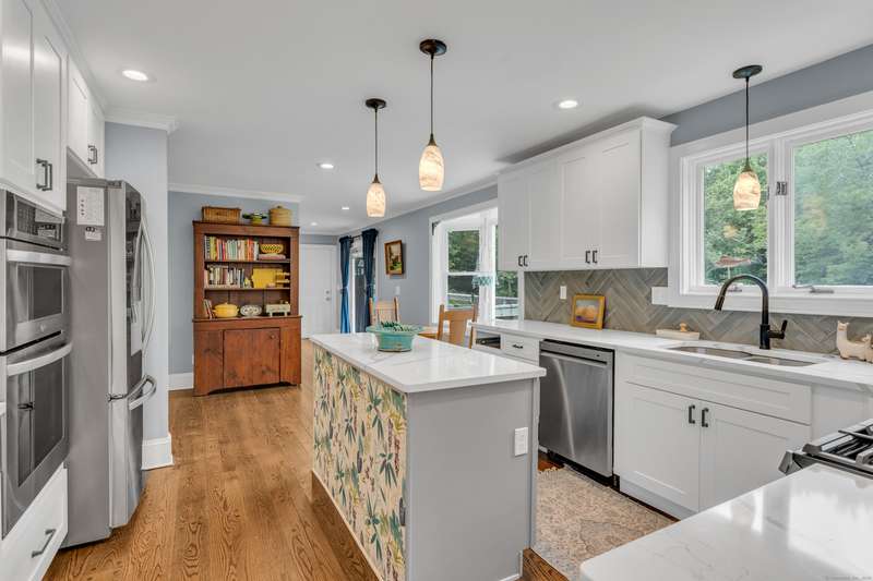 Beautiful, renovated six bedroom four and a half bathroom home close to everything Guilford has to offer. As you enter you will find the eat in kitchen with stainless appliances, granite countertops, and new hardwood floors. Off the kitchen is a spacious dining room for entertaining and living room for relaxing. Adding to the allure of the main floor is a generous sized family room with a fireplace and powder room with updated fixtures. The second floor has an amazing master bedroom suite with a free standing tub and two additional large bedrooms each with their own full tiled bathroom. The third level is additional finished space with a bedroom, full bathroom, new flooring, and closets. The home also features an in-law space with a separate entrance that has a full bedroom, bathroom, and kitchen. If more is sought, the lower level of the home is also finished and is great for a media room, playroom, or whichever you desire. Further features include a four car garage, on demand hot wat