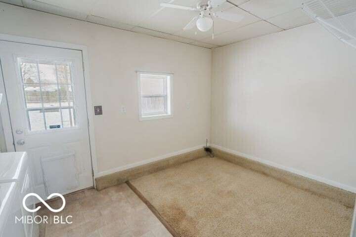Cozy bungalow features 3 bedrooms and 1 full bath. Open living dining room and kitchen that includes electric stove microwave and refrigerator. Mechanical Room - Laundry Room includes washer and dryer. Replacement windows. New septic 2024; New AC motor 2025; New Water Heater 2025. Really nice metal pole barn garage (approx 28x26) with gravel drive; automatic door opener; cement floors; wood stove for heat and a cozy covered porch. Totally fenced in back yard.