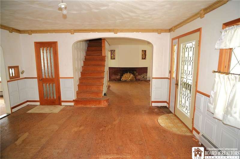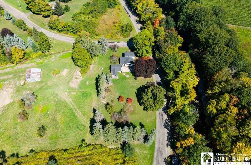 This diamond in the rough awaits your finishing touches. This 4 bedroom/two bath home sits on two parcels totalling 10+ acres just outside Forestville. The exterior of the house is in good shape with cedar siding and newer roof. The interior needs a kitchen, flooring, paint and other finish work. There's a full basement with a functioning kitchen, full bath and a bedroom. The first floor has a bedroom and full bath, dining room and a living room with a gas fireplace. The second floor has the other two bedrooms. The aluminum sided two car garage features an attached three season room with a wood burning fireplace and sliders out to the spacious yard. Most of the land is open fields with some woods. Would be perfect for horses or beef cattle. There are three acres of grapes that are leased year to year for $300. A spring on the property has been supplying water to the house for 75+ years. There's also a well that has not been used for years that could be put back in service if necessary. The owners will not warrant the water and septic. All county tests will be the responsibility of the buyer. This is a nice property. Come take a look.