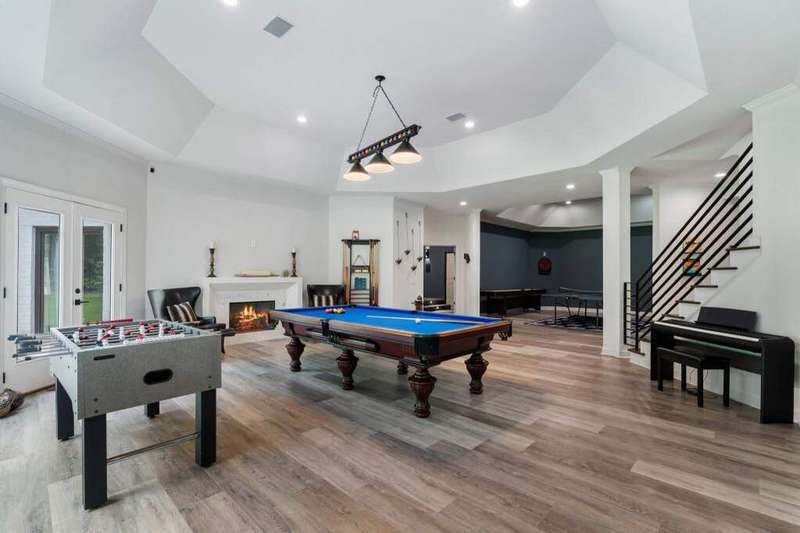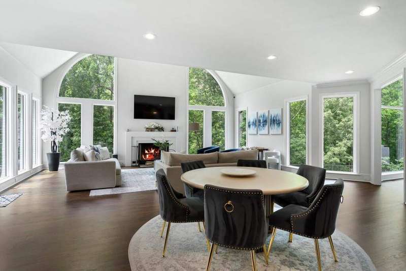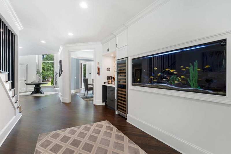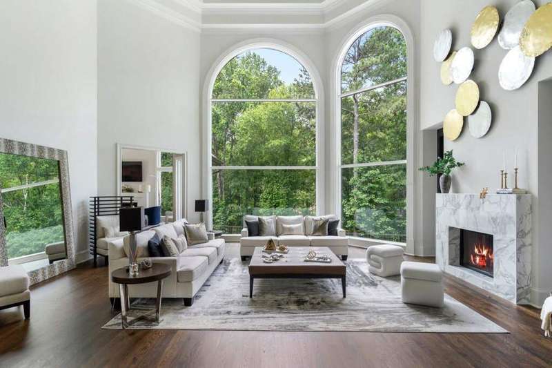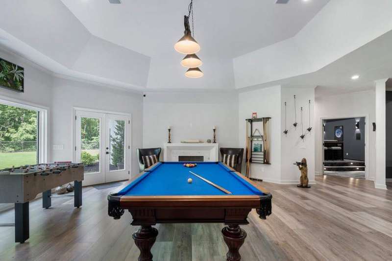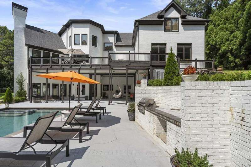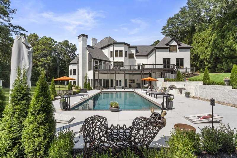 As you follow the long, private drive, you're immediately captivated by the grandeur of this Montclair Estate. Nestled on an expansive, beautifully landscaped property, this exquisite home commands attention from the moment you arrive. Upon entering, you're greeted by soaring ceilings and a striking glass balcony above, offering an immediate sense of openness and sophistication. To the right of the grand foyer, a refined office filled with natural light provides an inspiring space for work. To the left, the elegant dining room features a beautiful bay window that fills the space in soft light-perfect for hosting formal dinners. Beyond the dining room, a meticulously designed built-in aquarium captures attention, flanked by a modern wine cooler and wet bar. The formal living room is the focal point, featuring soaring coffered ceilings and a magnificent stone fireplace that anchors the space. The large panoramic windows overlooking the deck invite an abundance of natural light, creating an inviting ambiance throughout the main level. This sophisticated layout flows seamlessly into the heart of the home: a gourmet kitchen. At its center, a sprawling marble island offers ample seating for casual meals or entertaining. A herringbone-patterned backsplash adds a refined touch, while a large farmhouse sink, warming drawer, and high-end six-burner gas stove cater to all your cooking needs. Double ovens and a strategically placed microwave ensure perfect meal preparation. The kitchen transitions gracefully into a spacious open-concept living area, where a charming breakfast nook sits adjacent to a cozy sitting area centered around a beautifully designed fireplace. This space effortlessly accommodates a variety of social occasions. An oversized pantry with custom-built shelving offers practical storage solutions, while a generously sized laundry room across the hall features additional built-ins and a convenient sink. Located on the main floor, the tranquil primary suite awaits. This luxurious retreat features a cozy fireplace and oversized windows that blend comfort with sophistication. A dedicated sitting area, complete with a morning kitchen, provides a peaceful corner for relaxation. The spa-inspired primary bath features a lavish soaking tub and an oversized walk-in shower for a rejuvenating experience. A double vanity with custom cabinetry and two expansive walk-in closets-complete with a central island-offer exceptional space and organization. Upstairs, four generously sized guest bedrooms, each with a luxurious full bath featuring modern fixtures and ample storage. At the end of the hallway, a bright and versatile bonus room serves as a playroom or additional office space. A conveniently located laundry chute adds a thoughtful touch, connecting directly to the main laundry room below. The terrace level features additional living spaces, from a lounge to a game room; this is an entertainer's paradise. You'll find a custom home theatre with elevated seating and cinematic lighting, a spacious home gym, a massage room and more. This level also features a fully equipped second kitchen and bar area, complete with stovetops, a mini fridge, microwave, ice maker, sink, and built-in shelving-perfect for entertaining. Two additional bedrooms share a well-appointed Jack-and-Jill bathroom, ideal for guests. The thoughtfully landscaped grounds create a peaceful and picturesque setting. A charming porch and patio space invite you to relax. At the heart of this outdoor oasis is a stunning resort-style pool with a luxurious hot tub, as well as a grill and prep area. The flat, spacious yard provides ample room. Located in prestigious Johns Creek, adjacent to the Chattahoochee National Forest and River, this estate blends architectural grandeur with everyday functionality. It offers a lifestyle defined by elegance, comfort, and connection-luxury living at its finest.