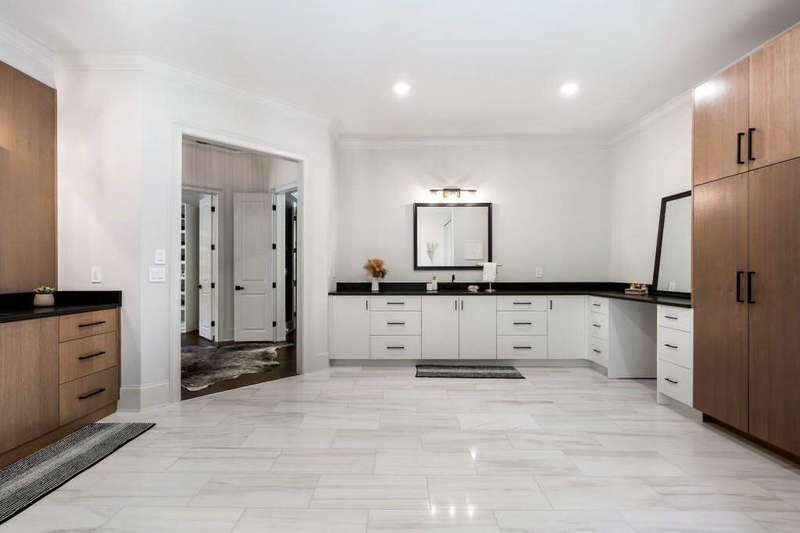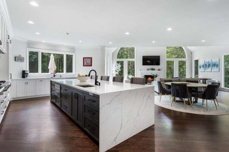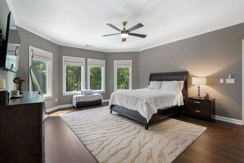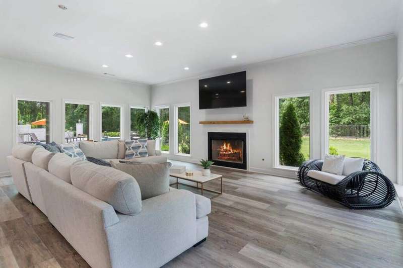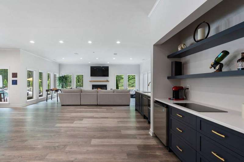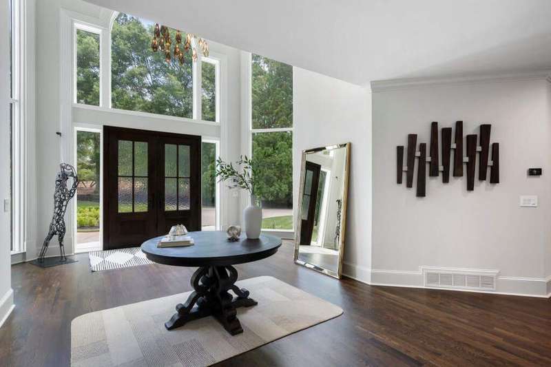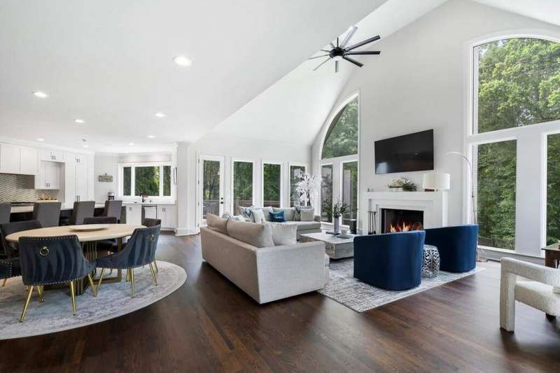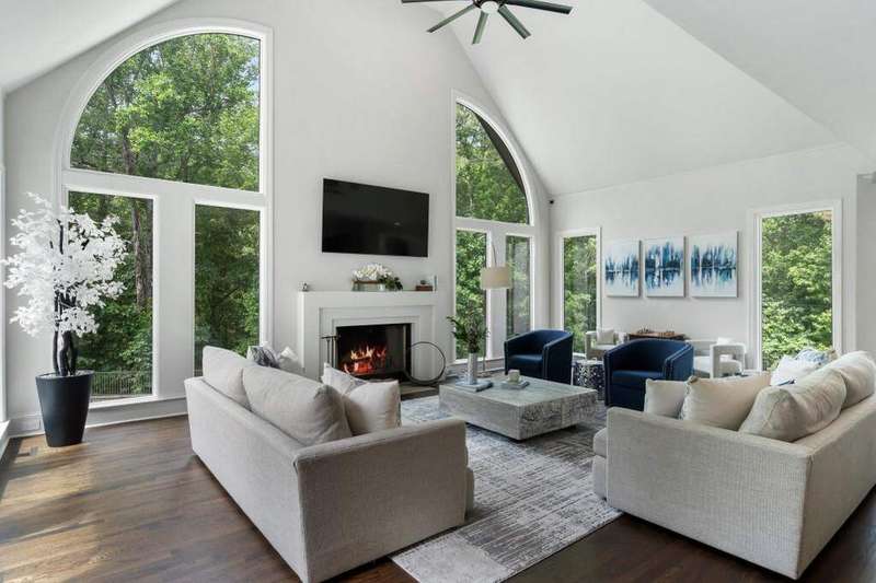 As you follow the long, private drive, you're immediately captivated by the grandeur of this Montclair Estate. Nestled on an expansive, beautifully landscaped property, this exquisite home commands attention from the moment you arrive. Upon entering, you're greeted by soaring ceilings and a striking glass balcony above, offering an immediate sense of openness and sophistication. To the right of the grand foyer, a refined office filled with natural light provides an inspiring space for work. To the left, the elegant dining room features a beautiful bay window that fills the space in soft light-perfect for hosting formal dinners. Beyond the dining room, a meticulously designed built-in aquarium captures attention, flanked by a modern wine cooler and wet bar. The formal living room is the focal point, featuring soaring coffered ceilings and a magnificent stone fireplace that anchors the space. The large panoramic windows overlooking the deck invite an abundance of natural light, creating an inviting ambiance throughout the main level. This sophisticated layout flows seamlessly into the heart of the home: a gourmet kitchen. At its center, a sprawling marble island offers ample seating for casual meals or entertaining. A herringbone-patterned backsplash adds a refined touch, while a large farmhouse sink, warming drawer, and high-end six-burner gas stove cater to all your cooking needs. Double ovens and a strategically placed microwave ensure perfect meal preparation. The kitchen transitions gracefully into a spacious open-concept living area, where a charming breakfast nook sits adjacent to a cozy sitting area centered around a beautifully designed fireplace. This space effortlessly accommodates a variety of social occasions. An oversized pantry with custom-built shelving offers practical storage solutions, while a generously sized laundry room across the hall features additional built-ins and a convenient sink. Located on the main floor, the tranquil primary suite awaits. This luxurious retreat features a cozy fireplace and oversized windows that blend comfort with sophistication. A dedicated sitting area, complete with a morning kitchen, provides a peaceful corner for relaxation. The spa-inspired primary bath features a lavish soaking tub and an oversized walk-in shower for a rejuvenating experience. A double vanity with custom cabinetry and two expansive walk-in closets-complete with a central island-offer exceptional space and organization. Upstairs, four generously sized guest bedrooms, each with a luxurious full bath featuring modern fixtures and ample storage. At the end of the hallway, a bright and versatile bonus room serves as a playroom or additional office space. A conveniently located laundry chute adds a thoughtful touch, connecting directly to the main laundry room below. The terrace level features additional living spaces, from a lounge to a game room; this is an entertainer's paradise. You'll find a custom home theatre with elevated seating and cinematic lighting, a spacious home gym, a massage room and more. This level also features a fully equipped second kitchen and bar area, complete with stovetops, a mini fridge, microwave, ice maker, sink, and built-in shelving-perfect for entertaining. Two additional bedrooms share a well-appointed Jack-and-Jill bathroom, ideal for guests. The thoughtfully landscaped grounds create a peaceful and picturesque setting. A charming porch and patio space invite you to relax. At the heart of this outdoor oasis is a stunning resort-style pool with a luxurious hot tub, as well as a grill and prep area. The flat, spacious yard provides ample room. Located in prestigious Johns Creek, adjacent to the Chattahoochee National Forest and River, this estate blends architectural grandeur with everyday functionality. It offers a lifestyle defined by elegance, comfort, and connection-luxury living at its finest.