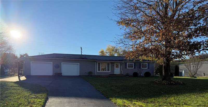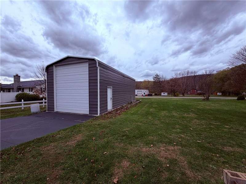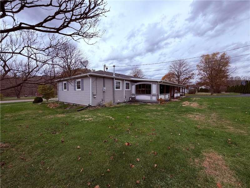 This ranch style home offers 3 bedrooms and 1 full baths on the main floor, with a partially finished basement that includes an additional lower-level full bath adjoining a spacious family room. The main level features approximately 1,134 sq ft of living space with hot-water baseboard heat and central A/C for year-round comfort. Natural hardwood flooring is under the existing carpet on the main level, offering potential for beautiful refinished floors. Enjoy an attached 2-car garage w/ workshop potential, plus a back driveway for additional parking or easy access to the rear yard. A covered back patio provides a great spot to relax or entertain. The property sits on 1.15 acres, has an 18 ? 40 detached garage (16' high with a 13'6? overhead door and concrete floor) ideal for storage or hobby use, and a 24 ? 14 storage shed. Conveniently located with quick access to Route 287, US-15, and area amenities.