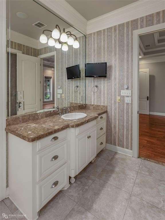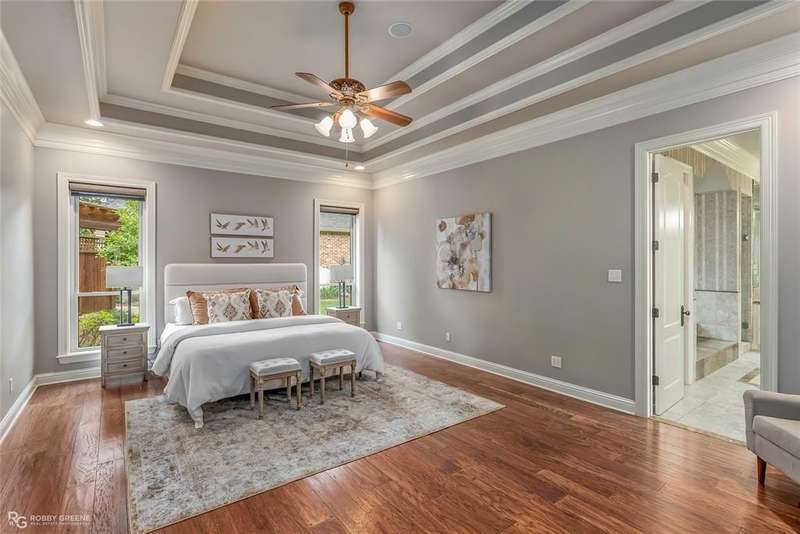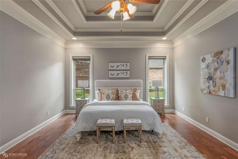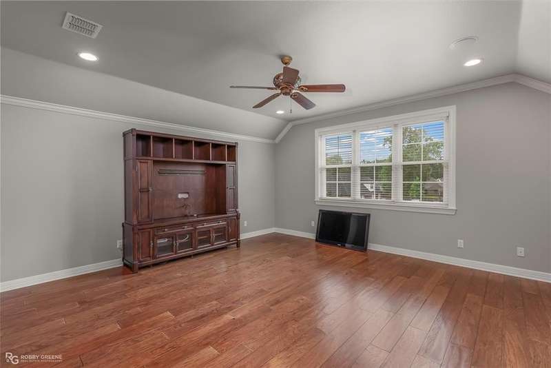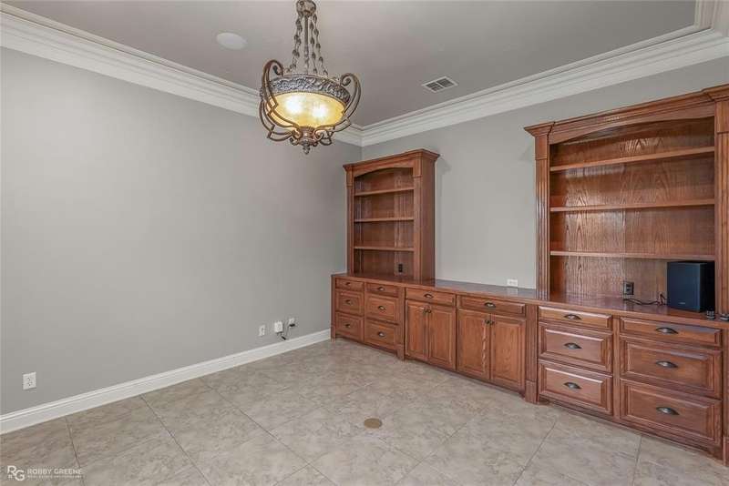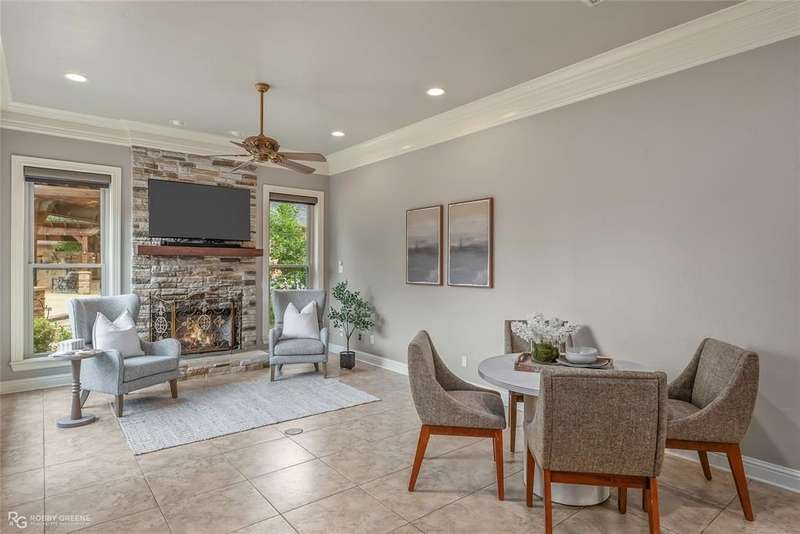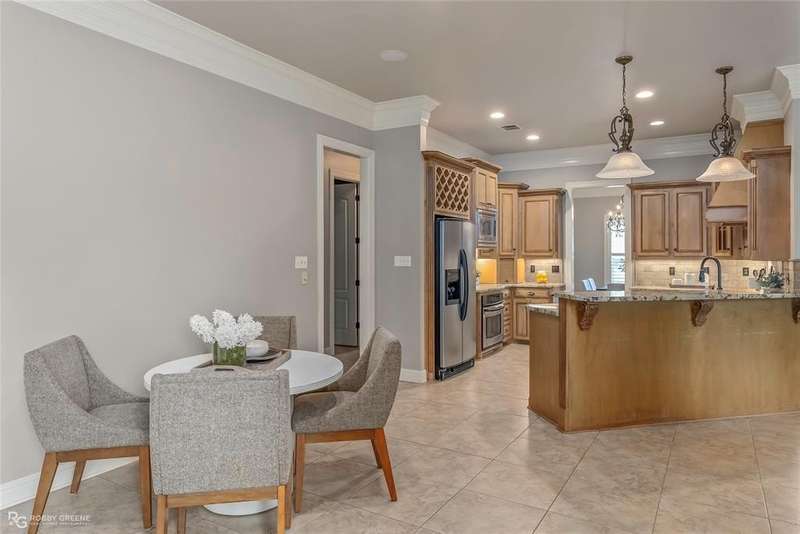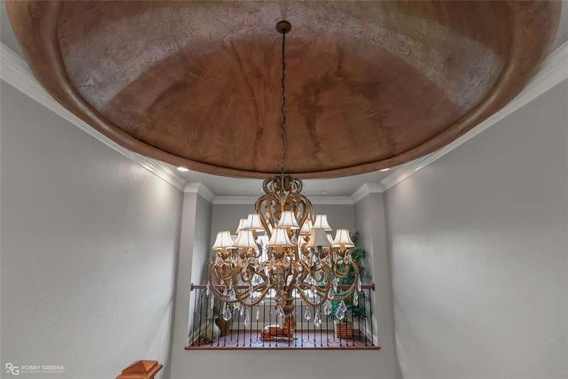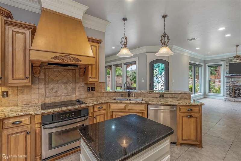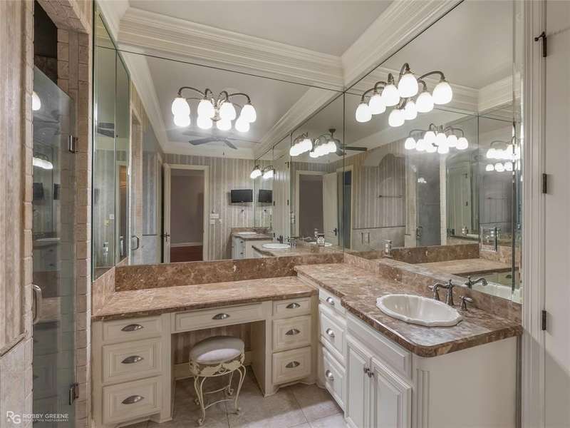This stunning residence offers a sprawling 4,871 square feet of refined living space with 5 bedrooms and 3.5 baths, perfectly blending timeless elegance with modern amenities. From the moment you arrive, the curb appeal captivates with stately brickwork, manicured landscaping, and a circular drive that sets the tone for the luxury within. Step through the grand double doors into a light-filled interior with soaring ceilings, ornate crown molding, and elegant tile and hardwood flooring. Two generous living areas provide flexibility for formal entertaining and relaxed everyday comfort, each featuring beautiful fireplaces, custom built-ins, and views of the lush backyard oasis. The chef’s kitchen is outfitted with granite countertops, custom wood cabinetry, stainless steel appliances, a double oven, built-in microwave, and a spacious island with bar seating all bathed in warm under-cabinet lighting. Adjacent are two formal dining spaces. The expansive primary suite is a private sanctuary featuring trey ceilings, large windows, and backyard access. The en-suite bath offers spa-like serenity with a deep jetted tub, walk-in shower, dual vanities with marble countertops, and a dedicated vanity space—all surrounded by luxurious tile and wall-to-wall mirrors for maximum grandeur. This is the master closet of your DREAMS, so much space! Upstairs, you’ll find a dedicated home theater with tiered recliner seating, wall paneling, and a projection system—perfect for movie nights or game-day viewing. Outside, the backyard transforms into a resort-style retreat. Take a dip in the sparkling inground pool or lounge poolside under the covered patio. The custom outdoor kitchen under the timber-framed pergola features a built-in stone oven, grill area, seating wall, and prep space for unforgettable cookouts. Brand-new pool water heater, a separate pool house with a new HVAC unit, and a new privacy fence. Total of 4 garage spaces with pristine epoxy flooring. Don't miss this beauty!