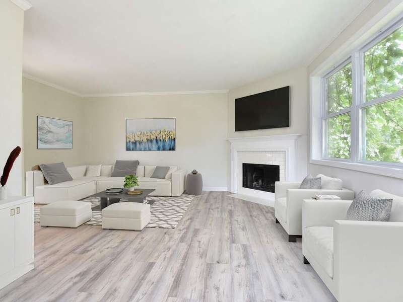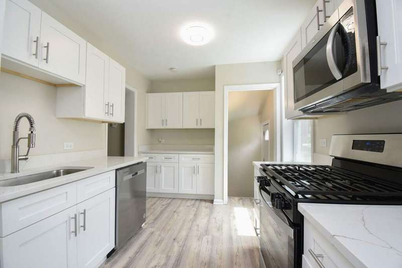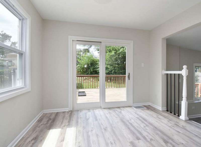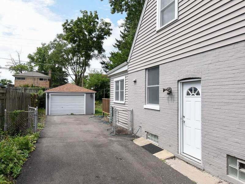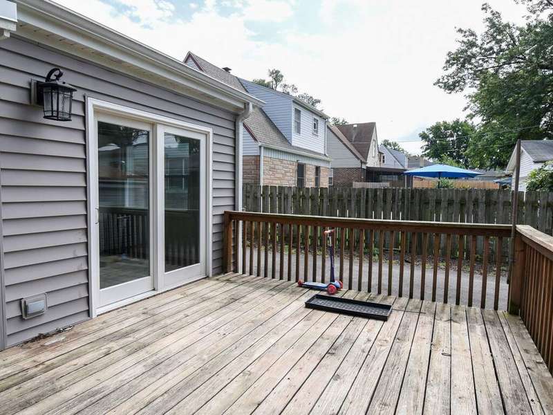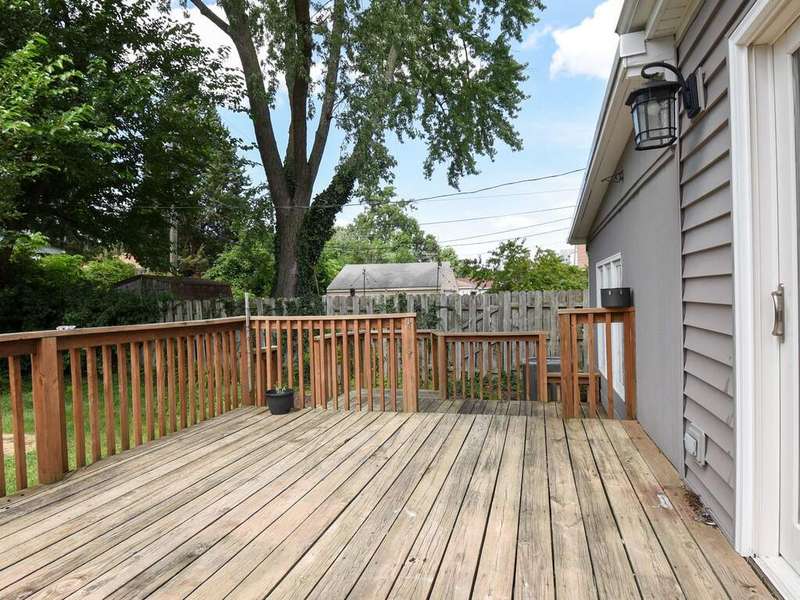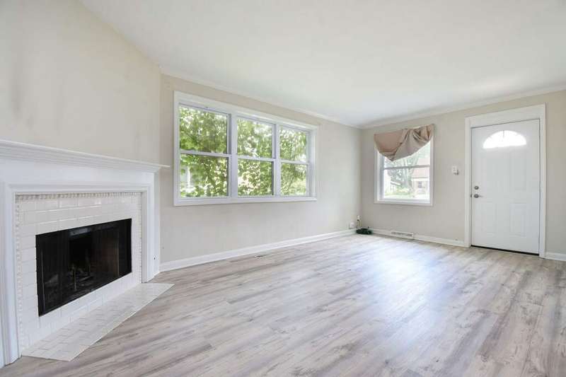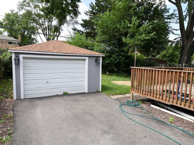 This charming painted brick home was thoughtfully renovated in 2023, featuring a cozy front porch and a sunlit living room with large windows and a wood-burning fireplace. The modern kitchen includes white shaker cabinets, quartz countertops, stainless steel appliances, and a designated coffee bar. The main floor is perfect for entertaining, featuring a centrally located half bath and a spacious family room that opens to a large, two-level walk-out deck. The unfinished basement includes a PermaSeal waterproofing system with a lifetime warranty. The exterior features a newly sided 1.5 car detached garage and paved driveway. Conveniently located near parks, schools, Oakbrook Mall, and major expressways, this 2023 renovation blends charm with modern comfort.