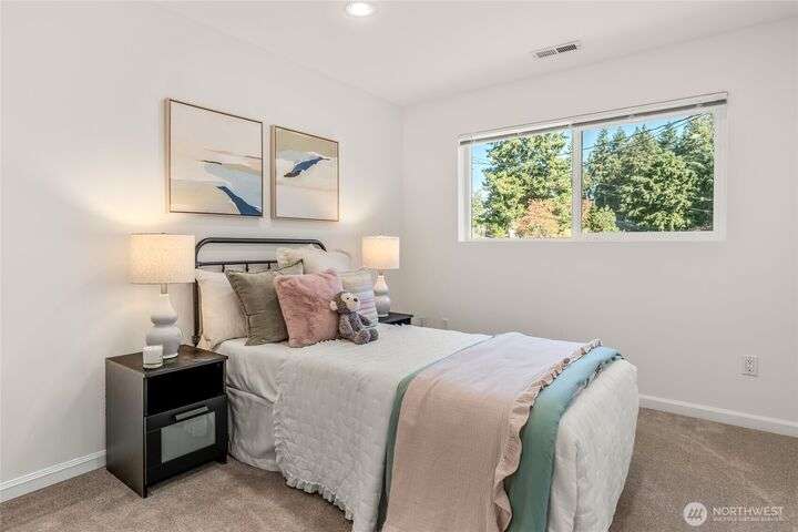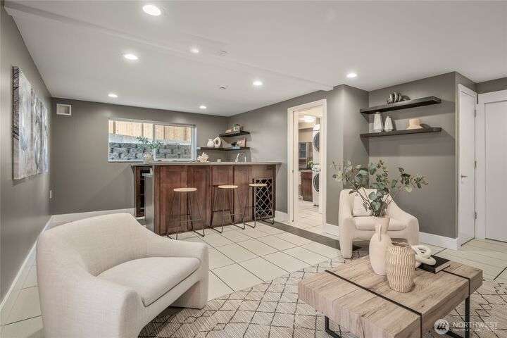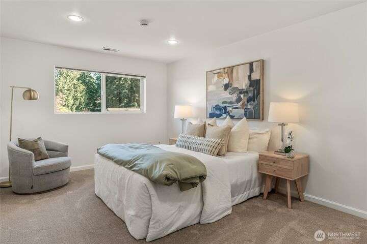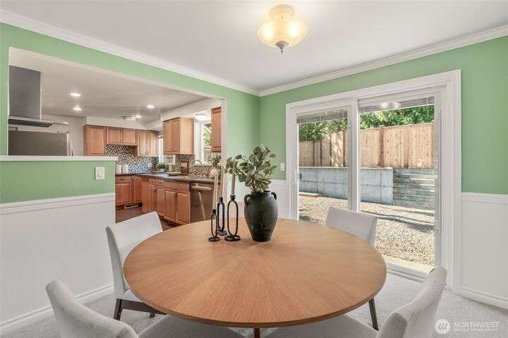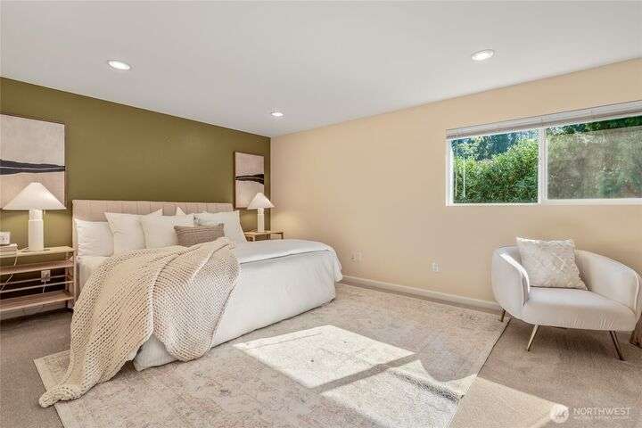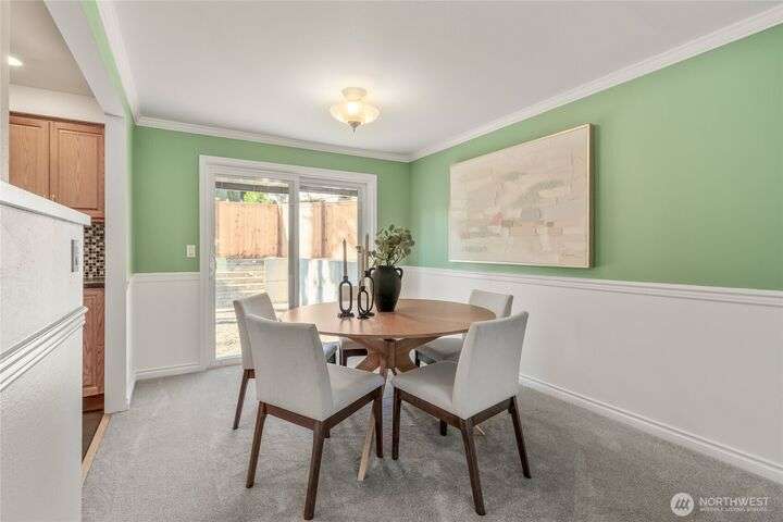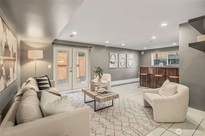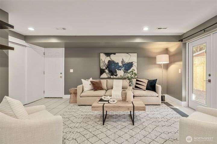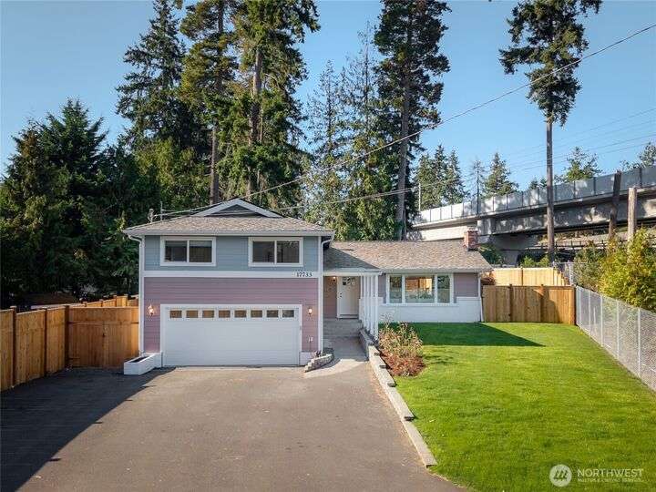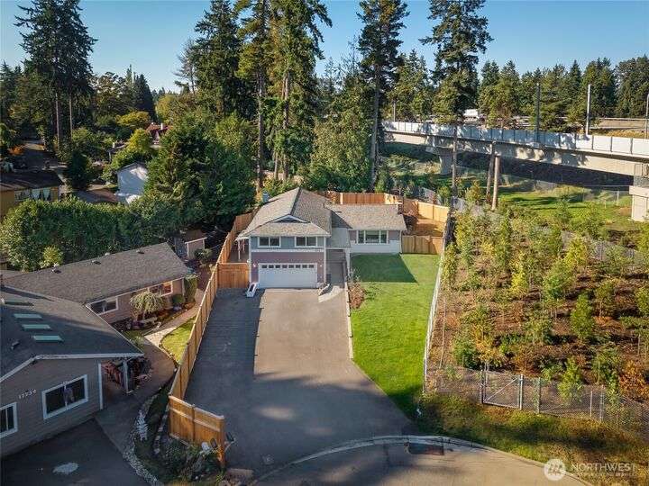 Enjoy the ease of comfort and convenience with this exceptional home in Shoreline! Tucked away in a quiet cul-de-sac close to Light Rail, this spacious tri-level features 4 bedrooms, 1.75 bathrooms with 2,210 SF, high-quality finishes throughout, & fully fenced backyard. Gourmet kitchen w/SS appliances makes entertaining a breeze with the open concept dining & living room. Additional upgrades include new: roof, fence, interior paint & carpet, and EV wiring. Lower level ADU features kitchenette, separate entrance & washer/dryer. Great for office, home theater, multi-generations, guests, or rental. Gas heat & A/C. Huge driveway w/garage ideal for gear, indulging in hobbies, and shop space. All this in a convenient & peaceful neighborhood!