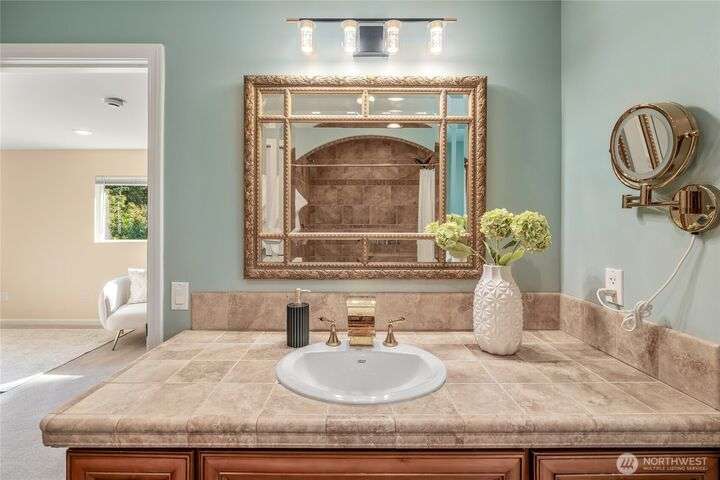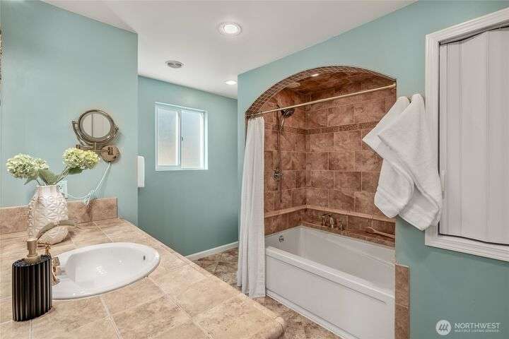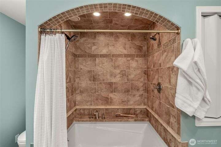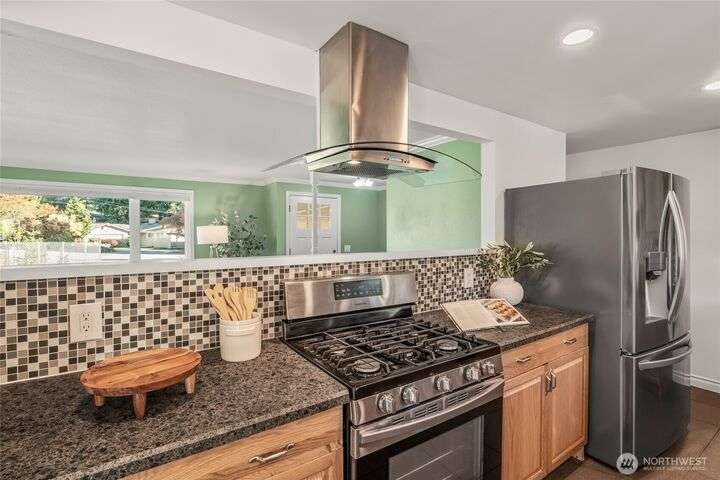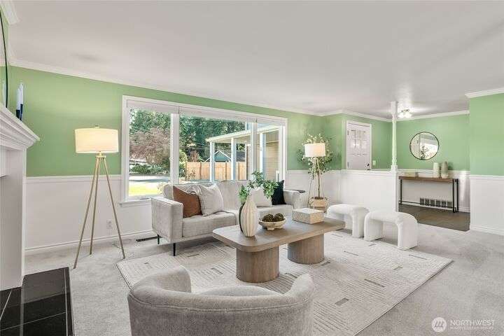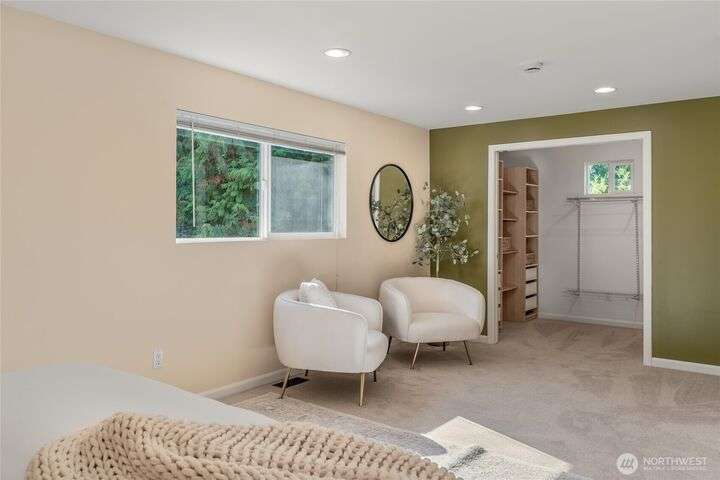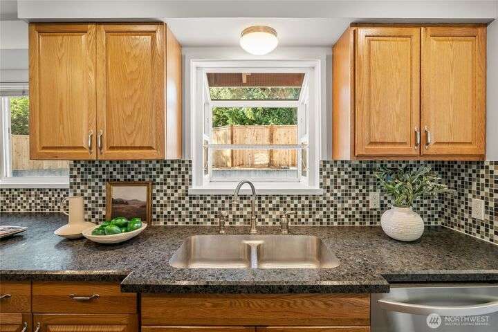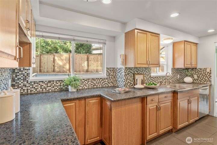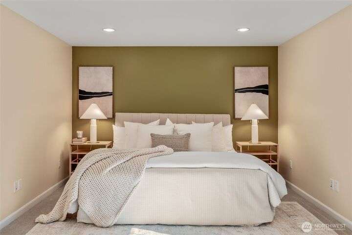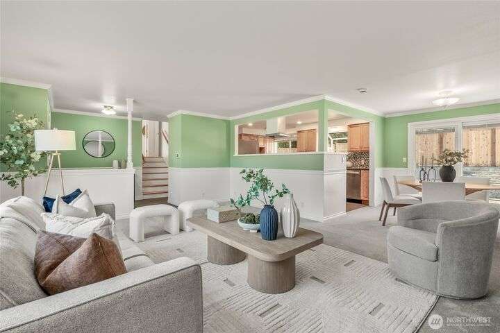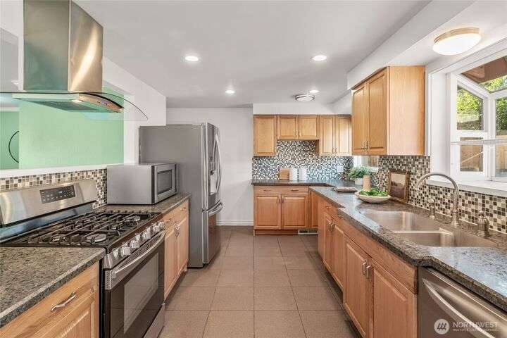 Enjoy the ease of comfort and convenience with this exceptional home in Shoreline! Tucked away in a quiet cul-de-sac close to Light Rail, this spacious tri-level features 4 bedrooms, 1.75 bathrooms with 2,210 SF, high-quality finishes throughout, & fully fenced backyard. Gourmet kitchen w/SS appliances makes entertaining a breeze with the open concept dining & living room. Additional upgrades include new: roof, fence, interior paint & carpet, and EV wiring. Lower level ADU features kitchenette, separate entrance & washer/dryer. Great for office, home theater, multi-generations, guests, or rental. Gas heat & A/C. Huge driveway w/garage ideal for gear, indulging in hobbies, and shop space. All this in a convenient & peaceful neighborhood!