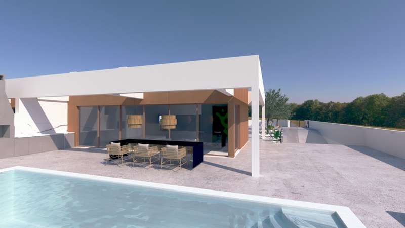 New turnkey project for a semi-detached house, scheduled for completion in 2025. This modern 3-bedroom villa is located on the outskirts of the quiet village of São Brás de Alportel. It has a swimming pool, parking, high quality finishes, complete air conditioning installation and high thermal and acoustic insulation. Designed to get as much light as possible, this property has large spaces and windows, with easy access to the communal areas for outdoor leisure. The villa also has unobstructed views of the Algarve barrocal, away from the city environment. Designed on a single floor, it is ideal for those with reduced mobility. Located 5 minutes from the center of São Brás de Alportel and 15 minutes from the center of Loulé, this property is ideal for single-family housing, as it is close to all amenities, and just 20 minutes from São Brás de Alportel Airport . CHARACTERISTICS: Plot Area: 2 965 m2 | 31 915 sq ft Useful area: 318 m2 | 3 423 sq ft Deployment Area: 318 m2 | 3 423 sq ft Building Area: 318 m2 | 3 423 sq ft Bedrooms: 3 Bathrooms: 2 Energy efficiency: Certification in progress FEATURES: Turnkey project Semi-detached house Forecast 2025 Modern 3 bedrooms Swimming pool Air conditioning Single floor