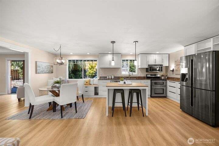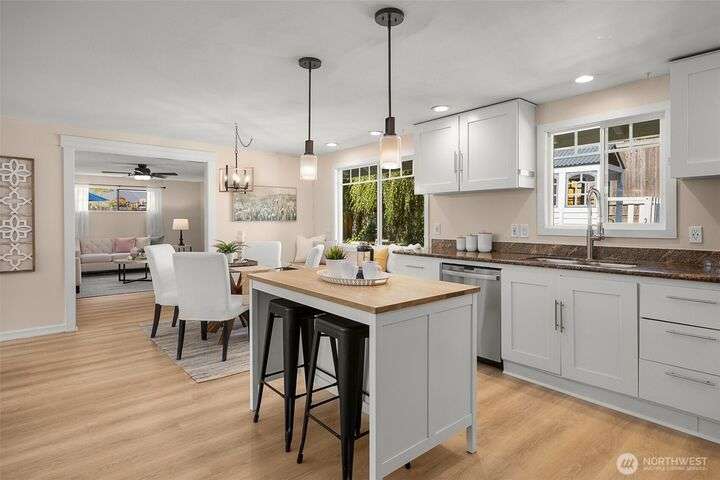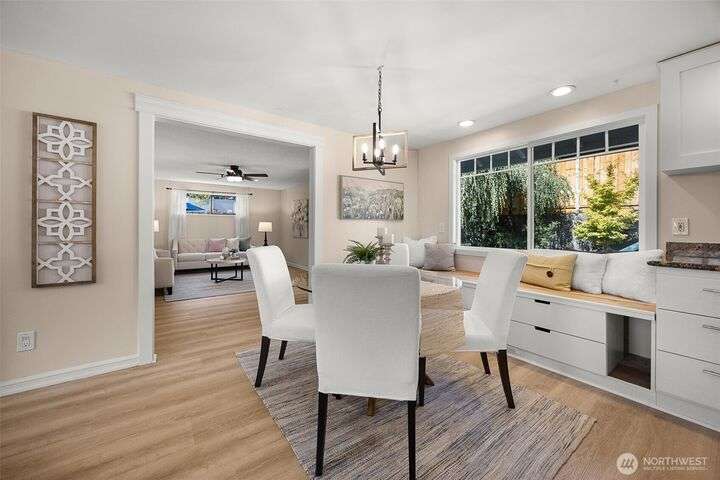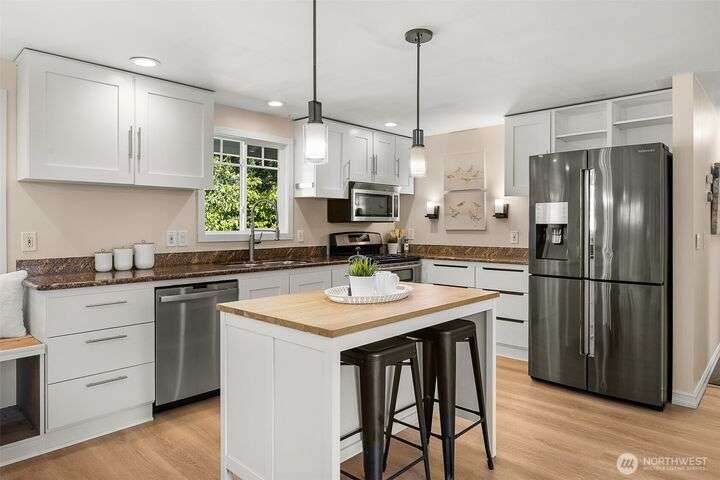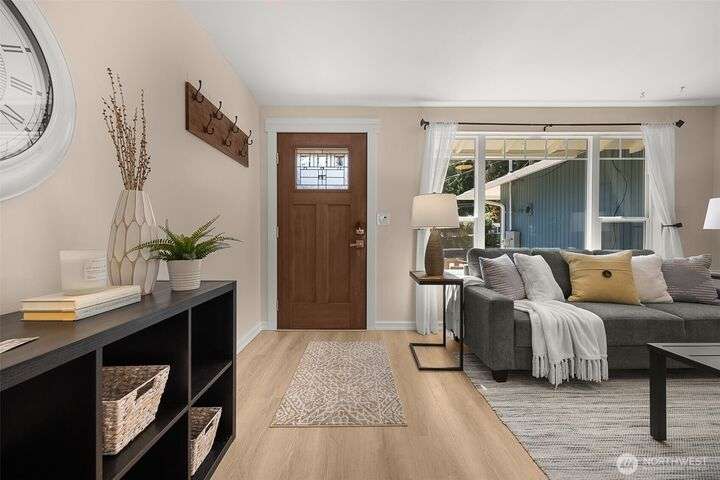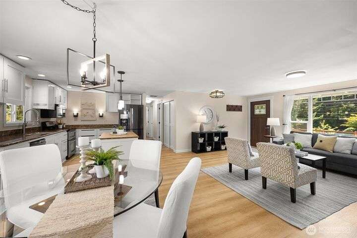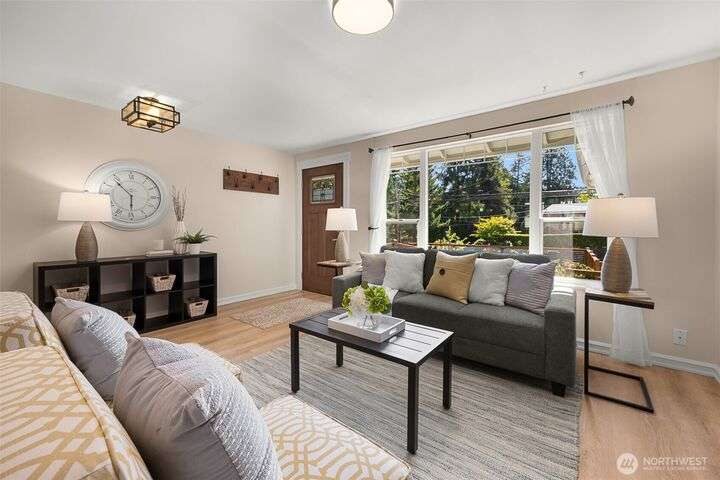 Darling one-level residence nestled on a prominent corner lot in Westhill. Thoughtfully refreshed, this 3-bed/2-bath home combines comfort & style and features new flooring & interior paint. New electrical panel w/EV charger. A/C for cool comfort in summer months. Exceptional curb appeal is enhanced by professional landscaping, fresh exterior paint, and a welcoming front deck—perfect for relaxing or greeting neighbors. The open floor plan flows with natural light, creating spaces for entertaining & everyday living. Ideally situated minutes to vibrant Downtown Bothell with shops, dining, and trails, and set within the highly regarded Northshore School District. A rare opportunity to enjoy move-in-ready living in a sought-after neighborhood.
