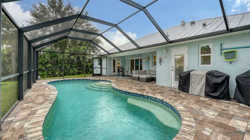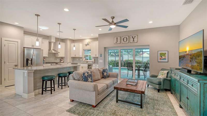 Welcome home to 524 Acacia Lane in Nokomis, a beautifully crafted Key West-style home that blends timeless coastal charm with modern Florida comfort. This 3-bedroom, 2-bath home offers an ideal 1680 square feet of thoughtfully designed space for both relaxation and functionality. The open concept living and dining areas flow seamlessly into a bright well-appointed kitchen, creating the perfect space for entertaining family and guests. The primary suite features a private bath and generous walk-in closet space, while two additional bedrooms provide versatility for family, guests, or a dedicated home office. Step through sliding doors outside to your screened lanai and sparkling swimming pool - a true outdoor oasis for year-round enjoyment. With its inviting front porch, colorful architectural accents, and breezy Key West character, this home captures the essence of relaxed coastal living. Nestled in a desirable neighborhood just minutes from Nokomis Beach, downtown Venice, restaurants, shopping, and easy access to I-75, this home combines everyday practicality, style, and comfort with the best of Florida lifestyle.