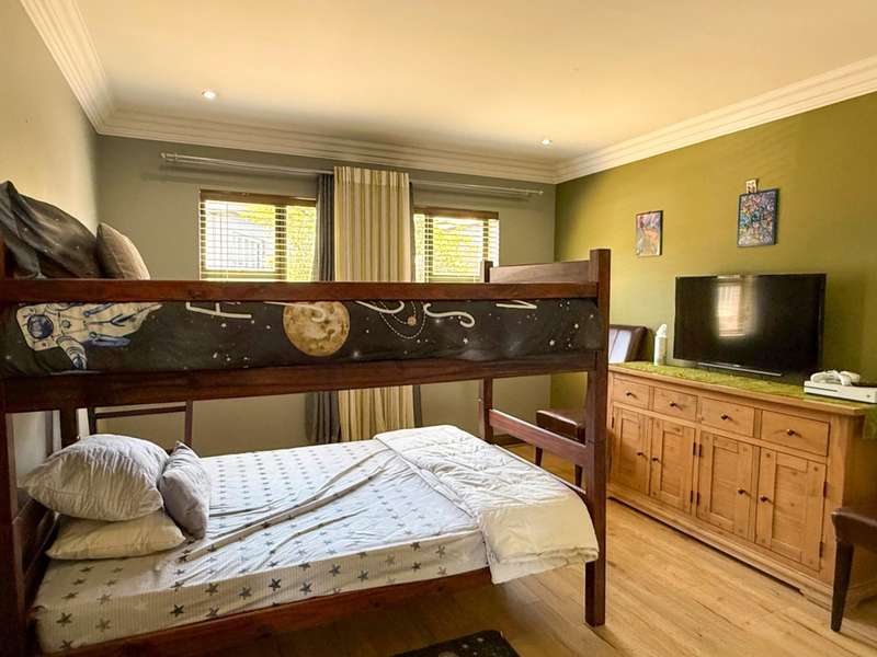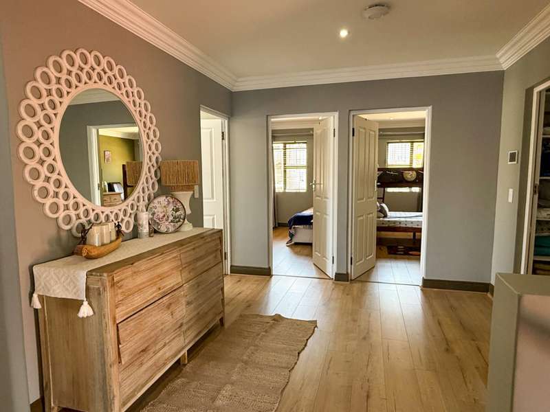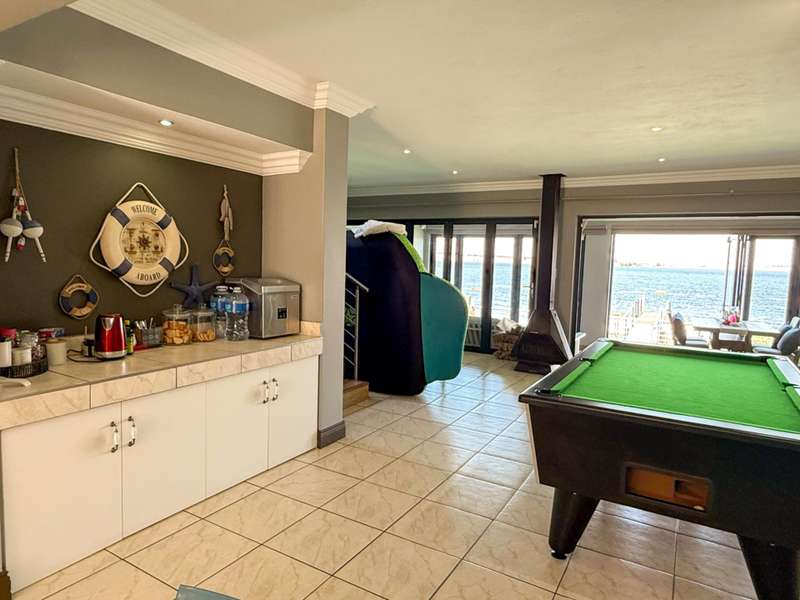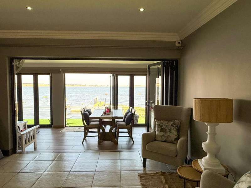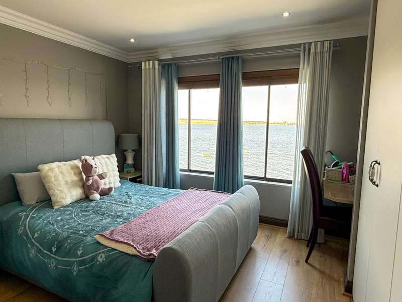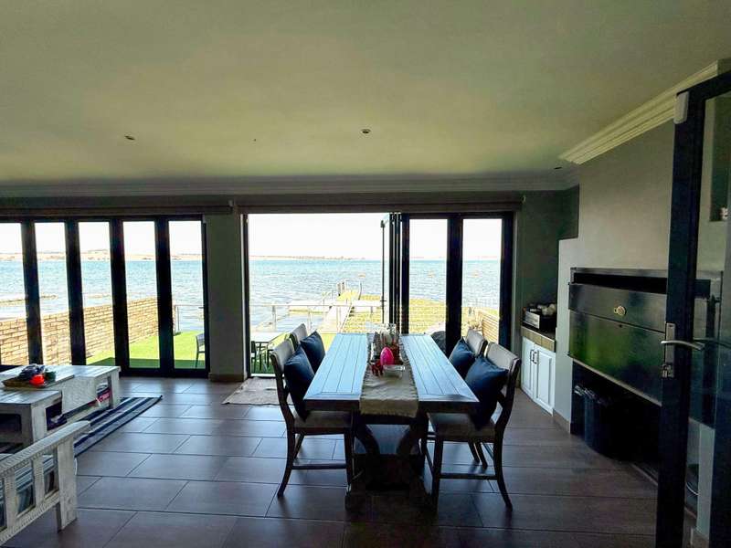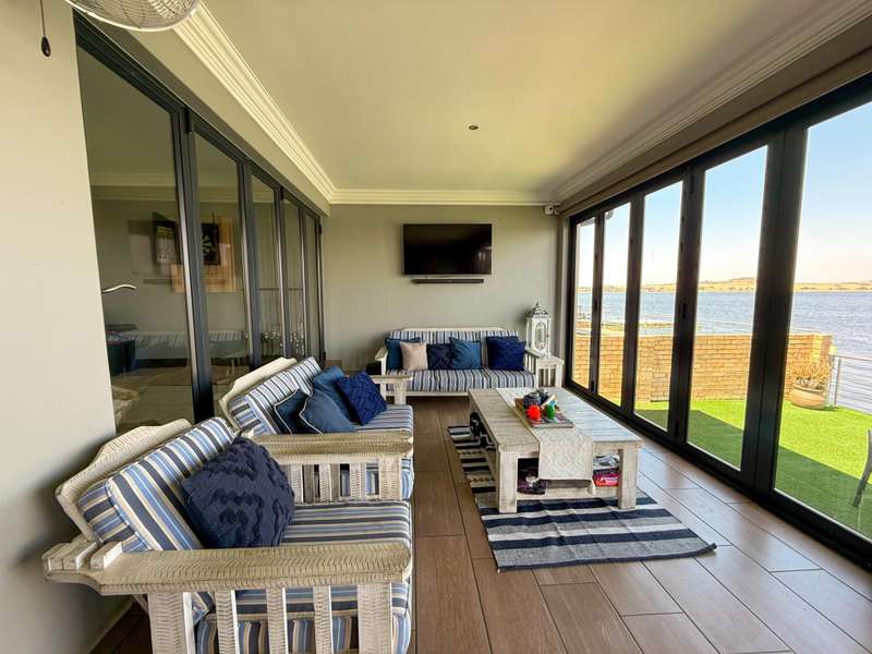Stunning Waterfront Oasis in Exclusive Estate Discover unparalleled tranquility at this exceptional four-bedroom waterfront residence, nestled on one of the largest stands within the estate. This remarkable property offers an idyllic setting, combining spacious, open-plan living with breathtaking views of the shimmering dam. Step inside to find generously-sized living areas that seamlessly flow together, with one separate lounge providing the perfect retreat for children or a cozy reading nook. The modern kitchen is a true chef?ÇÖs delight, featuring a stylish island with ample cupboard space, a breakfast nook for casual dining, a pantry for extra storage, and convenient provisions for a dishwasher. Large stack doors in the main living areas invite the outdoors in, creating a bright and airy ambiance. The undercover patio, complete with built-in braai, offers an ideal space for al fresco dining or entertaining family and friends while overlooking the tranquil water. Two of the bedrooms boast expansive sliding windows, enhancing the sense of space and light, along with new laminated flooring and tasteful furnishings that create a welcoming atmosphere. The modern bathrooms are thoughtfully designed, equipped with showers for ultimate convenience, and a guest bathroom is located on the ground floor for added accessibility. This property is further enhanced by a recently installed, large off-the-grid solar system, included with the sale, ensuring energy efficiency and cost savings. Enjoy the luxury of your own private jetty, in excellent condition and ready for your boating adventures. Impeccably built and meticulously maintained, this home requires no additional investment in repairs or upkeep. The estate offers a communal pool and recreational area exclusive to residents and their guests, as well as a convenient boat launching service via tractor. Experience the ultimate in lakeside living?Çöschedule your viewing today and make this dream home your reality!